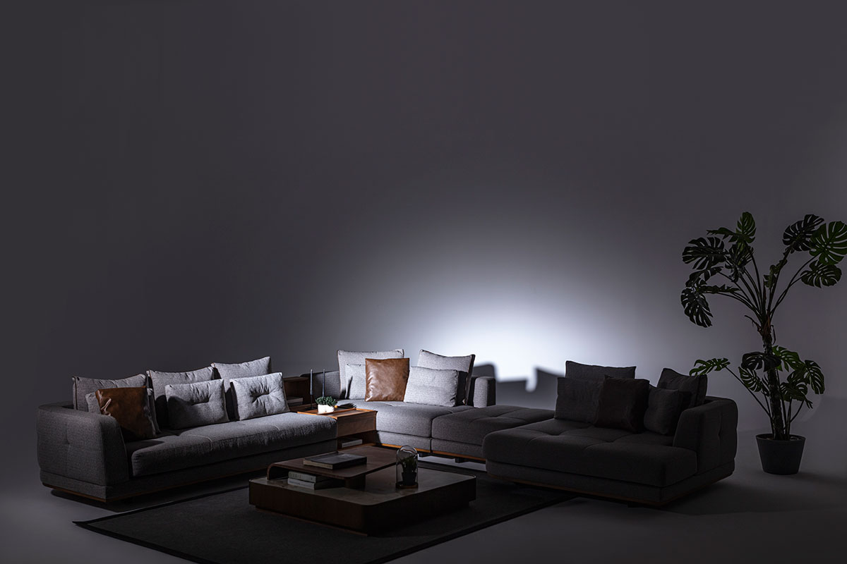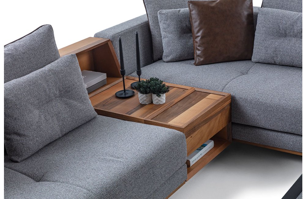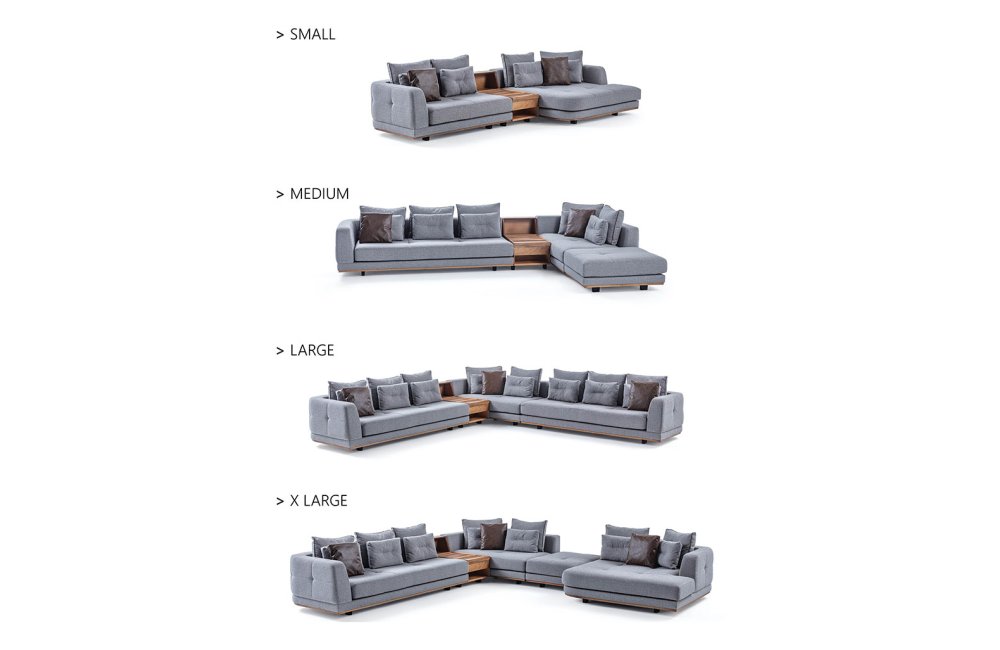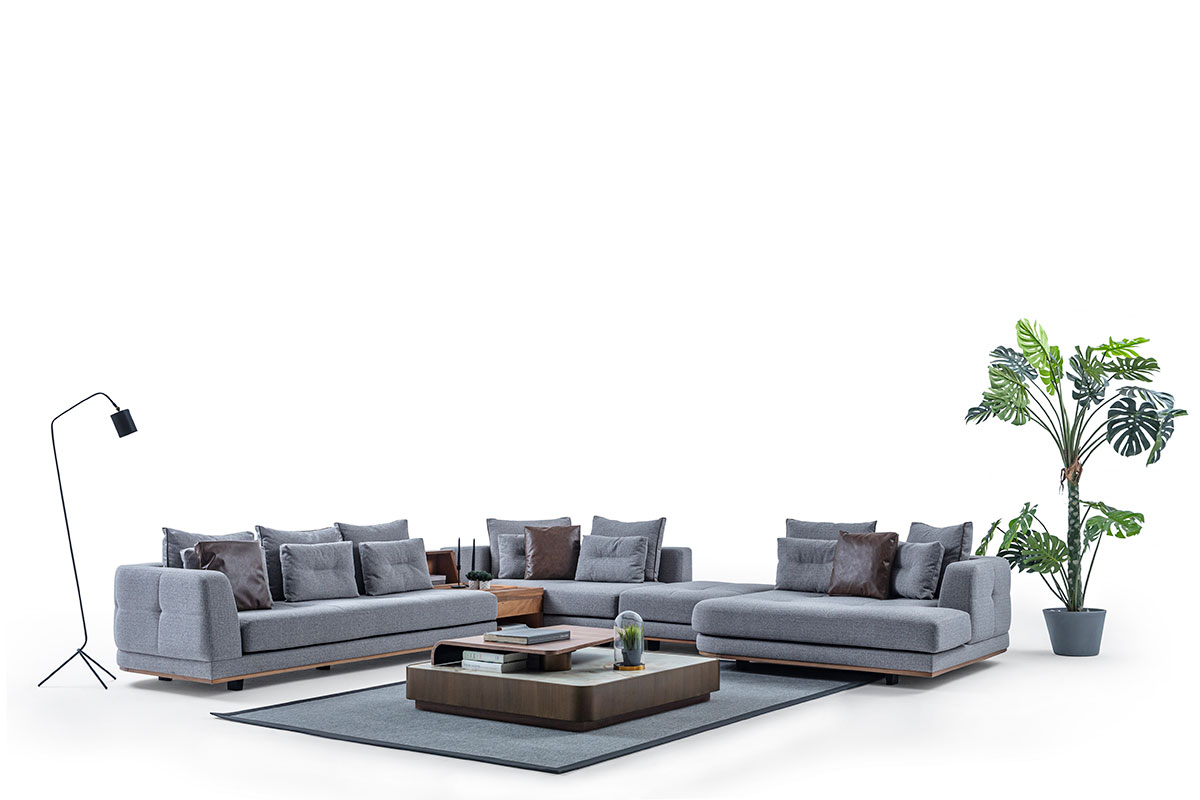 1ad. kanepe modül, 1ad. sehpa, 1ad. ikili kollu modül, 1ad. puf, 1ad. relax modülden oluşmaktadır. Diğer modüller opsiyonel olarak satışa sunulmuştur. Dilediğiniz parçaları seçerek köşenizi oluşturabilirsiniz.