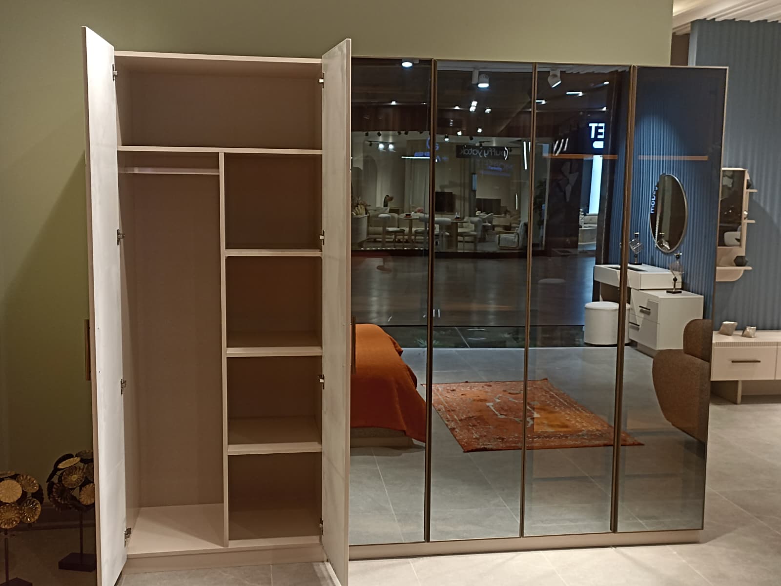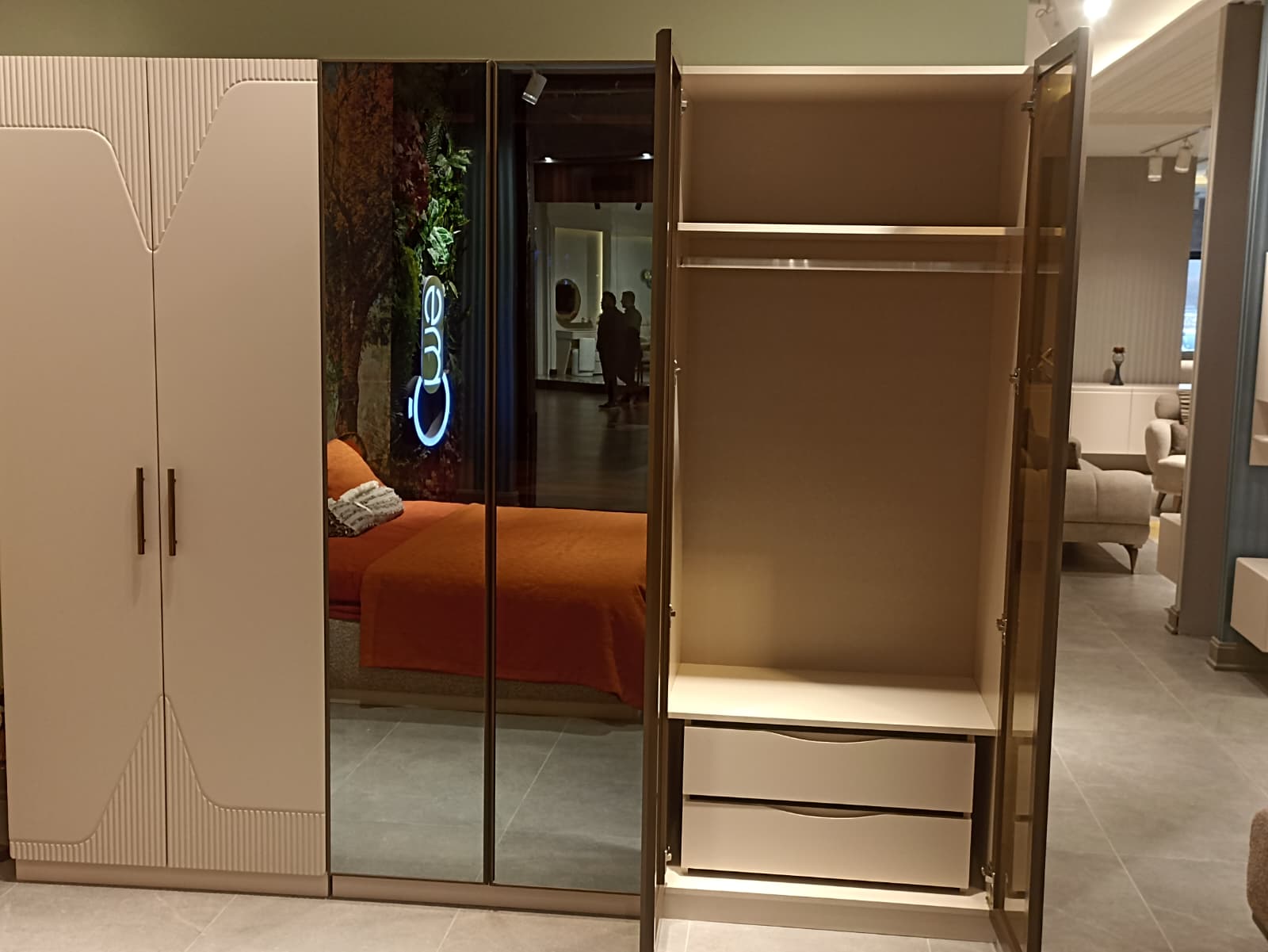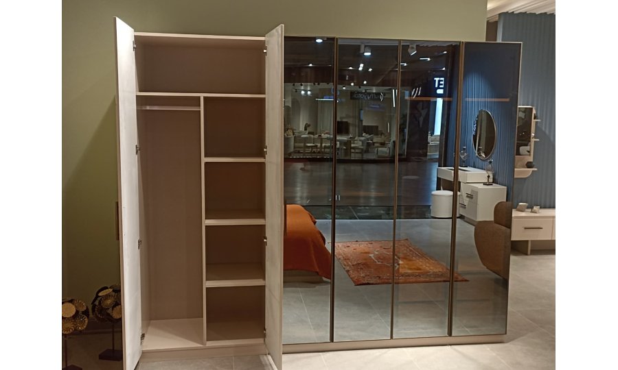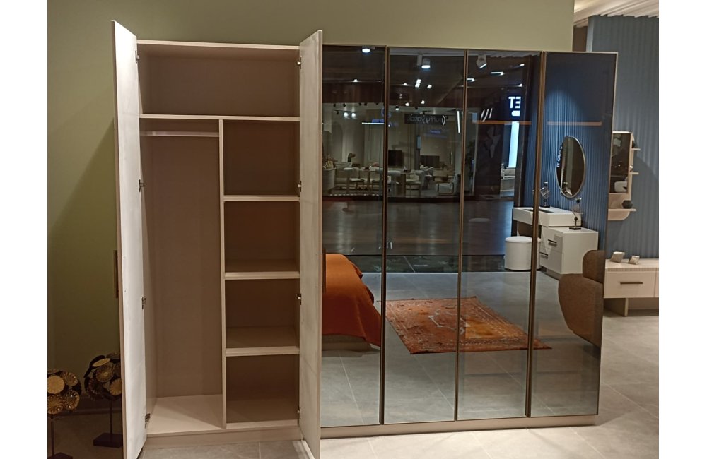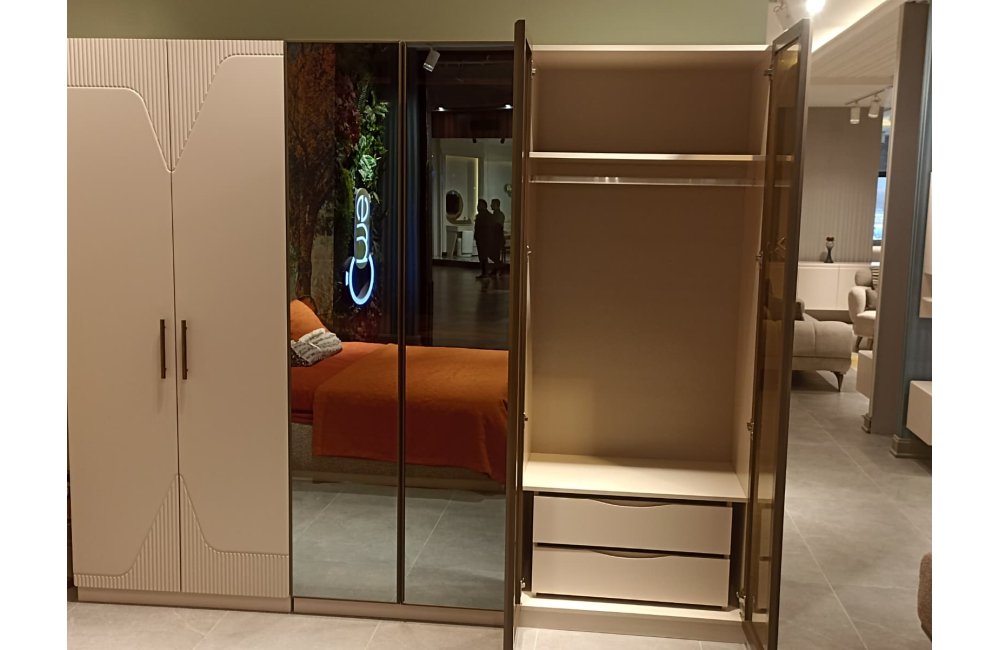 1ad. 6 kapaklı dolap(4+2), 1ad. bazalı karyola, 1ad. şifonyer(Aynalı) ve 2ad. komodinden oluşmaktadır.
