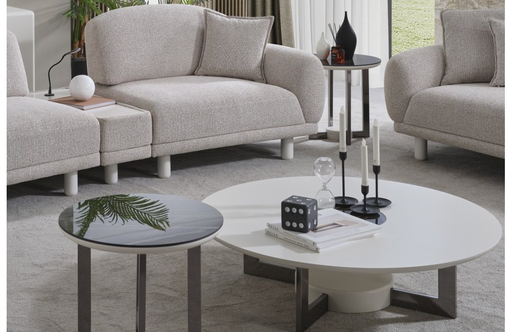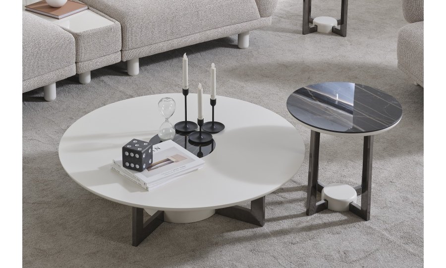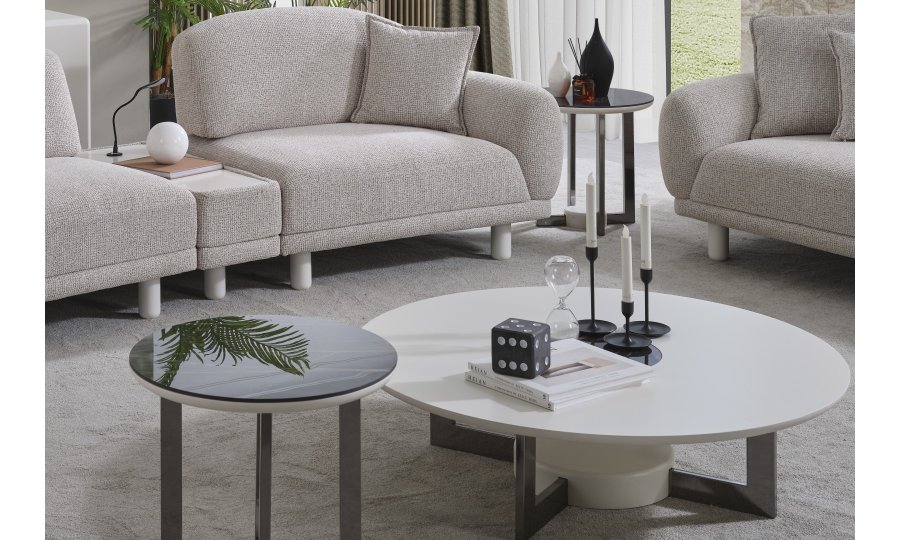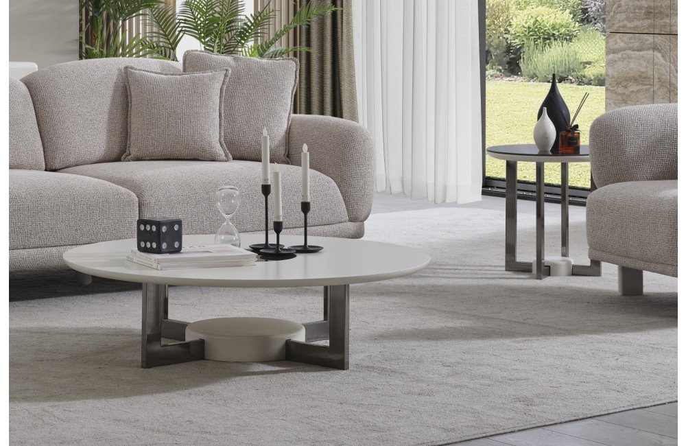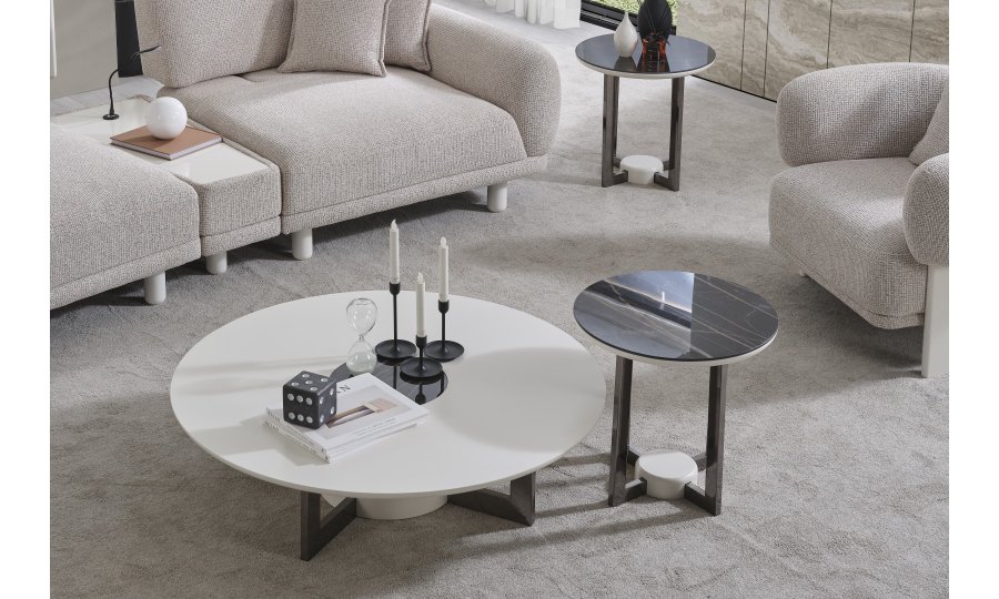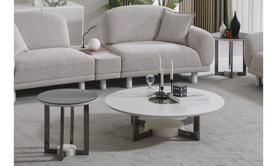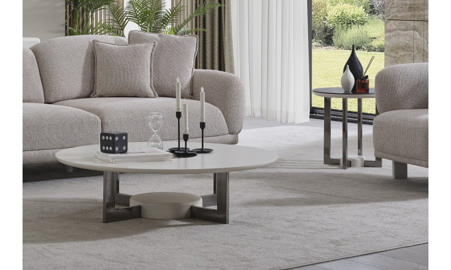 • Serinin karakteristik yumuşak hatlarını yansıtan Premium Dallas Orta Sehpa, alçak profilli dairesel tablasıyla mekanın ferahlığını artırır. Mat krem yüzeyi ve merkezdeki kontrast detaylarıyla dikkat çeken bu parça, geniş yüzey alanı sayesinde dekoratif objeleriniz için mükemmel bir sergileme alanı oluşturur. Sağlam ve heykelsi ayak yapısı, ürünün minimalist tasarımını güçlendirerek yaşam alanınıza sofistike bir denge katar.