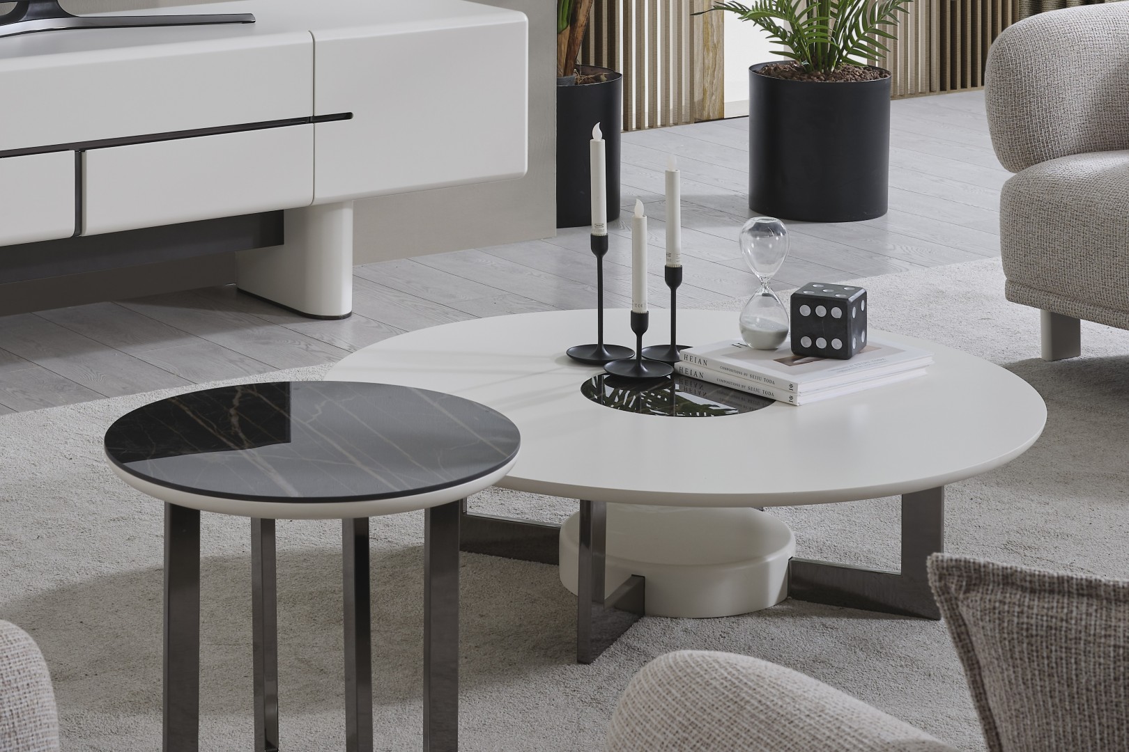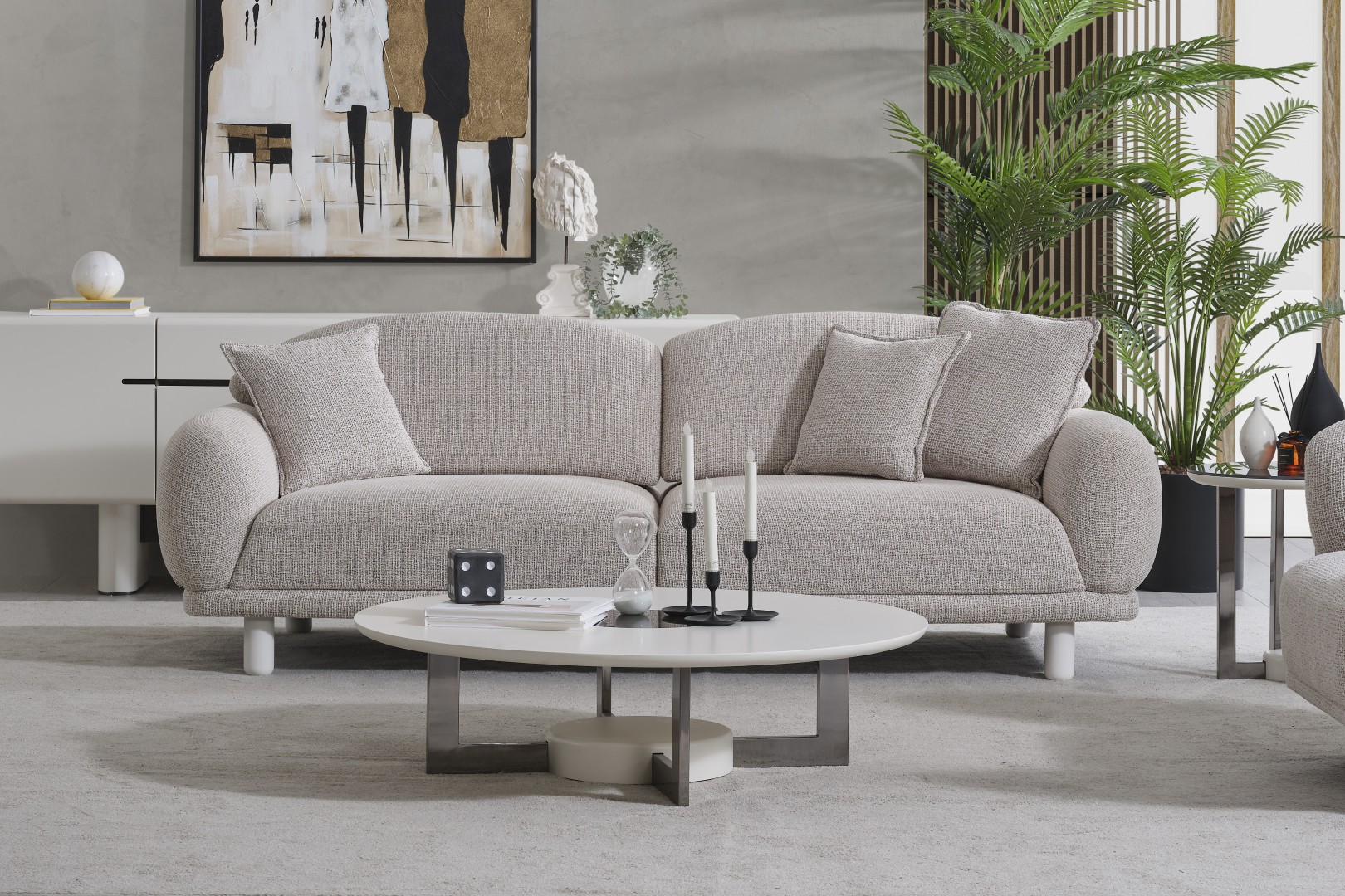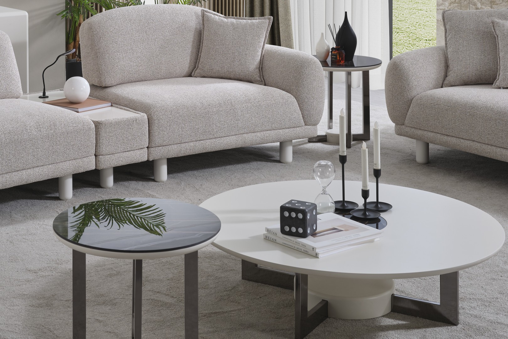 • Serinin karakteristik yumuşak hatlarını yansıtan Premium Dallas Orta Sehpa, alçak profilli dairesel tablasıyla mekanın ferahlığını artırır. Mat krem yüzeyi ve merkezdeki kontrast detaylarıyla dikkat çeken bu parça, geniş yüzey alanı sayesinde dekoratif objeleriniz için mükemmel bir sergileme alanı oluşturur. Sağlam ve heykelsi ayak yapısı, ürünün minimalist tasarımını güçlendirerek yaşam alanınıza sofistike bir denge katar.