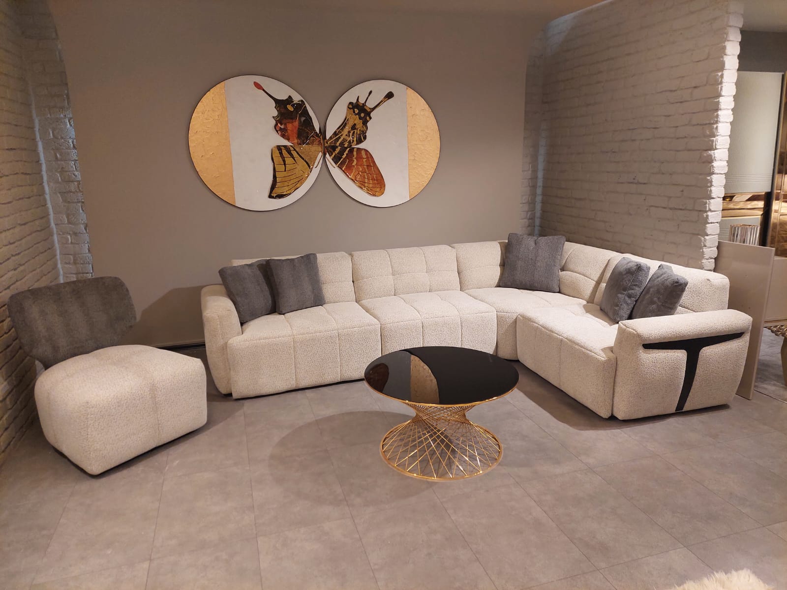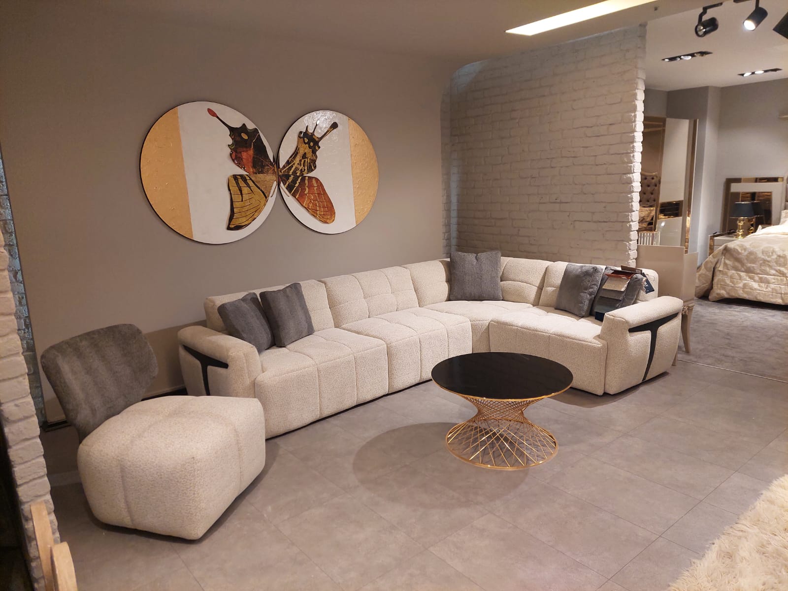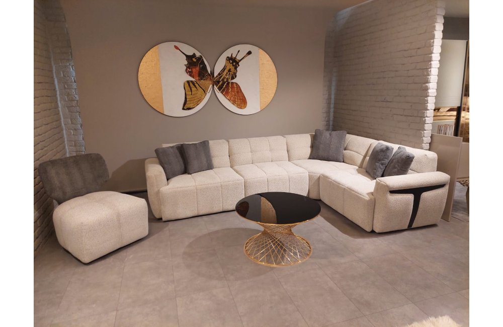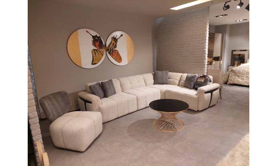 1ad. 90cm kollu yataklı modül, 1ad. 90cm kolsuz yataklı modül, 1ad. köşe modül ve 1ad. kollu yataksız modülden oluşmaktadır. 60 cm modüller, berjer ve puf opsiyonel satılmaktadır.