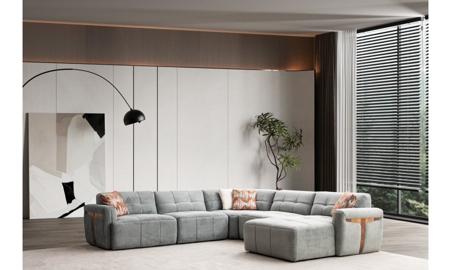 1 ad. kollu yataklı modül, 1ad. kolsuz yataklı modül, 1ad. köşe modül ve 1ad. kollu yataksız modülden oluşmaktadır.