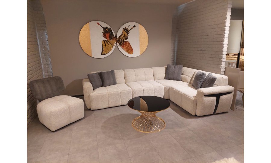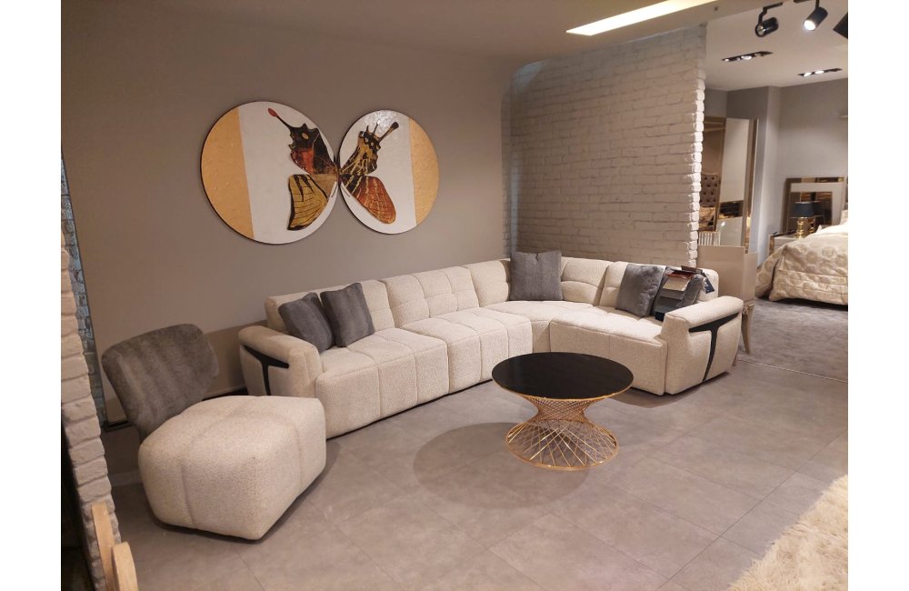 1ad. 90cm kollu yataklı modül, 1ad. 90cm kolsuz yataklı modül, 1ad. dinlenme modülden oluşmaktadır. Köşe modül ve 1ad. kollu yataksız, 60 cm modüller, berjer ve puf opsiyonel satılmaktadır.