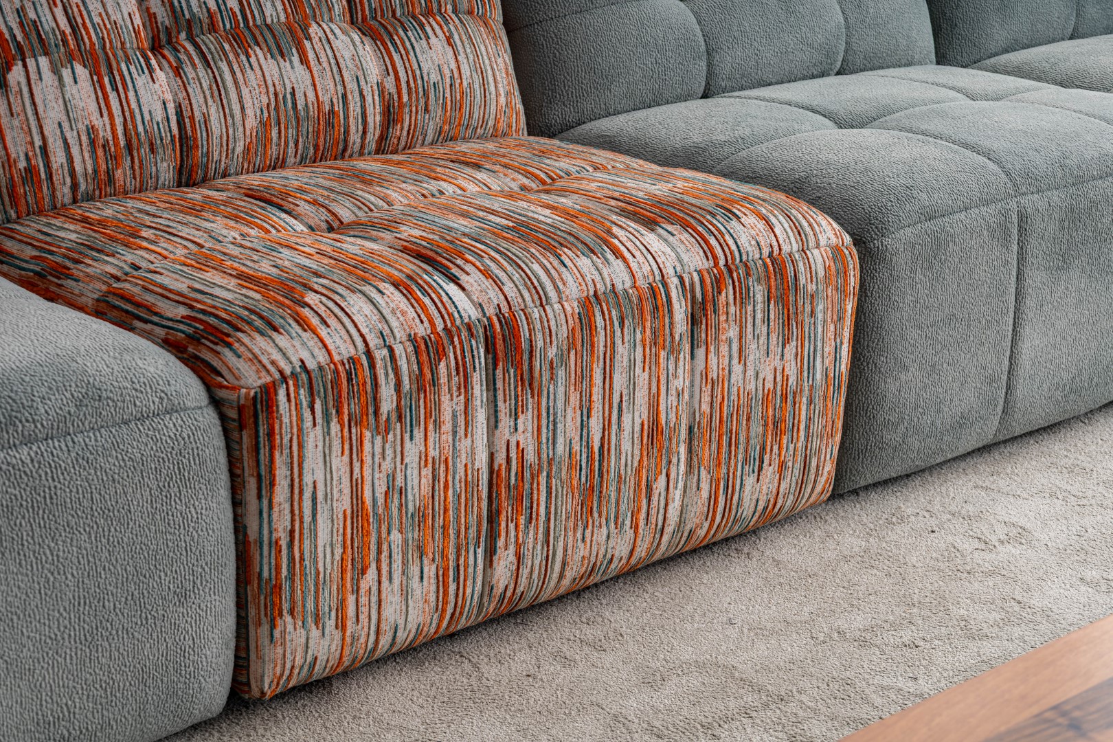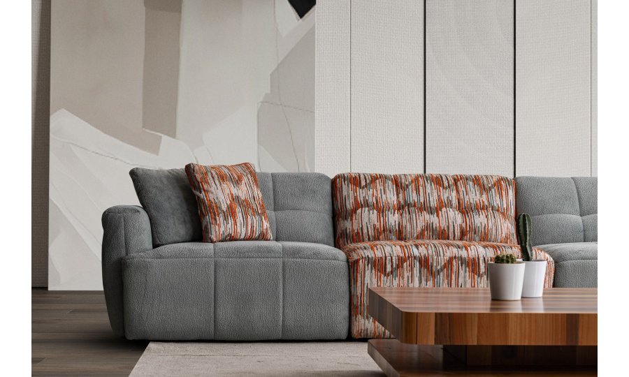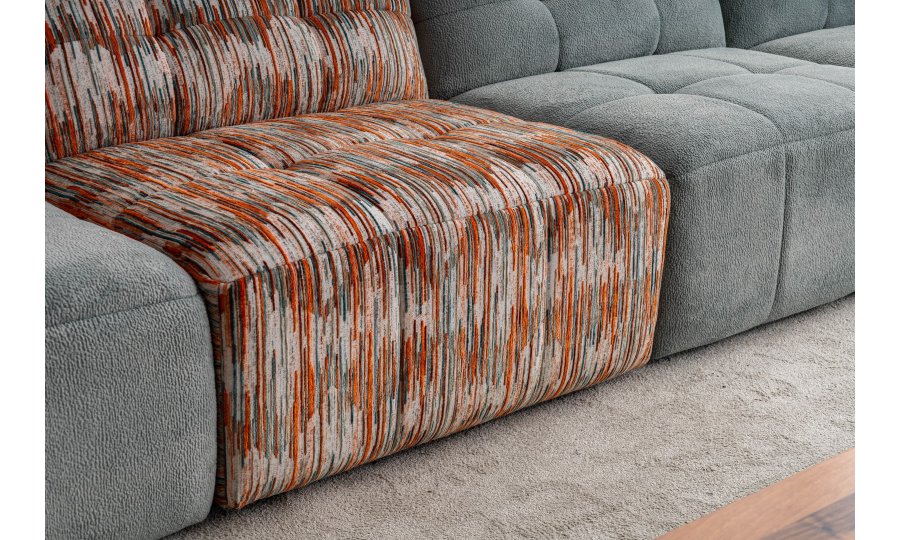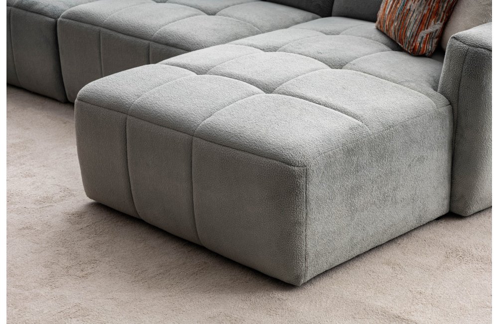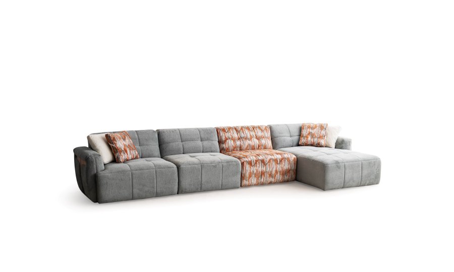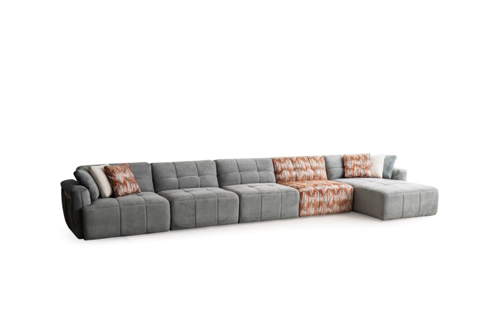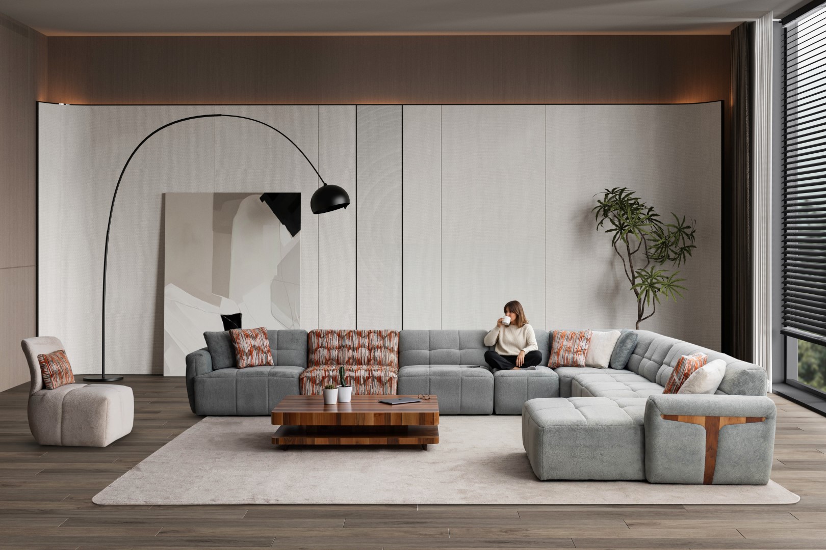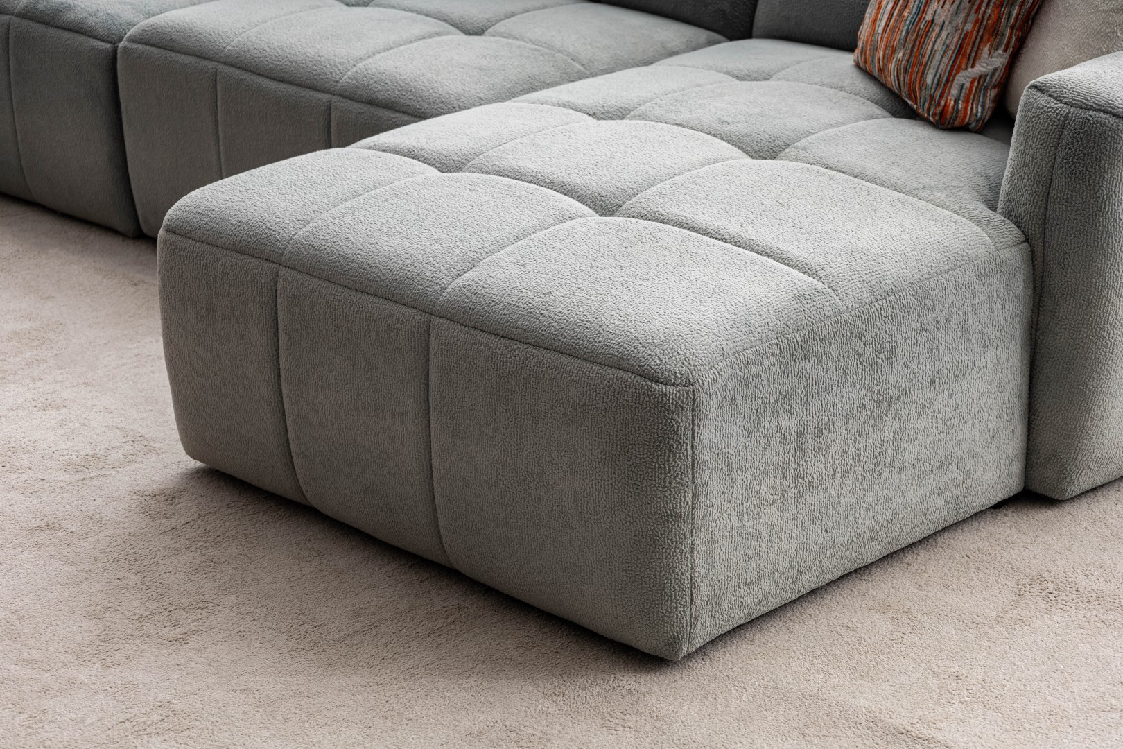 1ad. 90cm kollu modül, 2ad 90cm kolsuz piyon, 1ad. 60cm kolsuz piyon, 1ad. köşe, 1ad. 60cm yataklı kolsuz piyon, 1ad. 90cm yataklı kolsuz piyon ve 1ad. dinlenme modülden oluşmaktadır. Berjer, puflar, 90cm yataklı kollu modül ve 60cm kollu yataklı modül opsiyonel satılmaktadır.