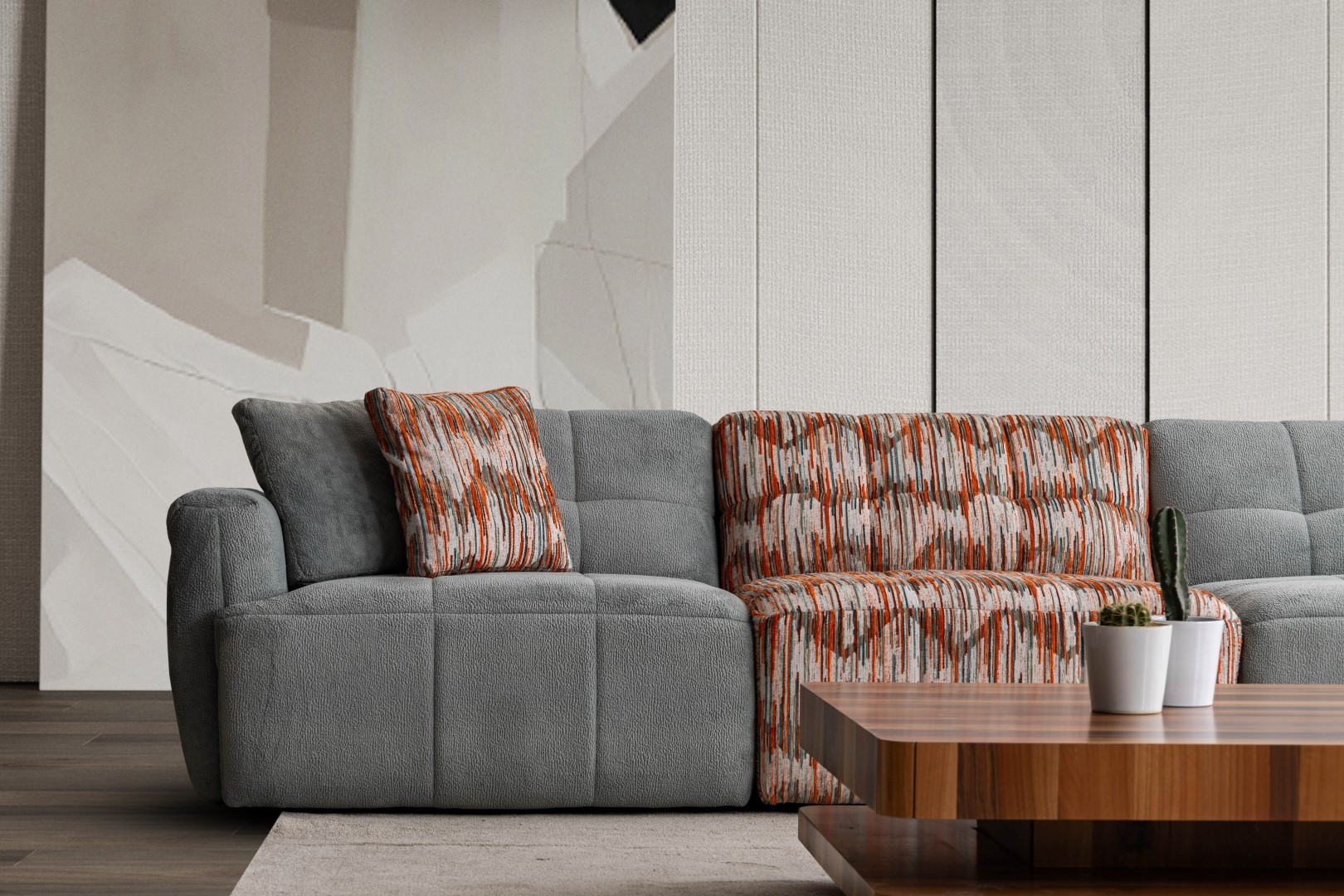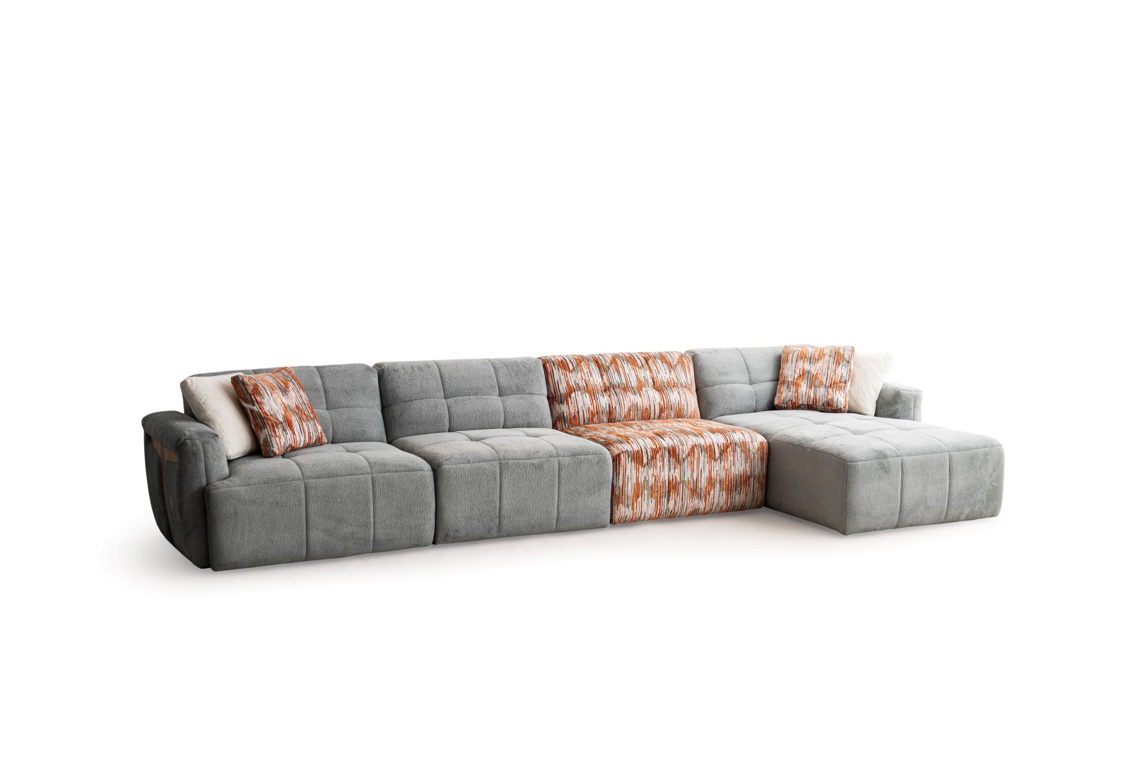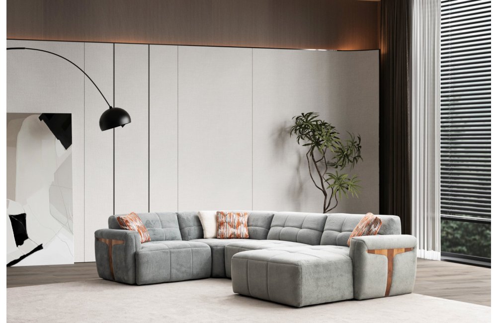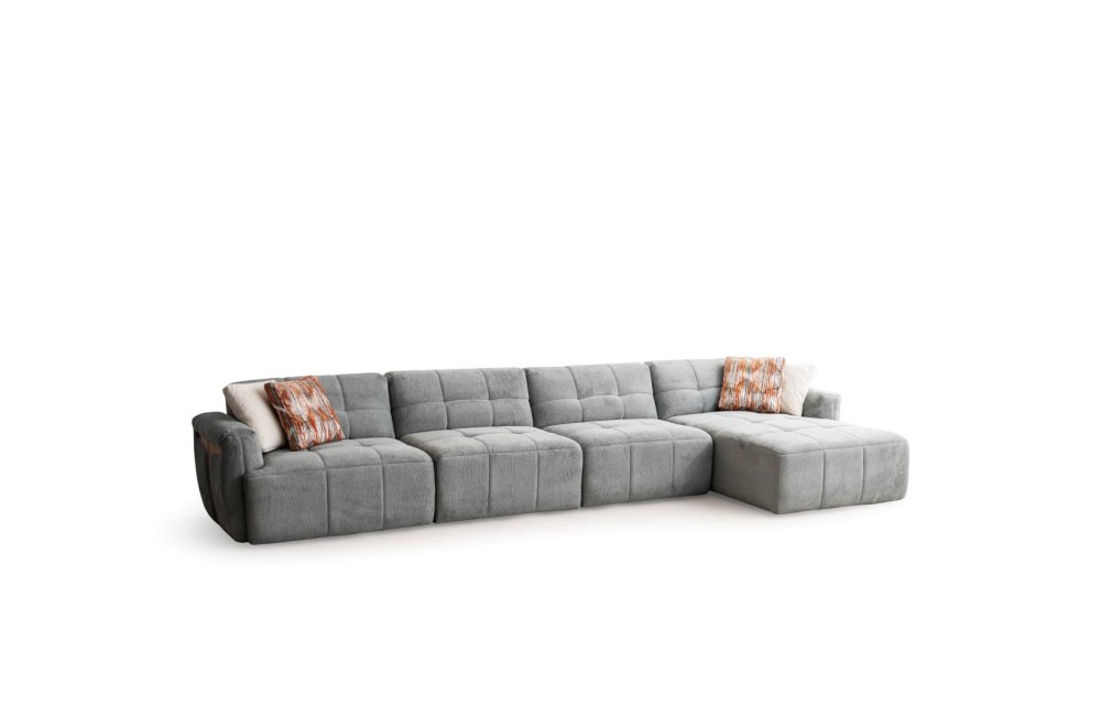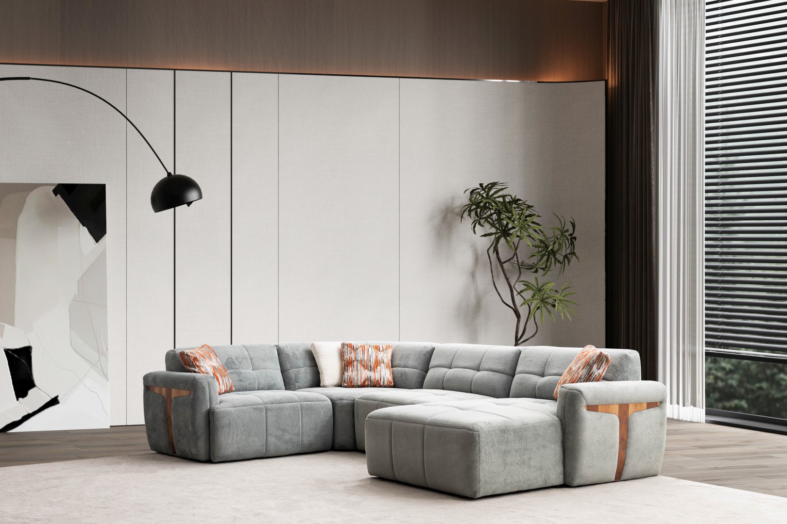 1ad. 90cm kollu modül, 2ad 90cm kolsuz piyon, 1ad. 60cm kolsuz piyon, 1ad. köşe, 1ad. 60cm yataklı kolsuz piyon, 1ad. 90cm yataklı kolsuz piyon ve 1ad. dinlenme modülden oluşmaktadır. Berjer, puflar, 90cm yataklı kollu modül ve 60cm kollu yataklı modül opsiyonel satılmaktadır.