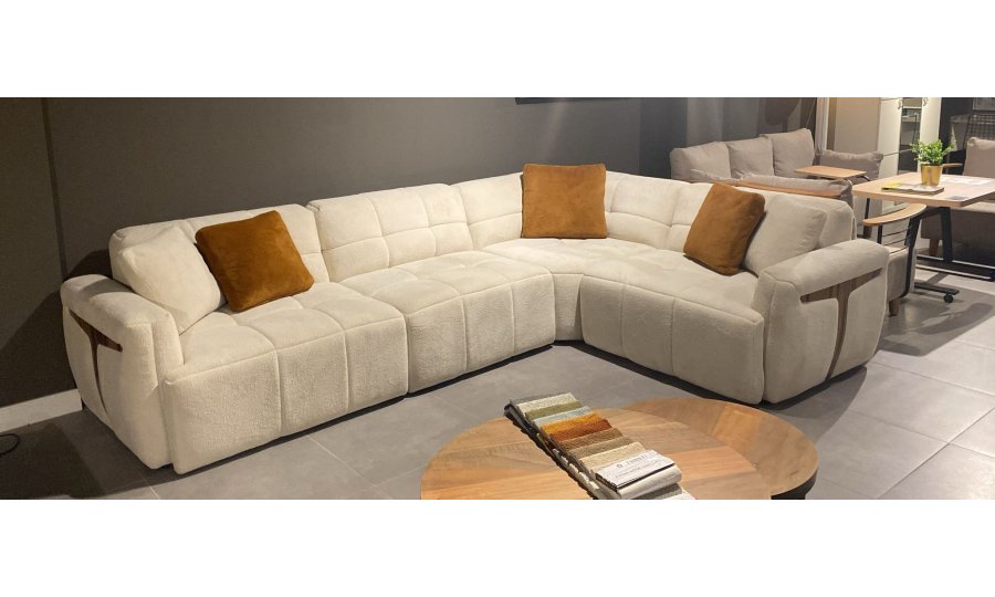 1ad. 115cm kollu modül, 1ad 90cm kolsuz piyon, 1ad. 60cm kolsuz piyon, 1ad. köşe, 1ad. 60cm yataklı kolsuz piyon, 1ad. 90cm yataklı kolsuz piyon ve 1ad. dinlenme modülden oluşmaktadır. Berjer, puflar, 90cm yataklı kollu modül ve 60cm kollu yataklı modül opsiyonel satılmaktadır.