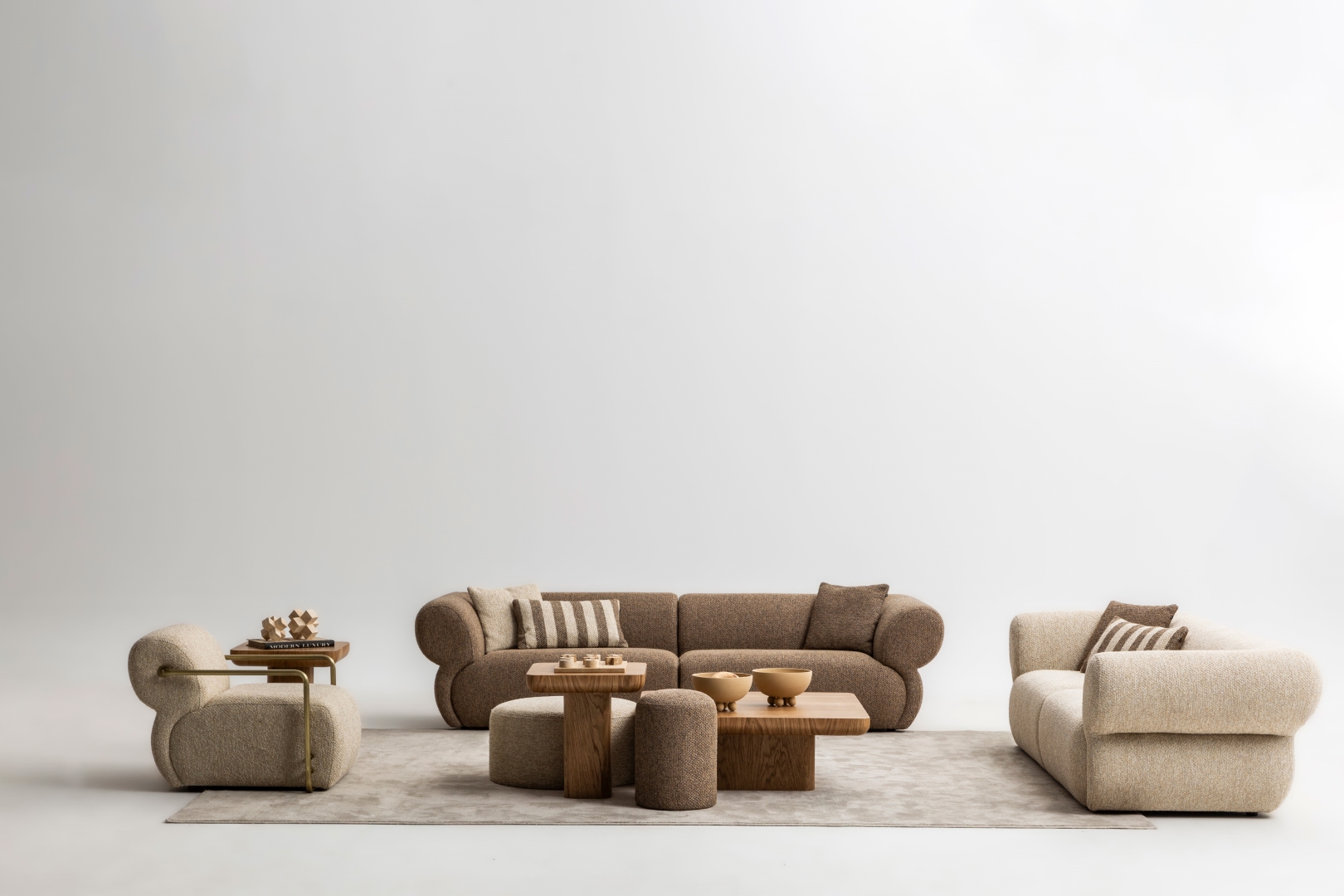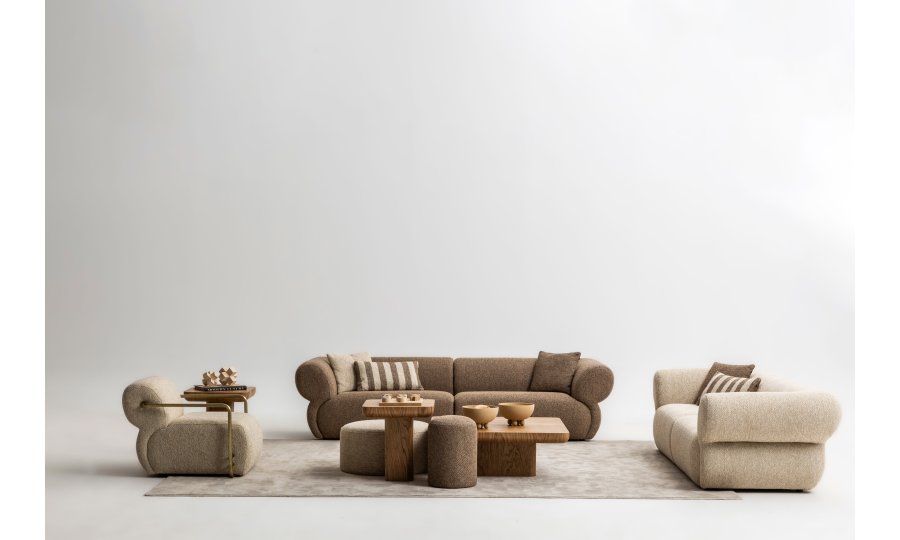 2ad. üçlü kanepe ve 1ad. berjerden oluşmaktadır. 280cm dörtlü kanepe, Kollu 140cm, Kollu 125cm, köşe modül, 90cm, 60 cm ara modül, köşe modül ve puf opsiyonel olarak satışa sunulmuştur.