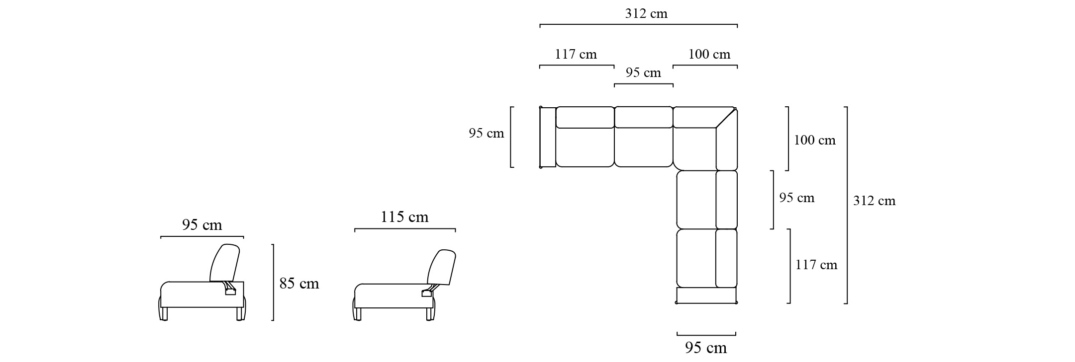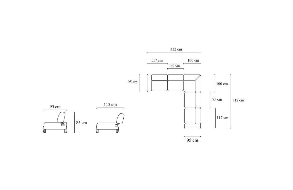 2 ad. kollu modül, 2 ad. ara kolsuz modül ve 1 ad. köşe modülden oluşmaktadır.