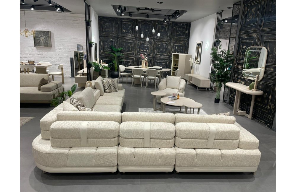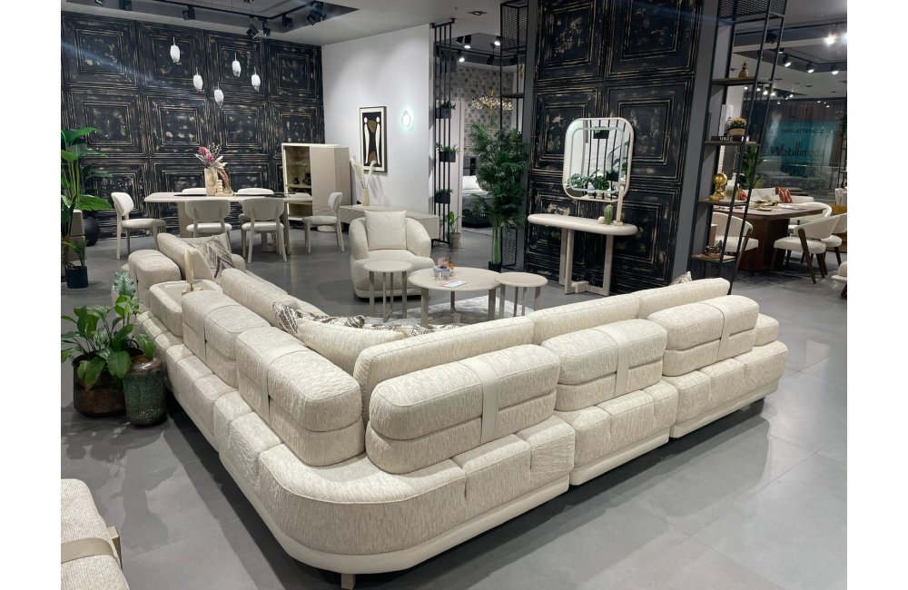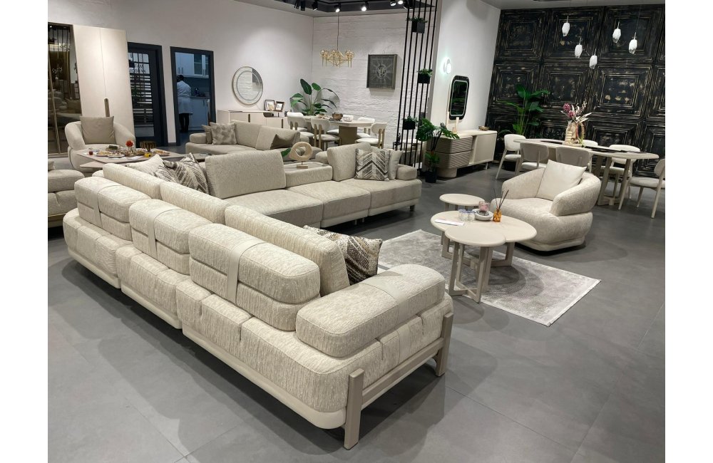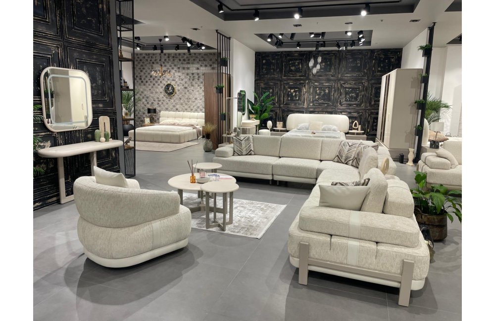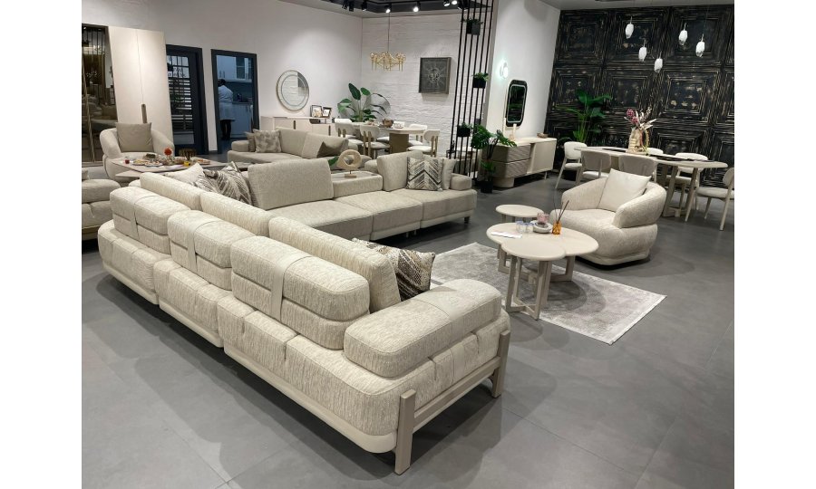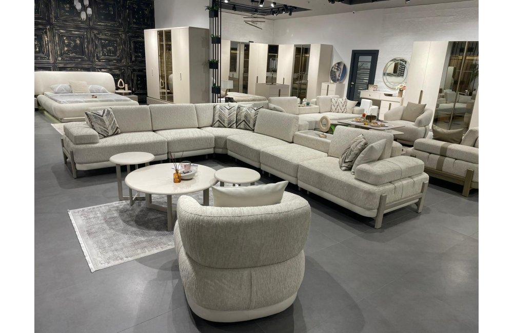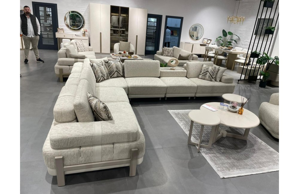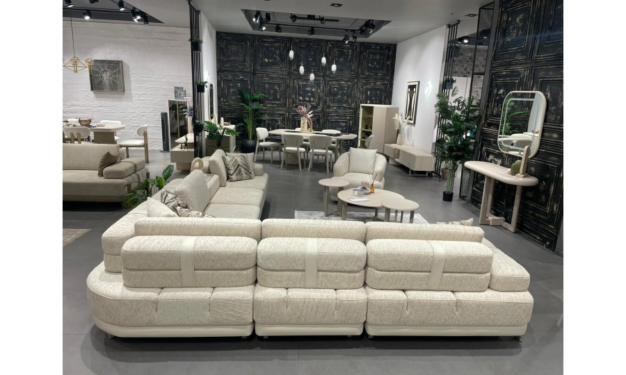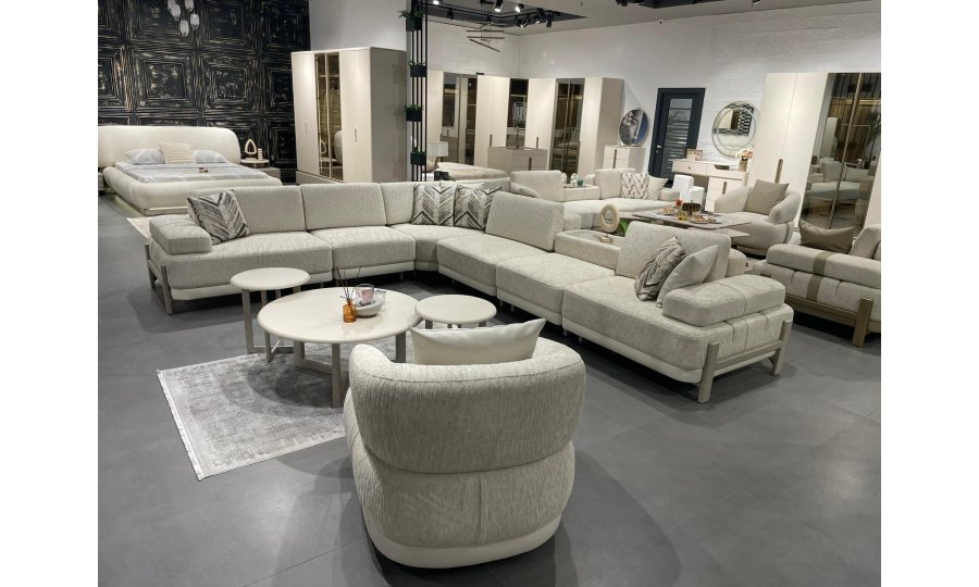 1ad. 120cm kollu modül, 2ad. 75cm ara piyon, 1ad. köşe modül, 1ad. sehpalı ara modül ve 1ad. 100cm kollu modülden oluşmaktadır. 85cm ara piyon, berjer opsiyonel satılmaktadır.