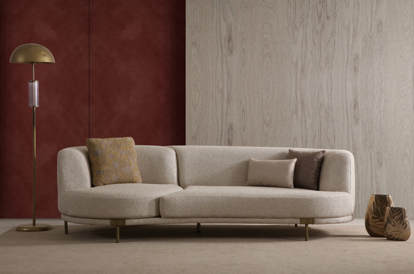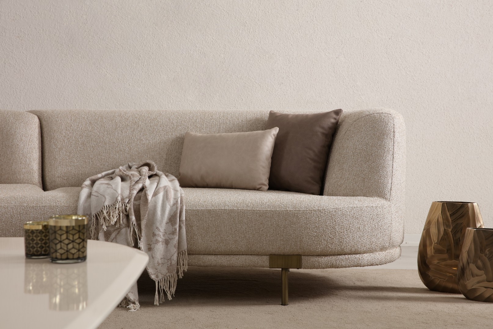 • Krem ve gri kumaş seçeneği