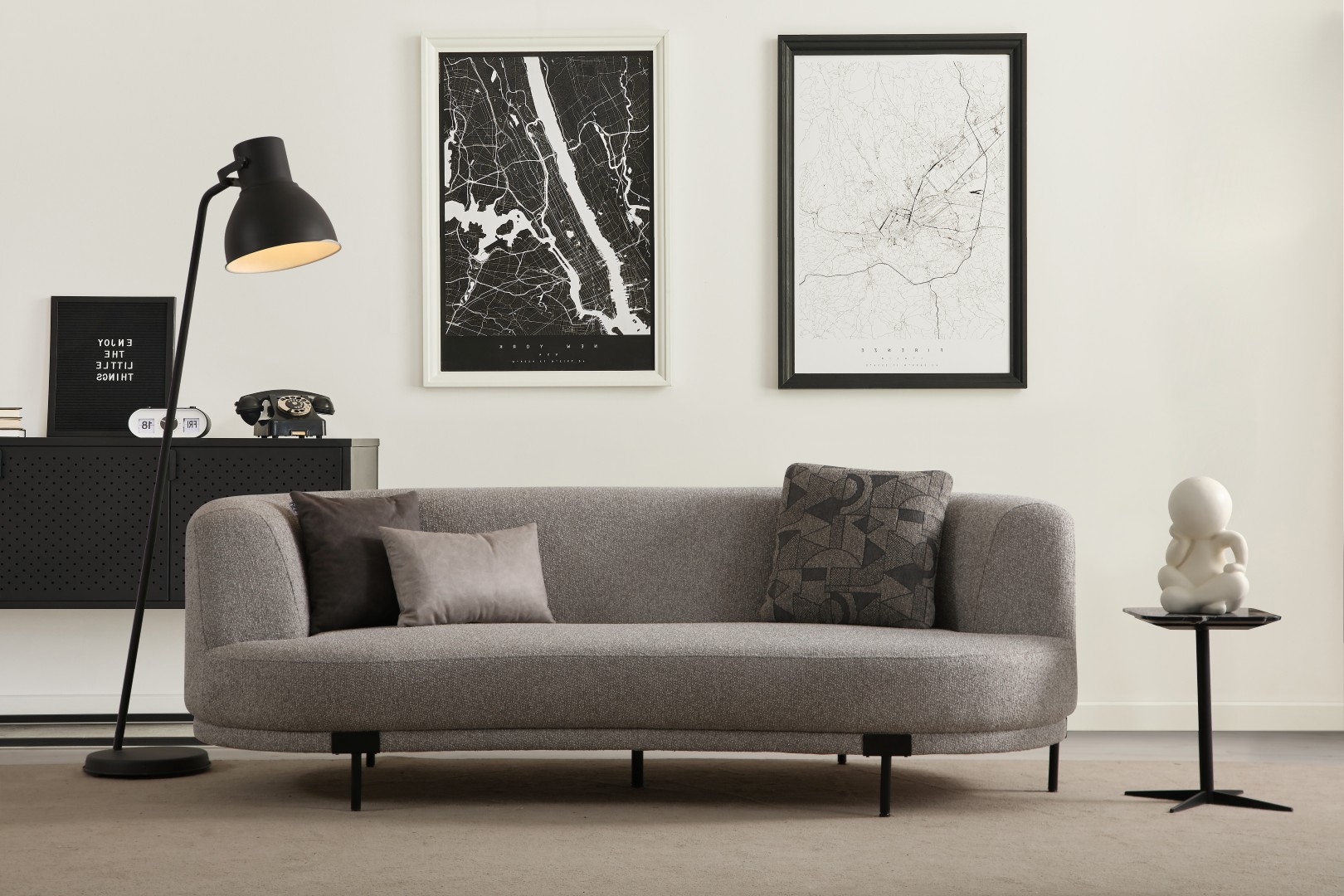 • Krem ve gri kumaş seçeneği