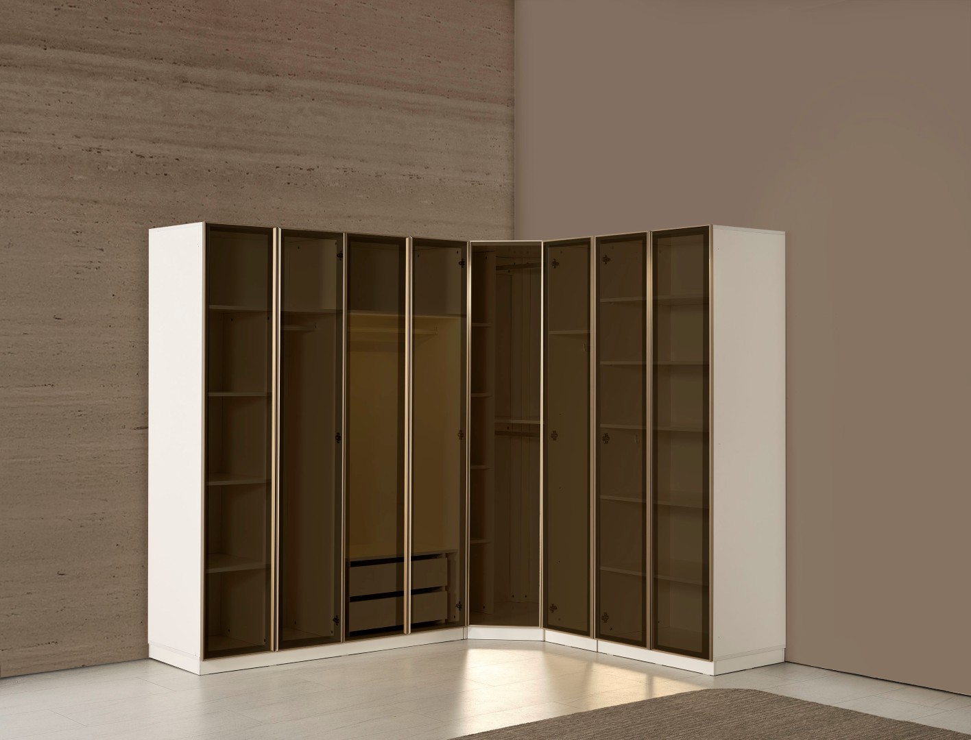• 8 Kapılı köşe dolap ebatı 244x204 cm