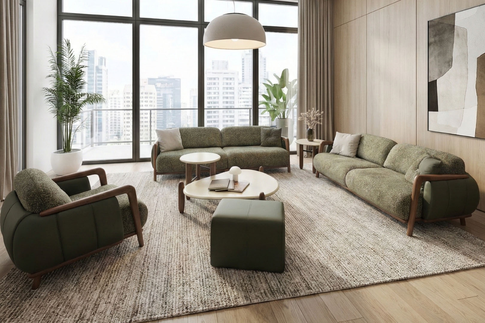 • İkonik Berjer Formu: Takımın ruhunu tamamlayan, geniş oturumlu ve kavisli hatlara sahip berjer, hem konforlu bir dinlenme alanı hem de heykelsi bir dekoratif obje işlevi görür.