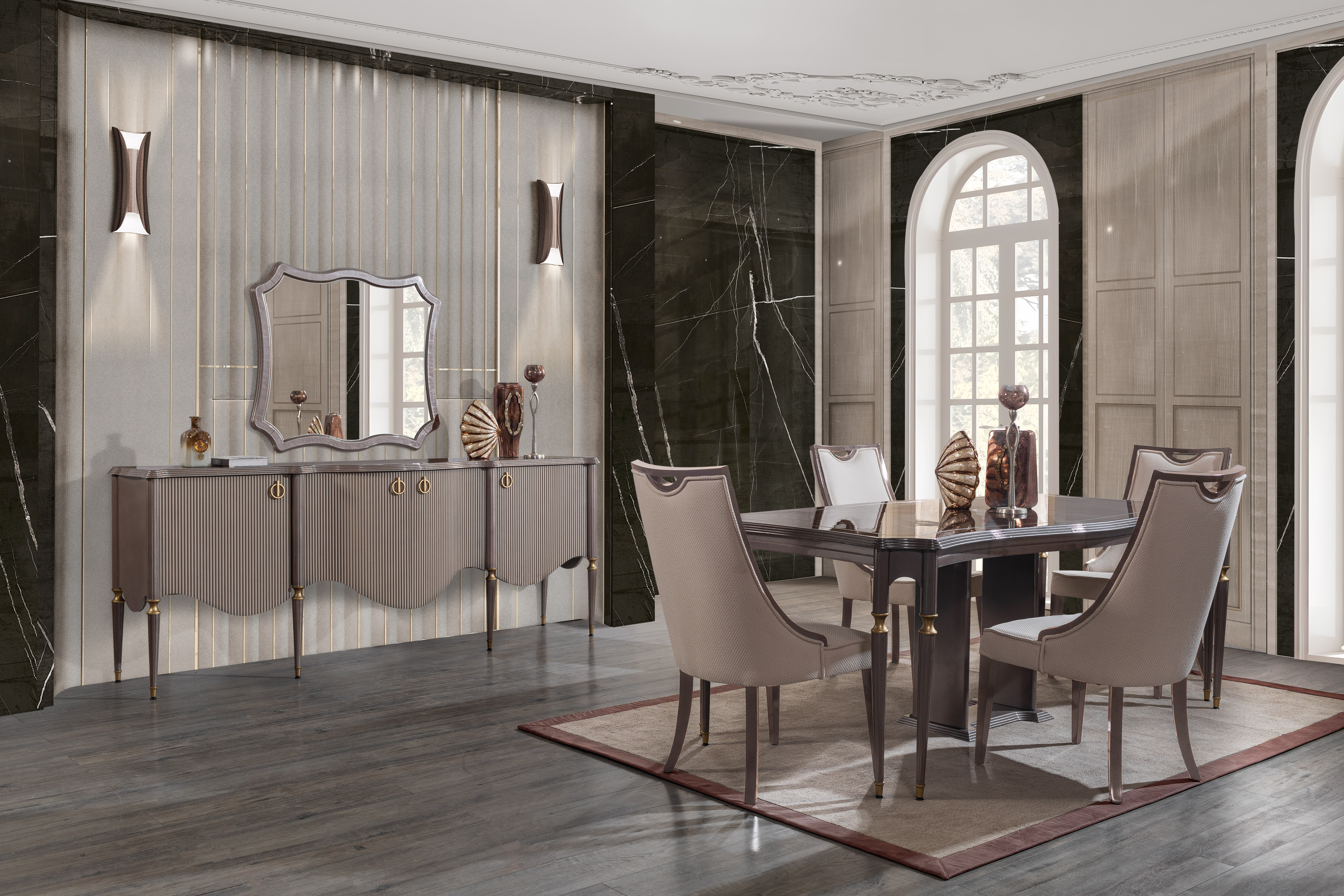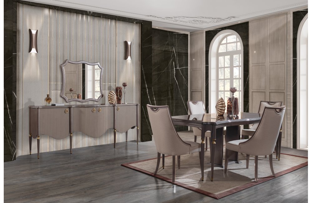 1ad. konsol, 1ad. konsol aynası, 1ad. masa ve 6ad. sandalyeden oluşmaktadır.