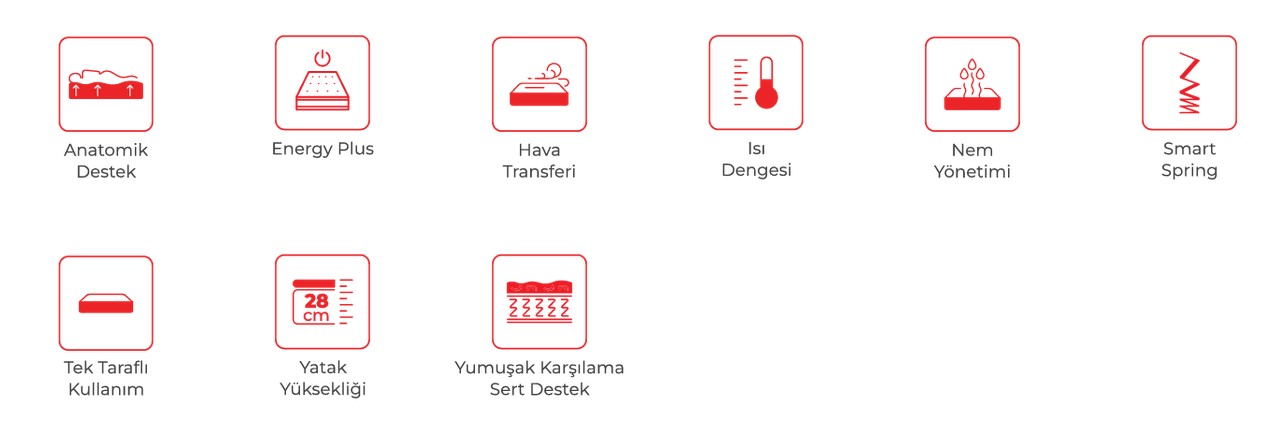 Tek taraflı kullanım, yatağın formunu uzun süre korumasına yardımcı olur. Yaklaşık 28 cm yatak yüksekliği, günlük kullanımda rahat bir deneyim sunar. Yatak arayışında dengeli bir konfor isteyenler için Smarttech Energy Yaylı Yatak, işlevsel bir seçenek olarak öne çıkar.