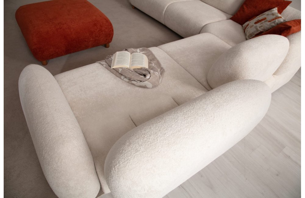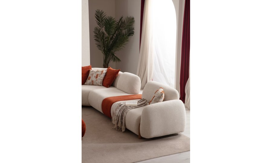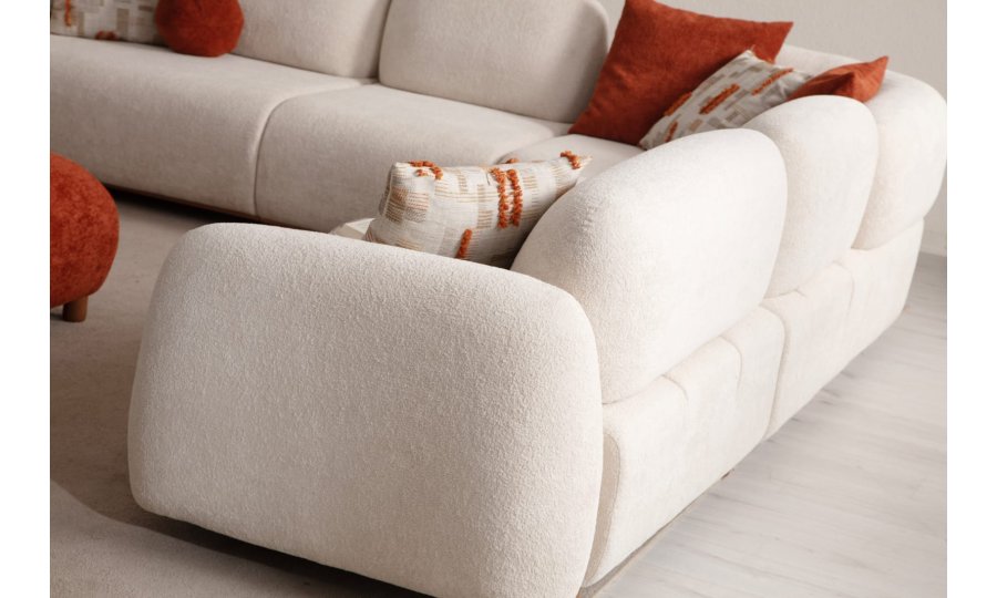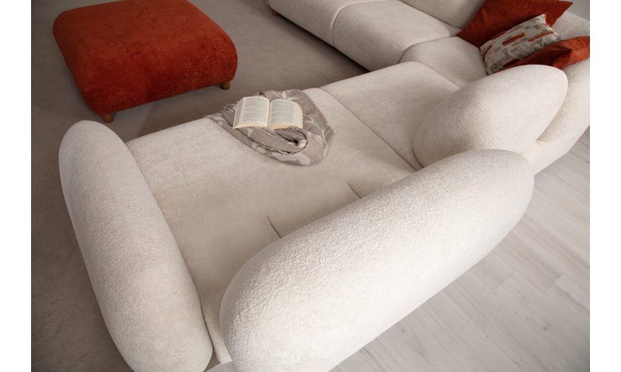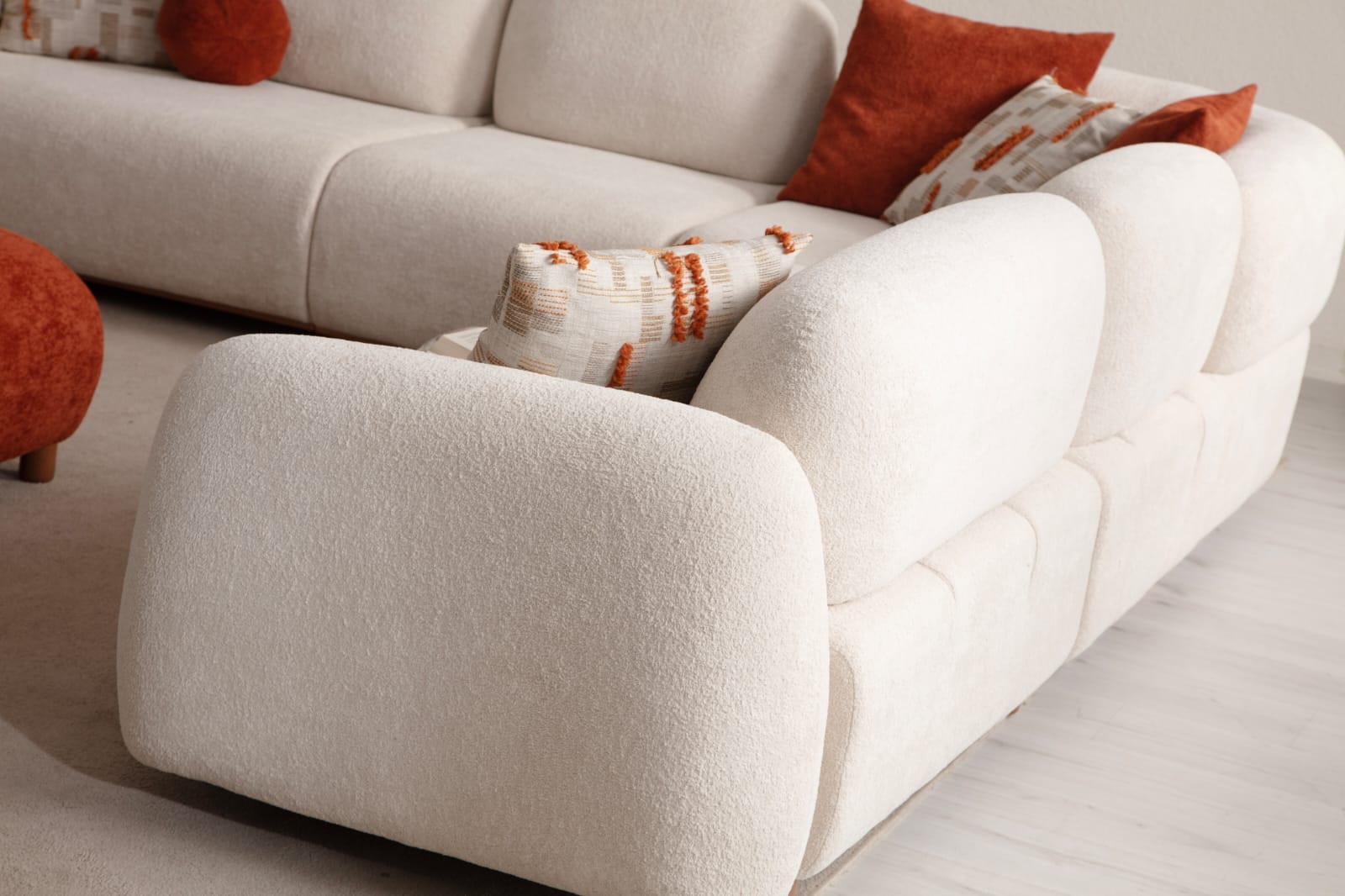 • Bukle Kumaşın Şıklığı: Son yılların dekorasyon trendi olan dokulu bukle kumaş, ürüne hem sıcak bir hava katıyor hem de üst düzey bir konfor sunuyor.