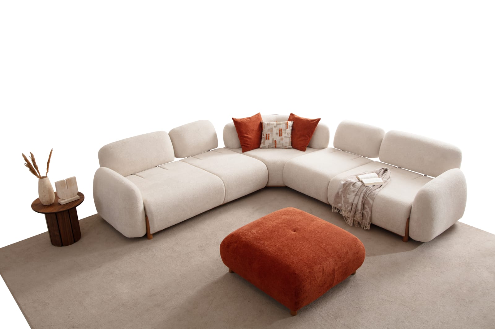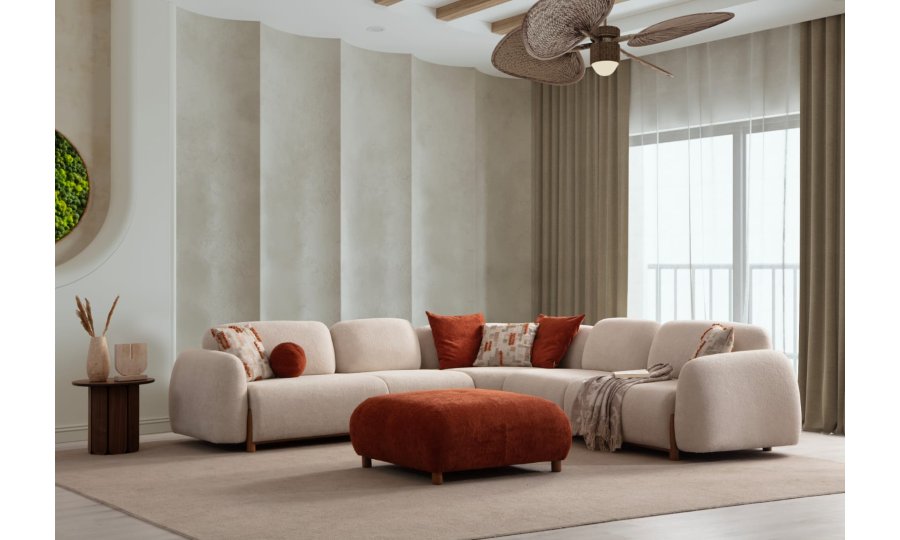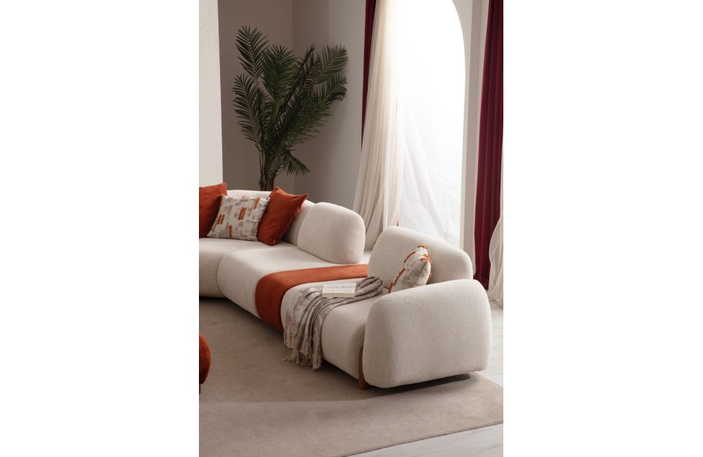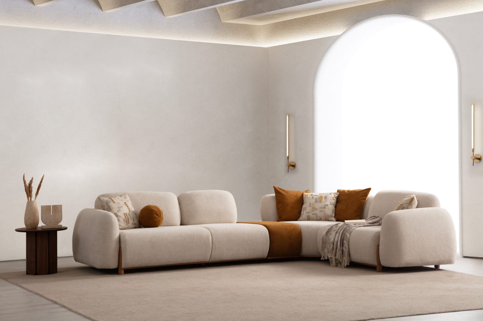 • Bukle Kumaşın Şıklığı: Son yılların dekorasyon trendi olan dokulu bukle kumaş, ürüne hem sıcak bir hava katıyor hem de üst düzey bir konfor sunuyor.