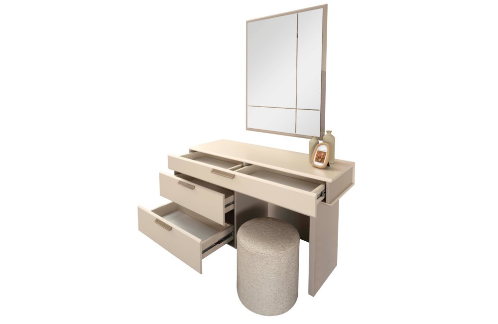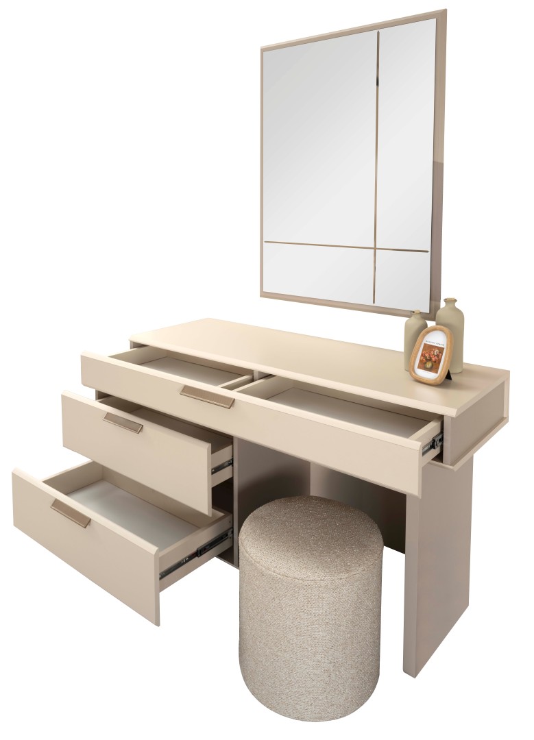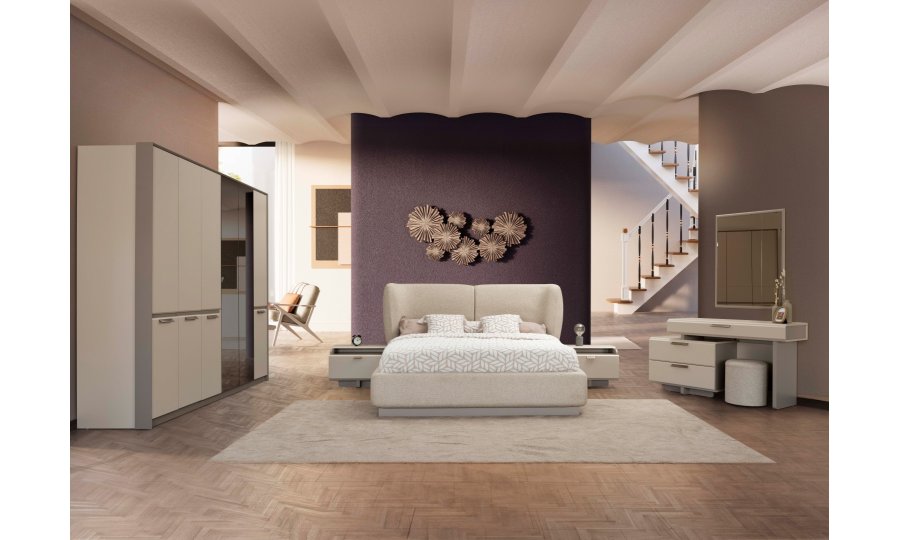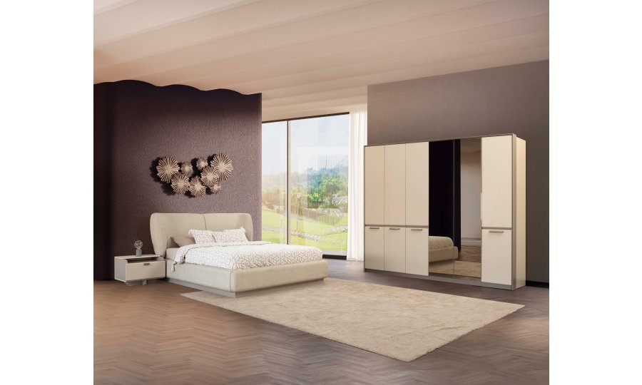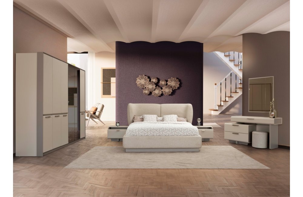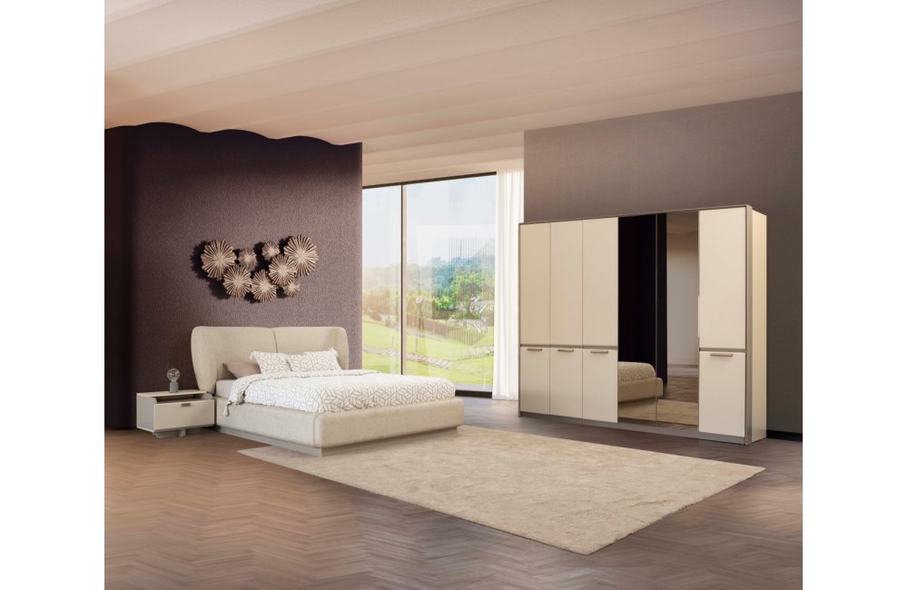 1 ad. 6 kapaklı dolap, 1 ad. karyola, 2 ad. komodin ve 1 ad. şifonyerden (aynalı) oluşmaktadır.