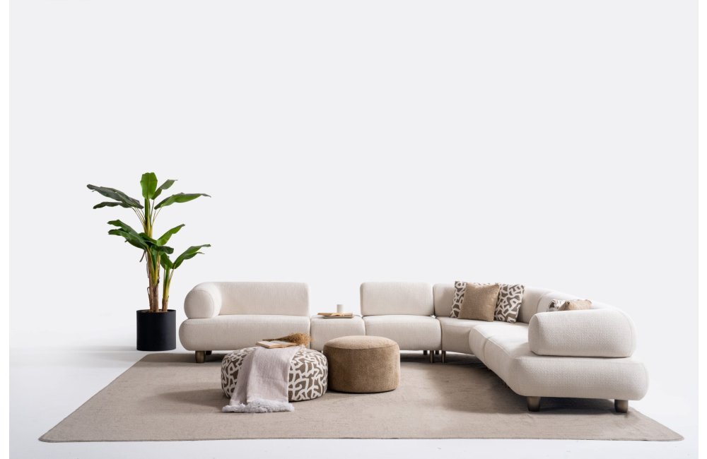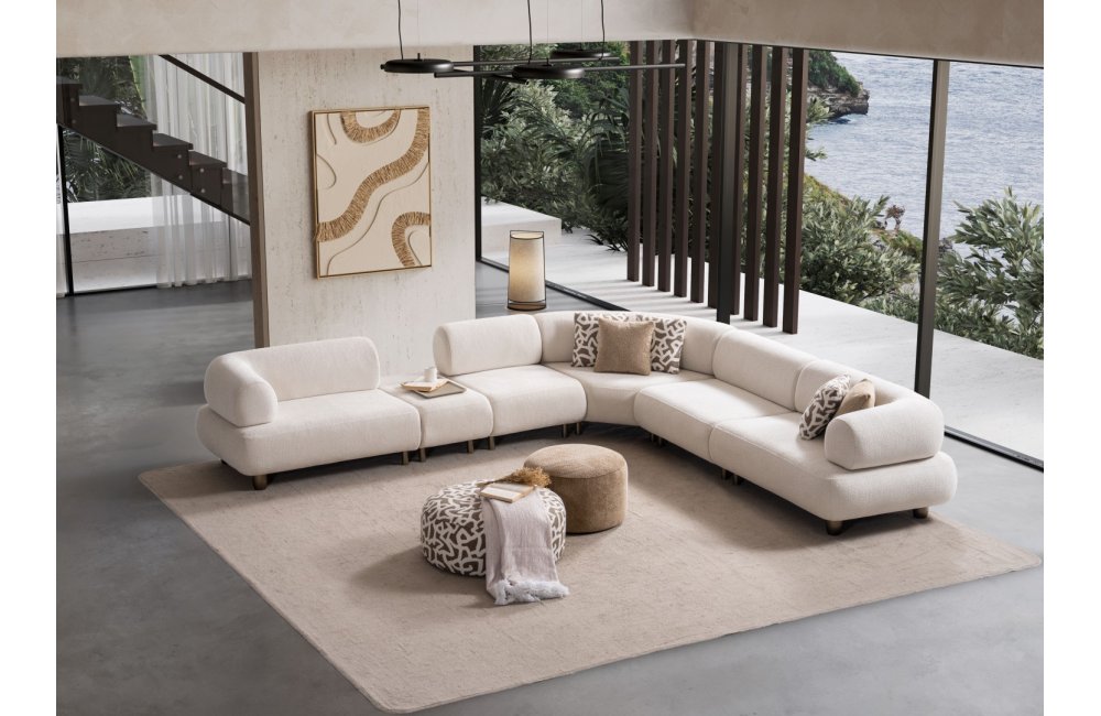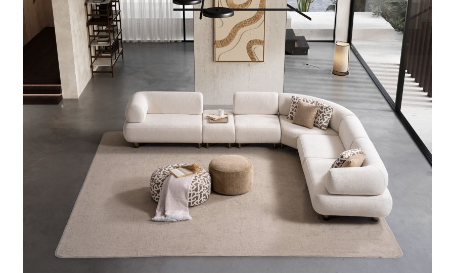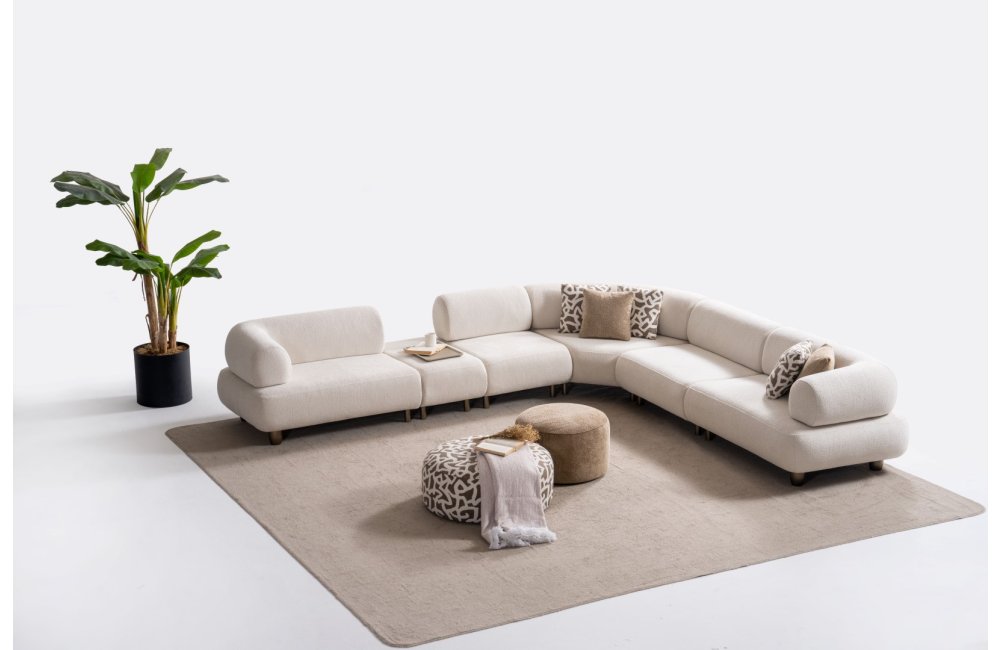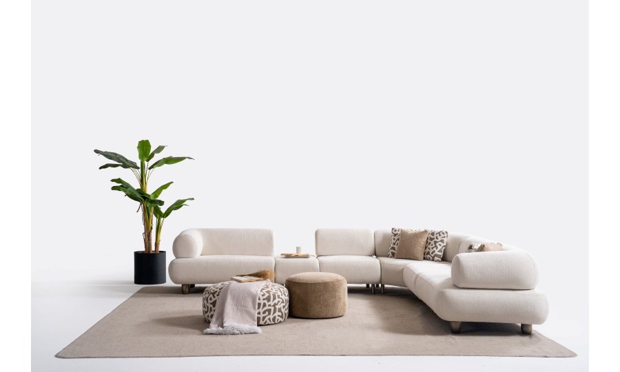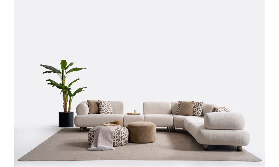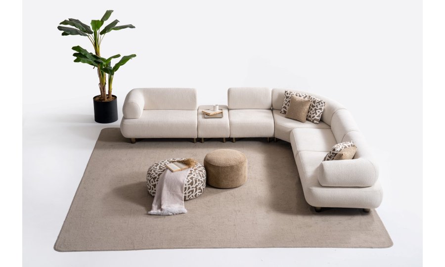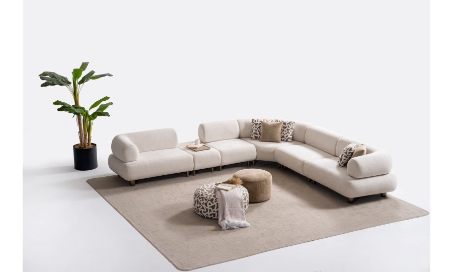 1ad. kollu modül, 50cm ara sehpa, 2ad. 70cm ara piyon, 1ad. köşe modül, 1ad. 123cm kollu modülden oluşmaktadır. 103cm kollu modül, köşe modül, 90cm ara piyon, açılı sehpa, berjer opsiyonel satılmaktadır.