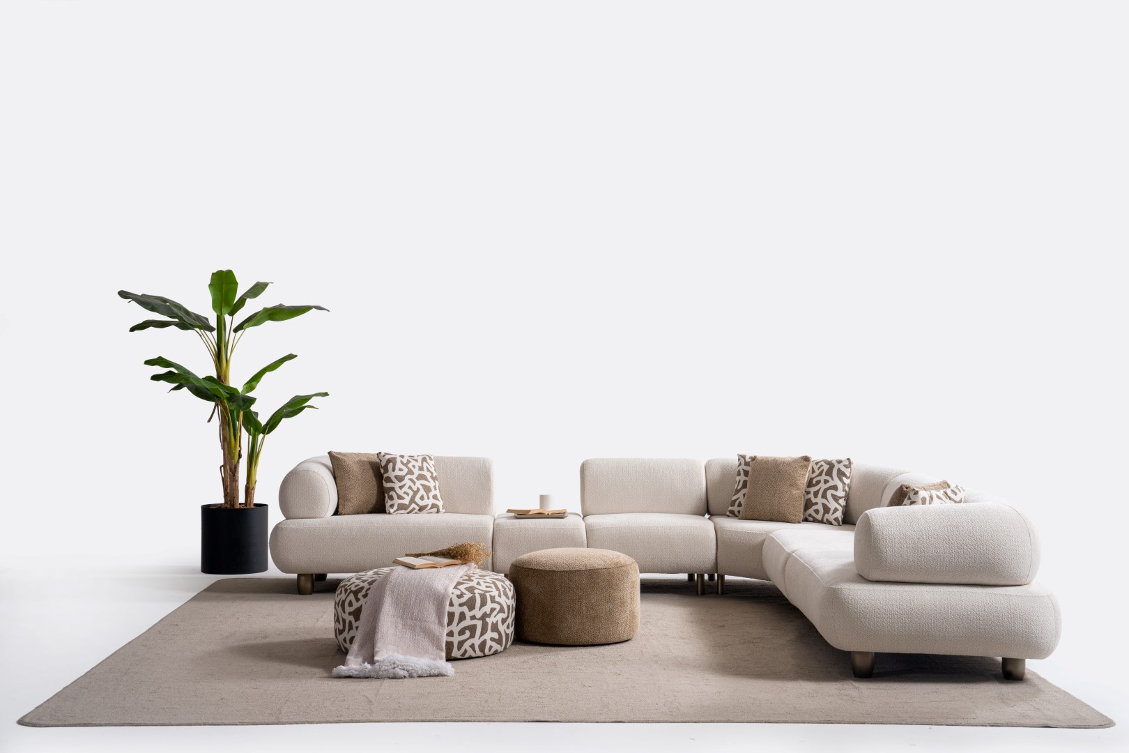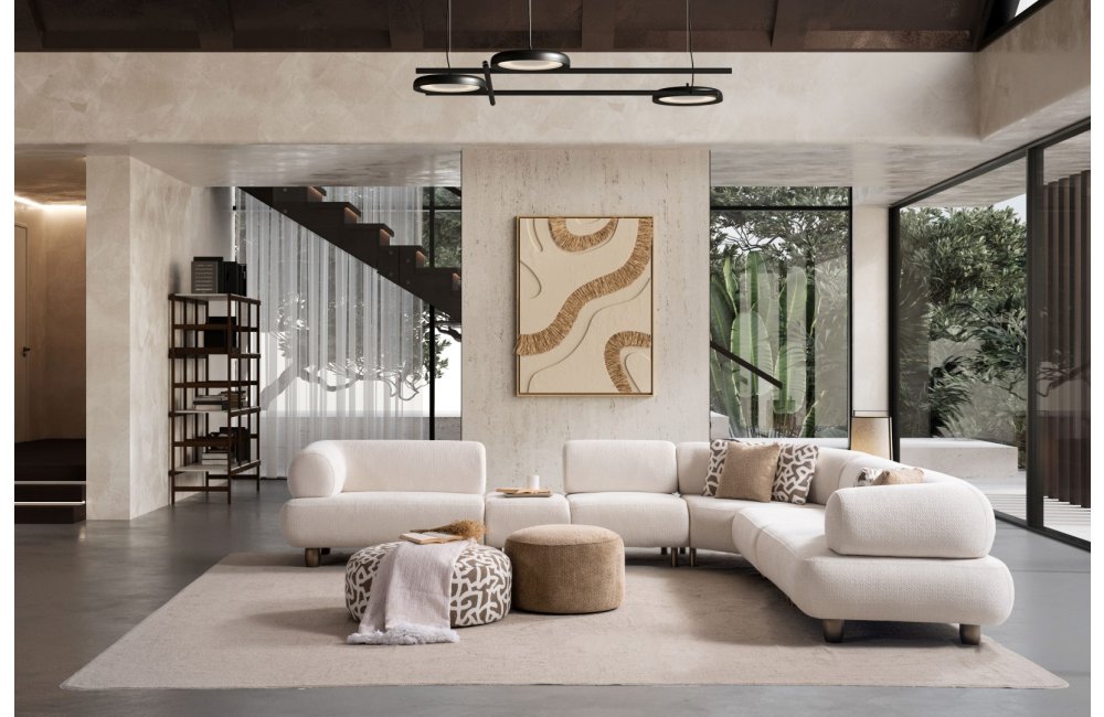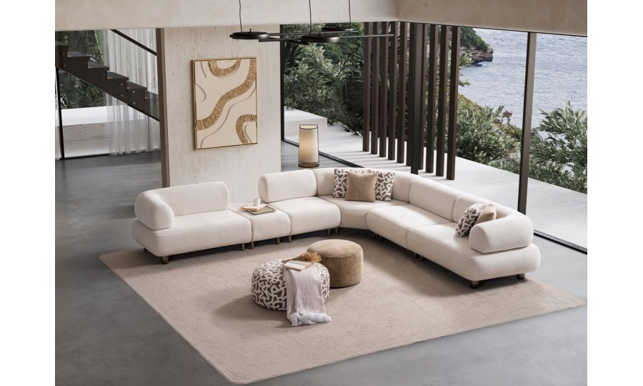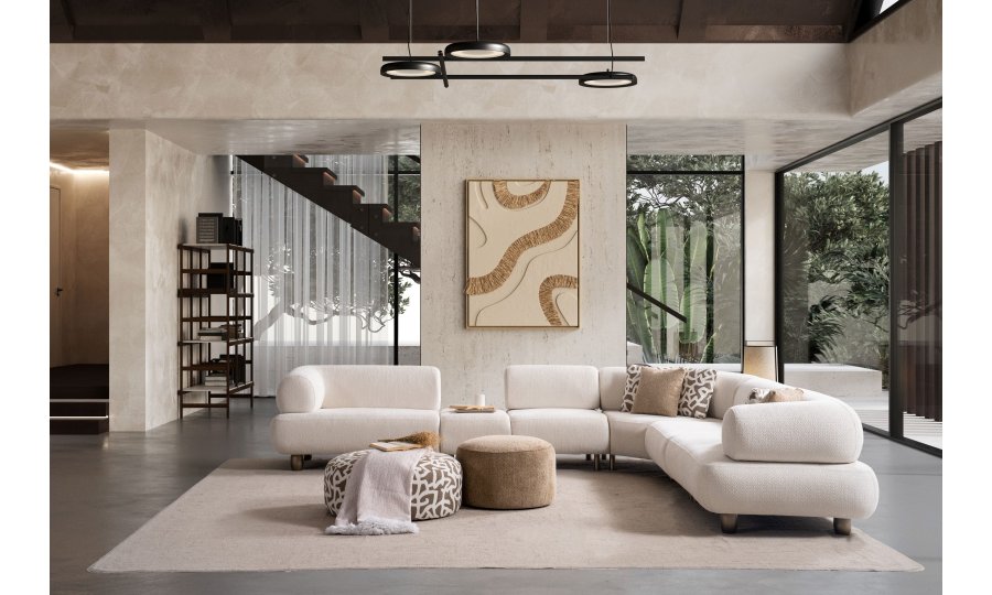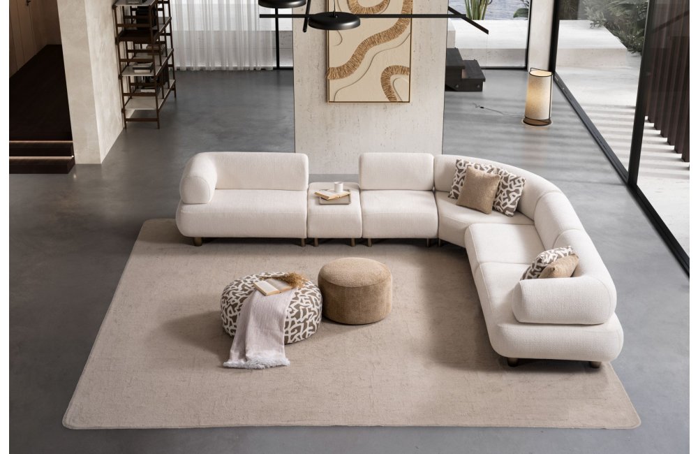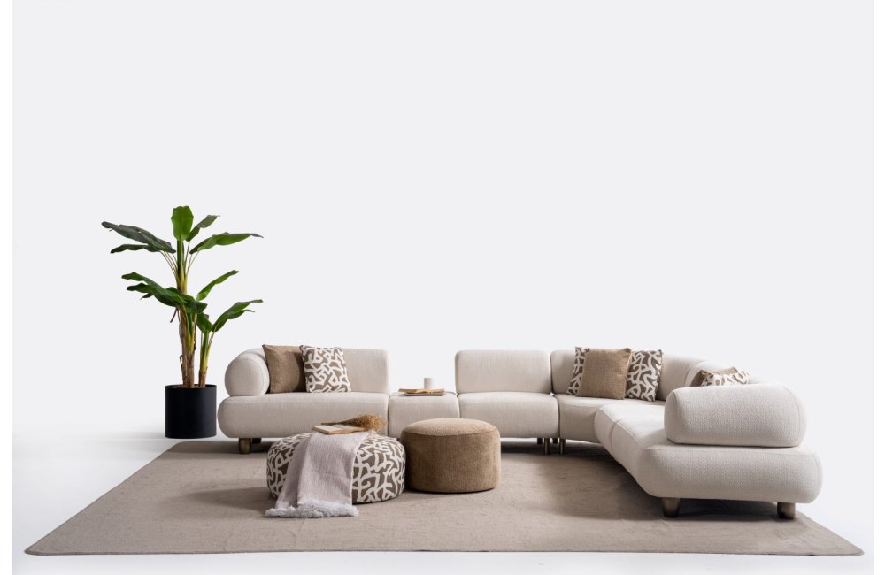 1ad. kollu modül, 50cm ara sehpa, 2ad. 70cm ara piyon, 1ad. köşe modül, 1ad. 123cm kollu modülden oluşmaktadır. 103cm kollu modül, köşe modül, 90cm ara piyon, açılı sehpa, berjer opsiyonel satılmaktadır.