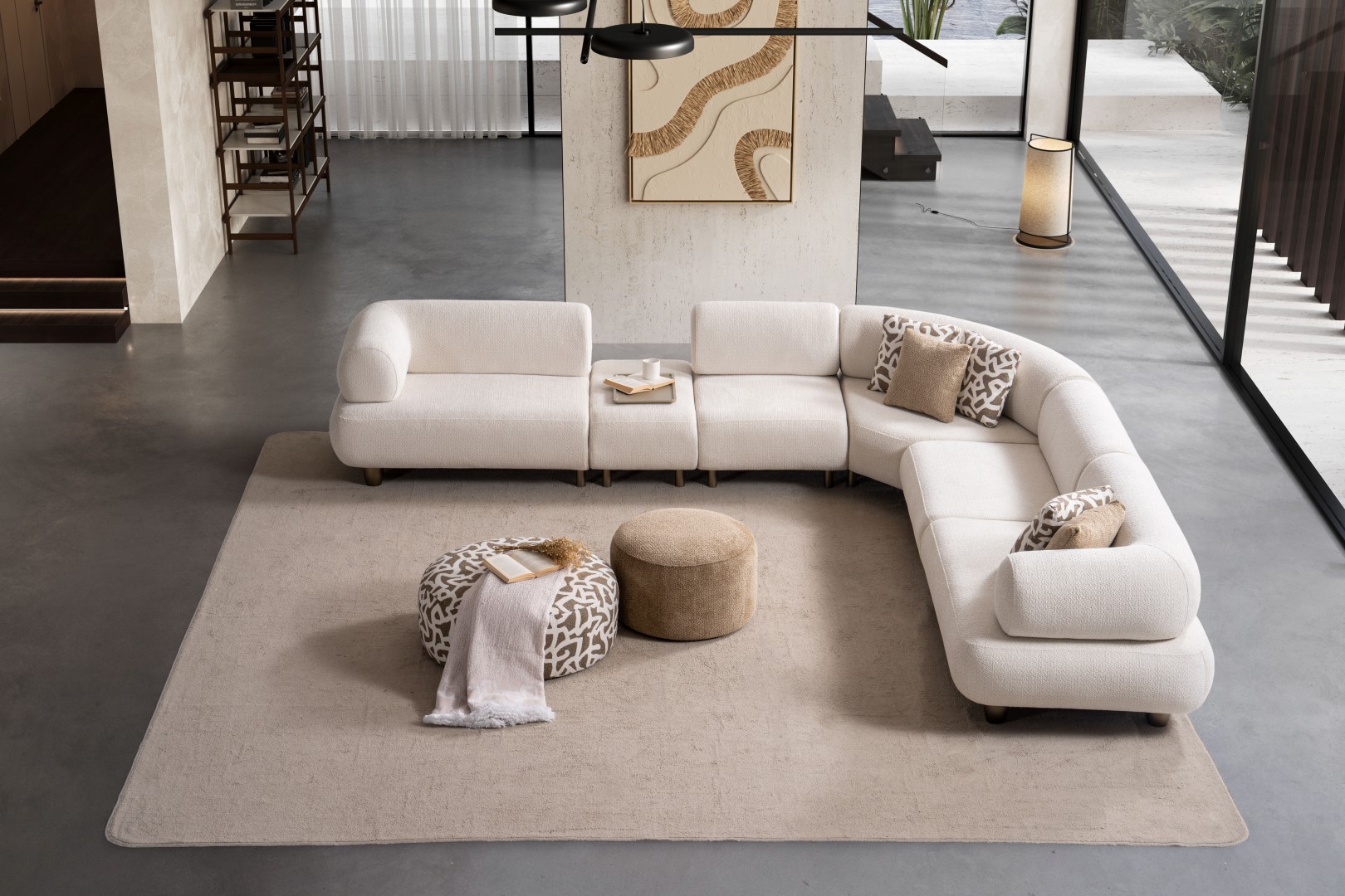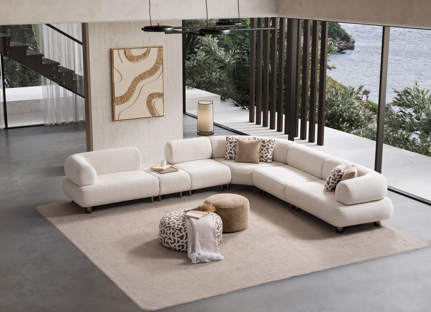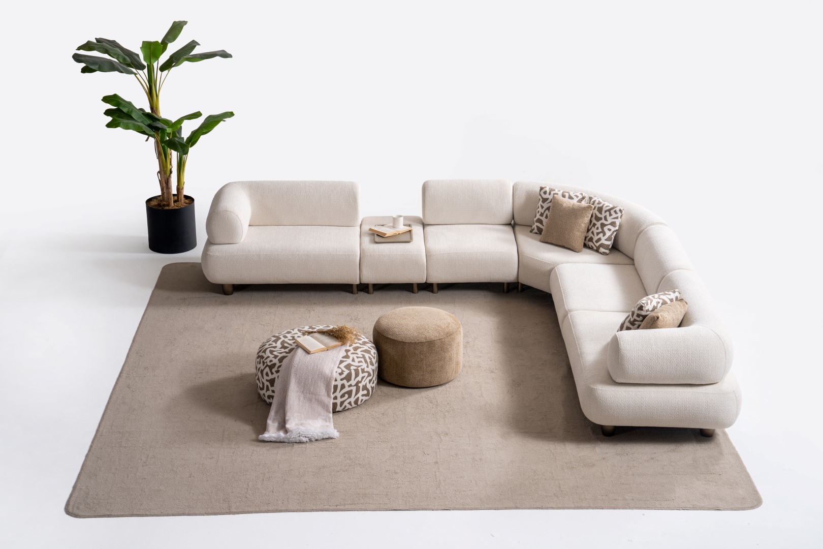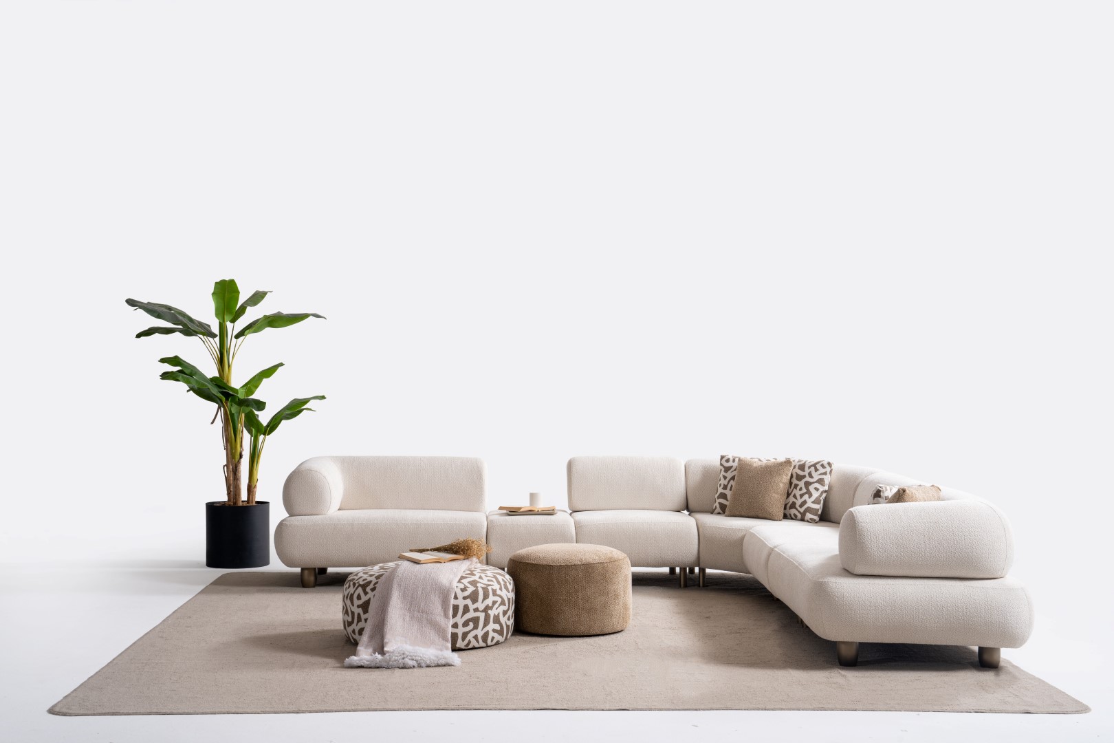 1ad. kollu modül, 50cm ara sehpa, 2ad. 70cm ara piyon, 1ad. köşe modül, 1ad. 123cm kollu modülden oluşmaktadır. 103cm kollu modül, köşe modül, 90cm ara piyon, açılı sehpa, berjer opsiyonel satılmaktadır.