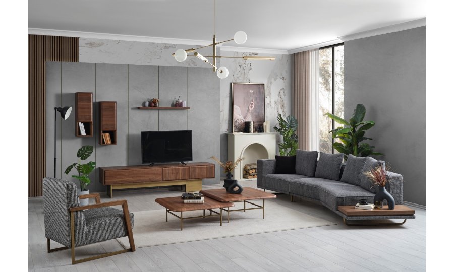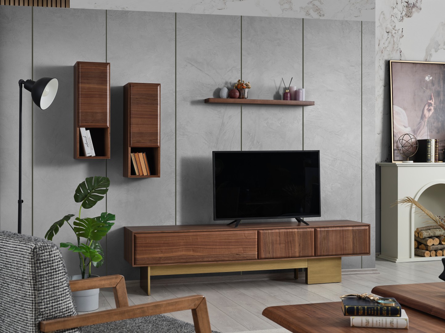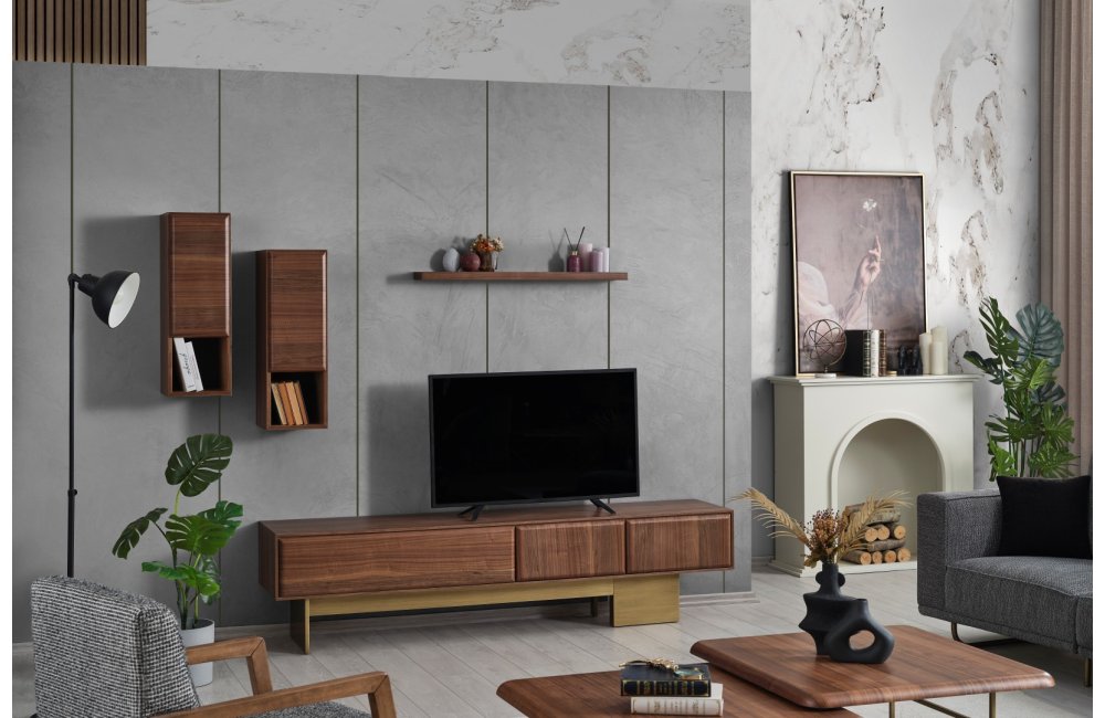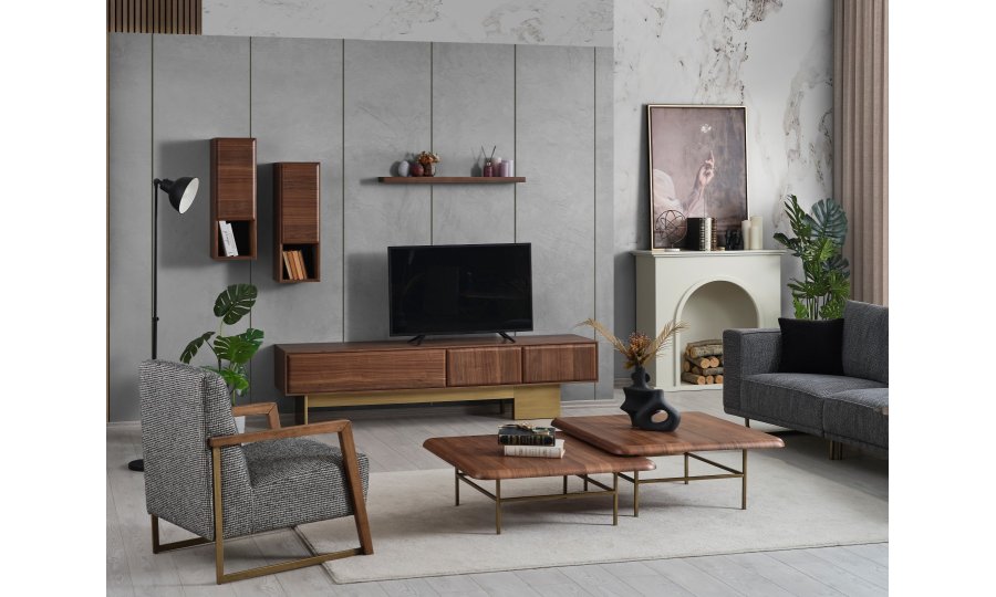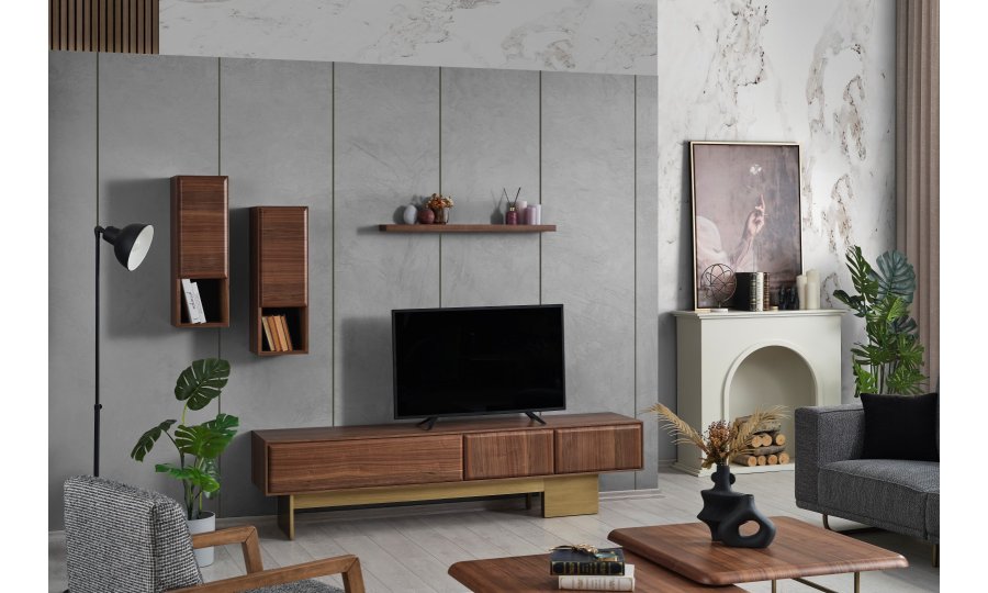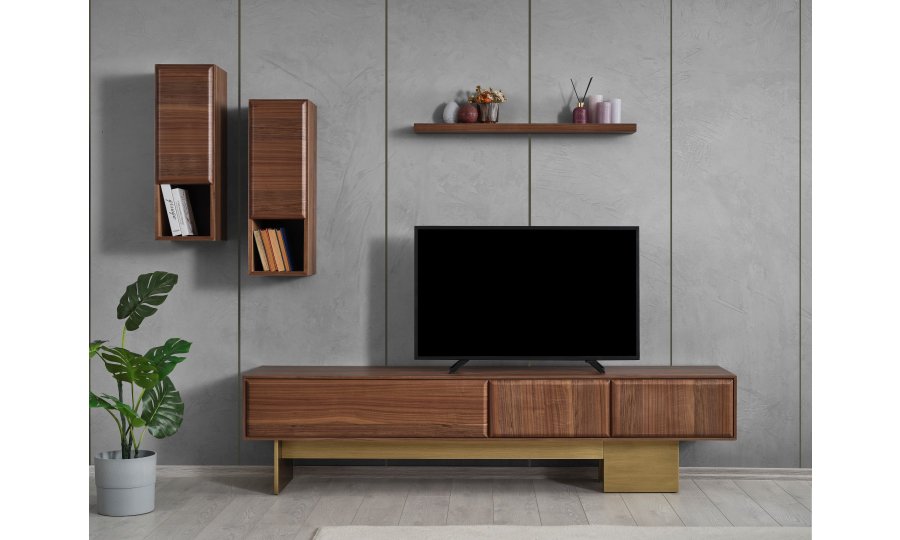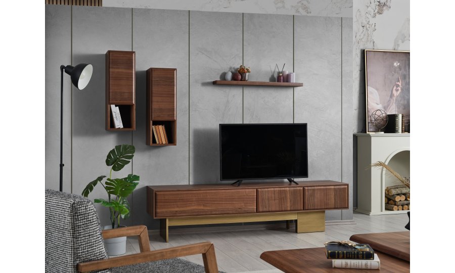 1 ad. TV ünitesinden (ünite alt blok, ünite üst blok ve raf) oluşmaktadır.