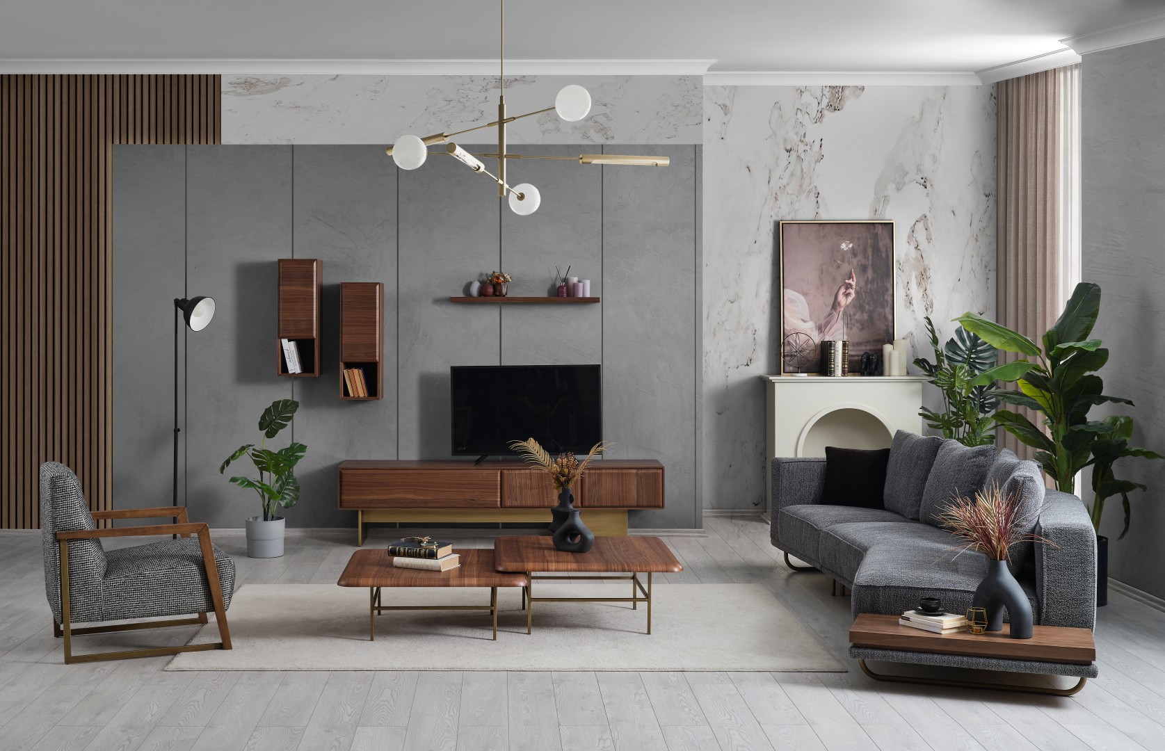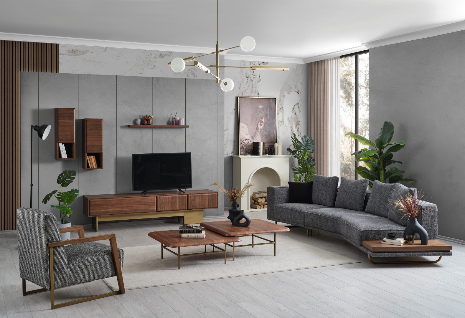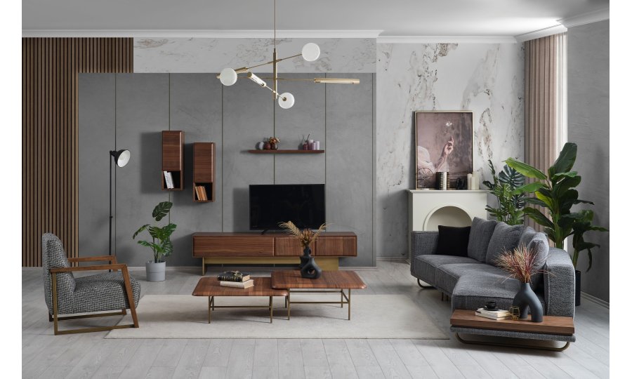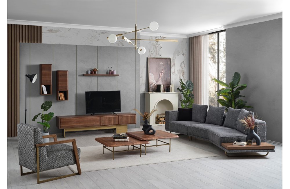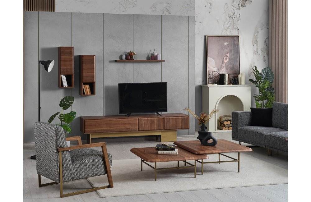 1 ad. TV ünitesinden (ünite alt blok, ünite üst blok ve raf) oluşmaktadır.