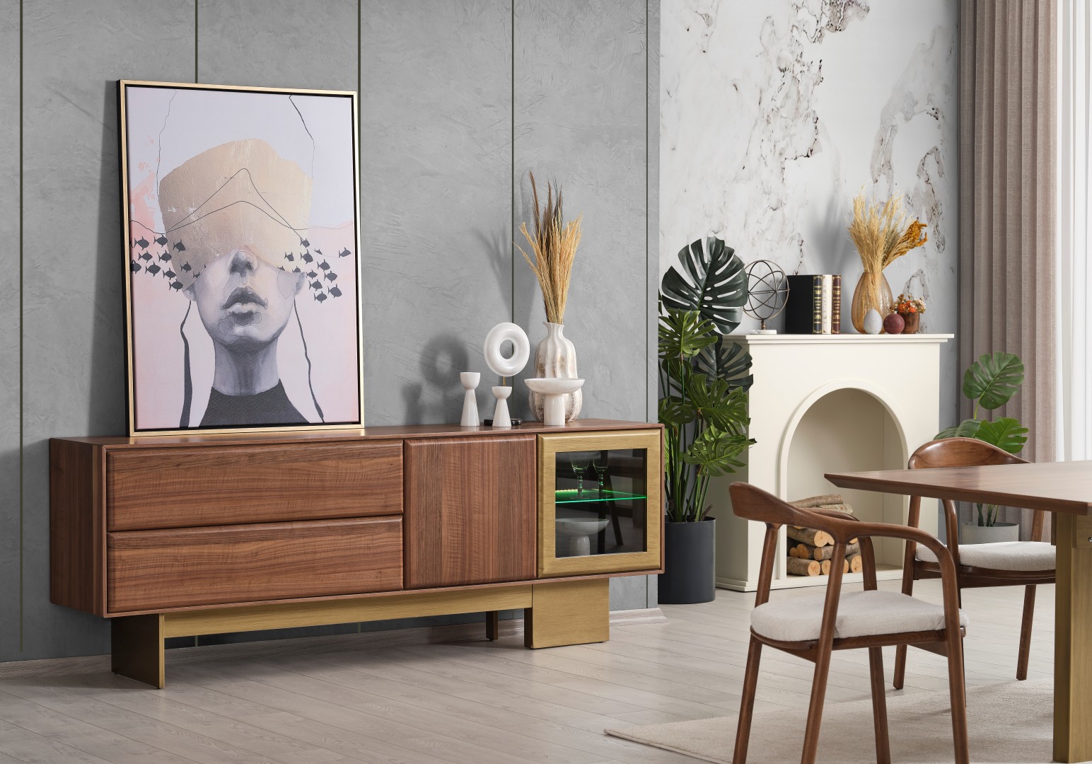 1 ad. konsol, 1 ad. masa ve 6 ad. sandalyeden oluşmaktadır.