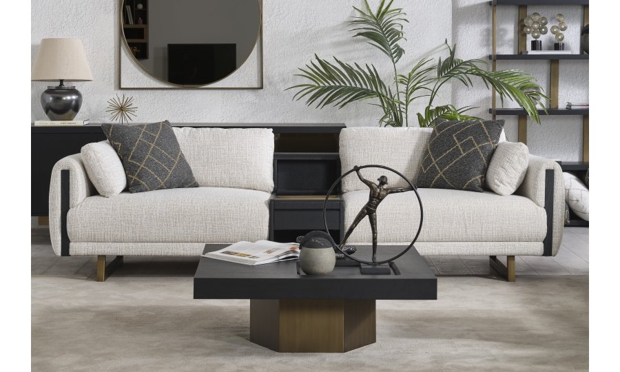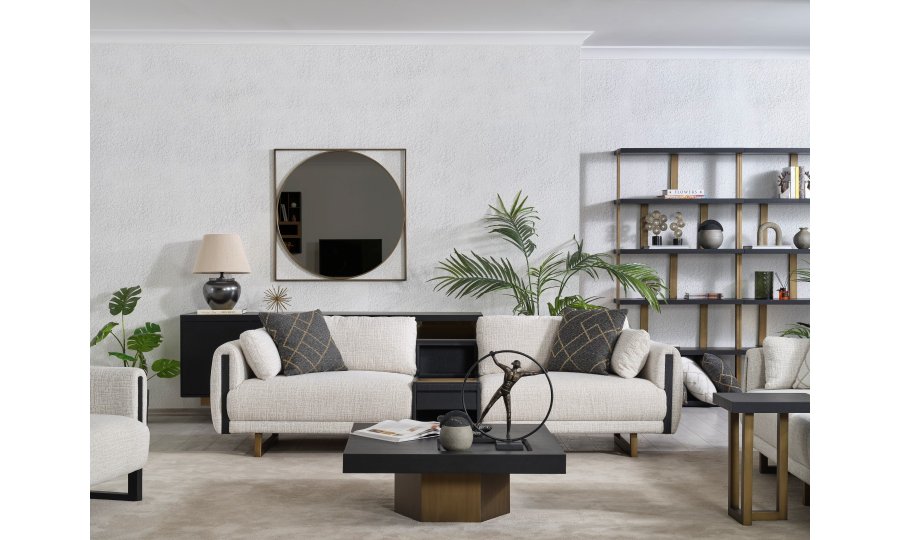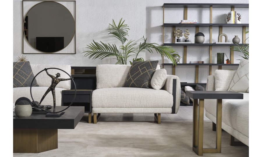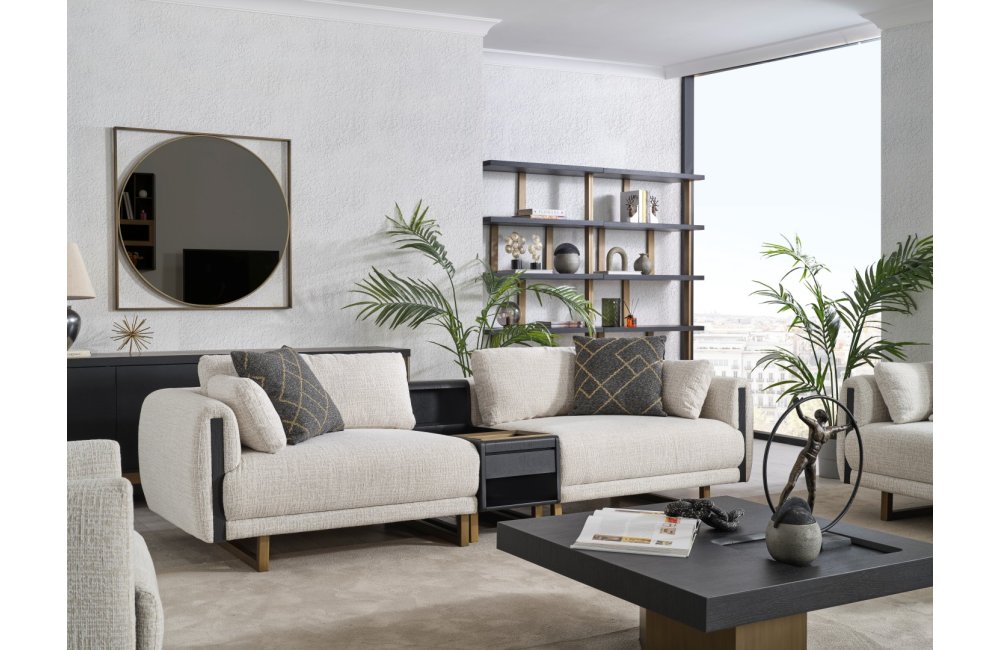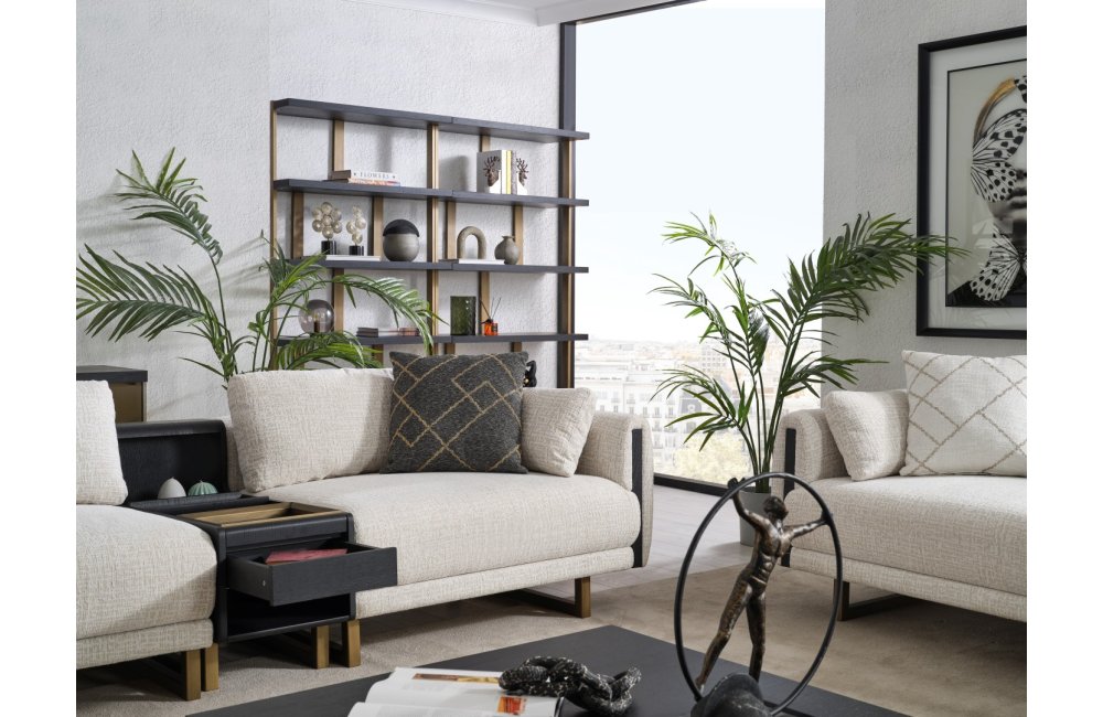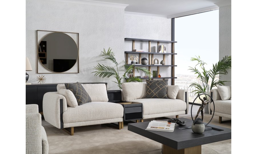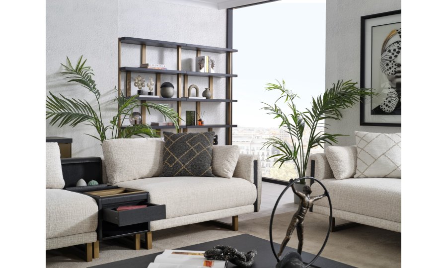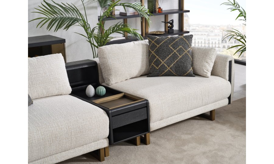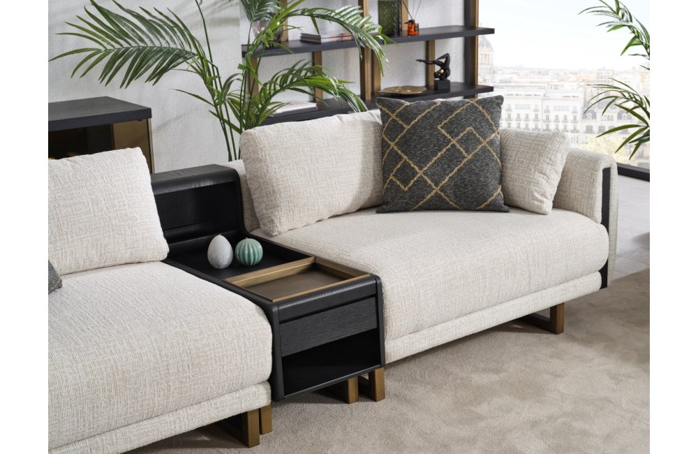 • Tasarım Detayları: Kol yanlarındaki dikey antrasit paneller ve yerden yüksek gold metal ayaklar, modern ve havadar bir görünüm sağlar.