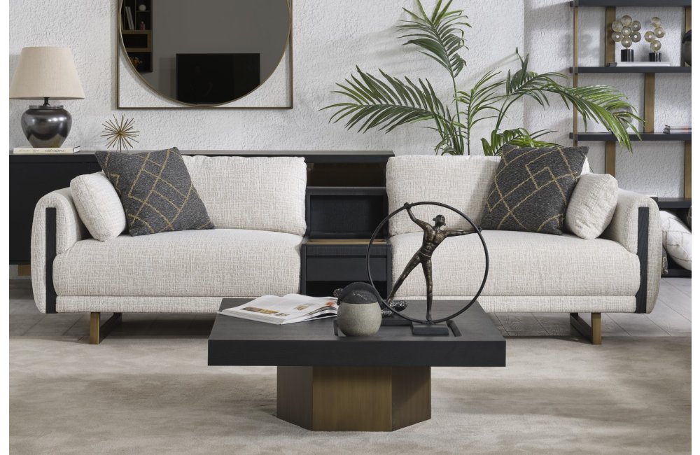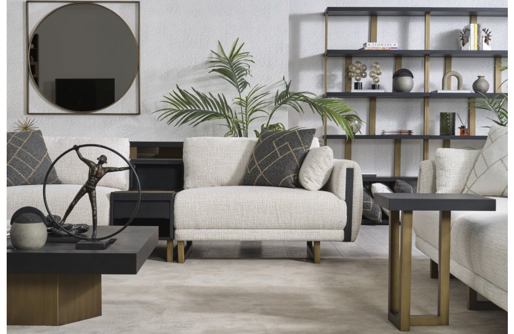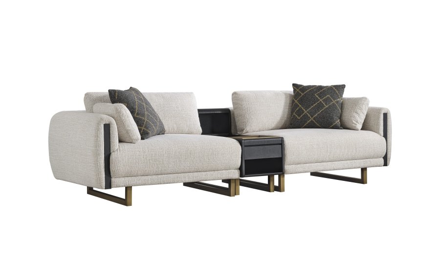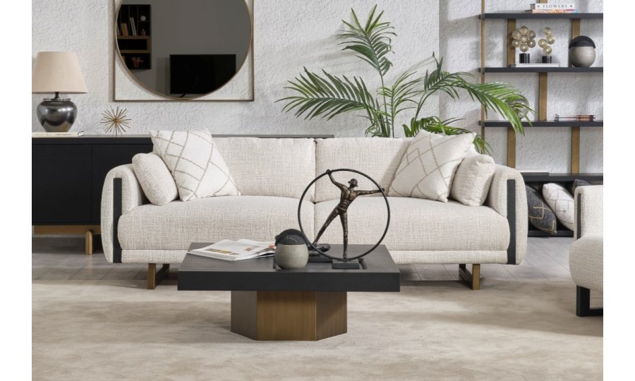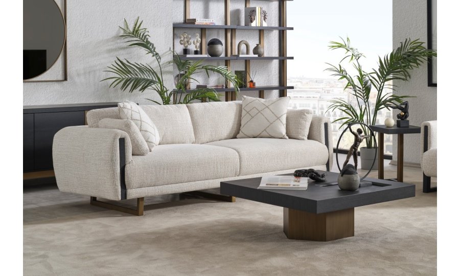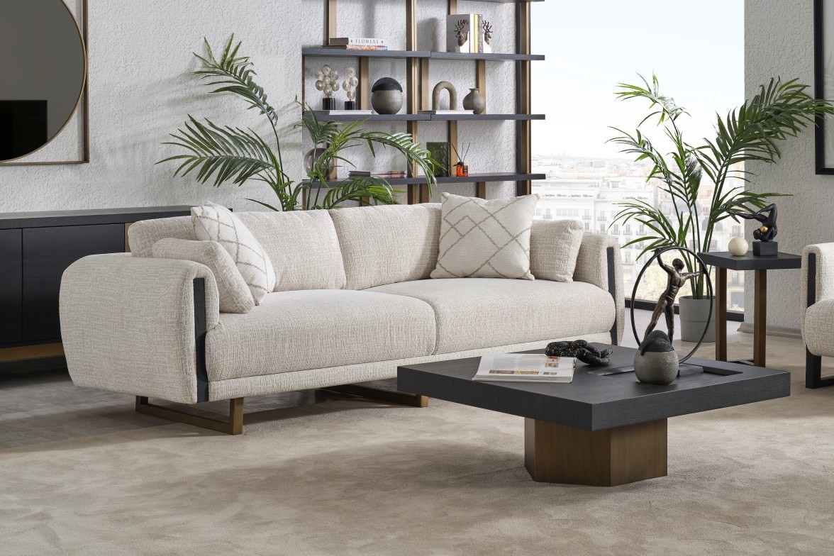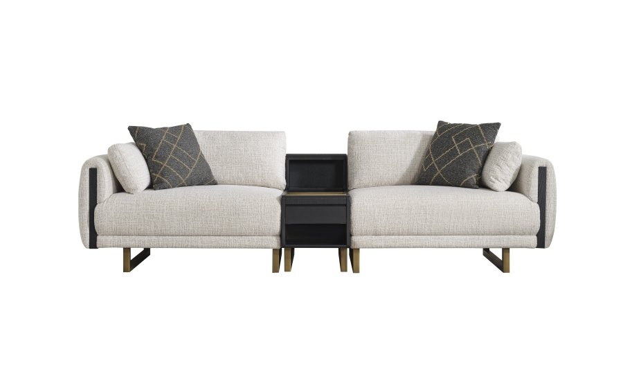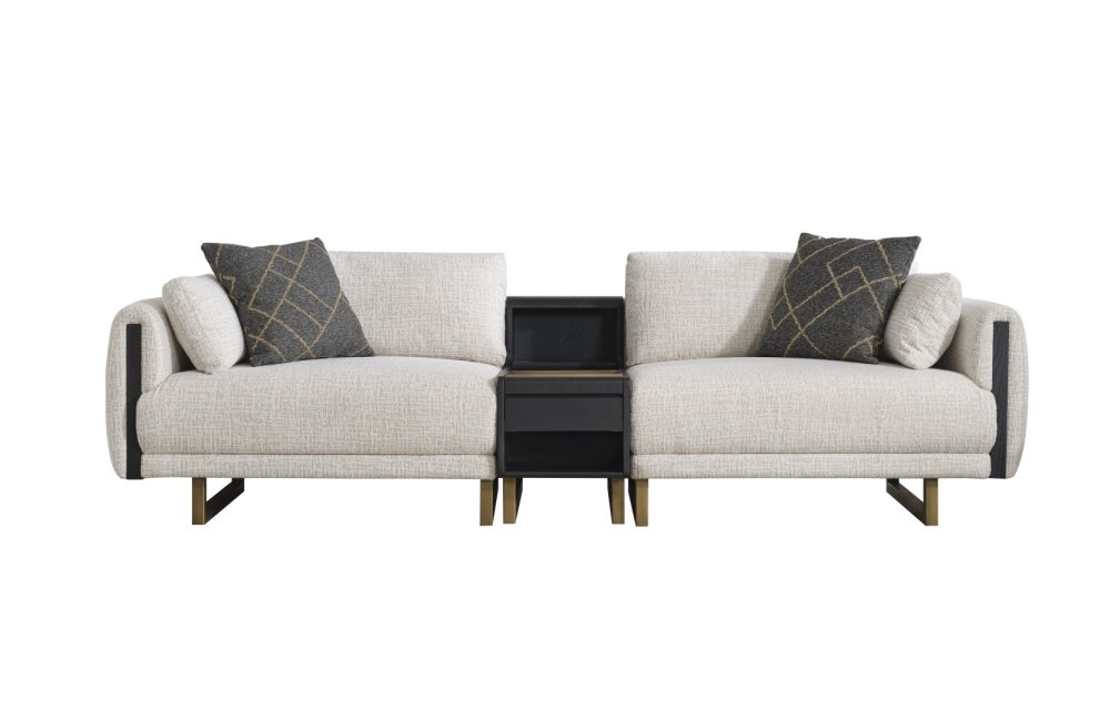 • Tasarım Detayları: Kol yanlarındaki dikey antrasit paneller ve yerden yüksek gold metal ayaklar, modern ve havadar bir görünüm sağlar.