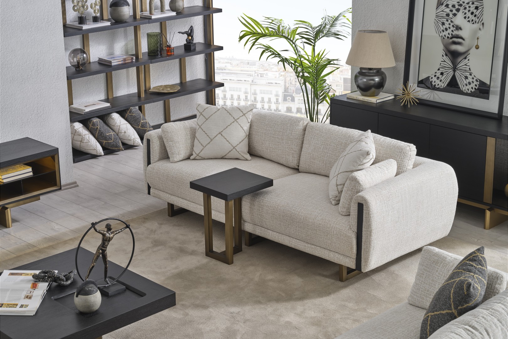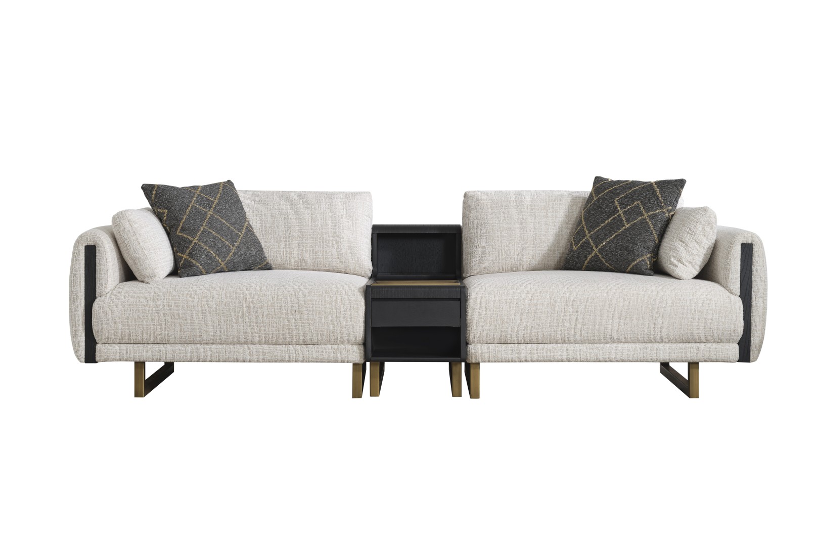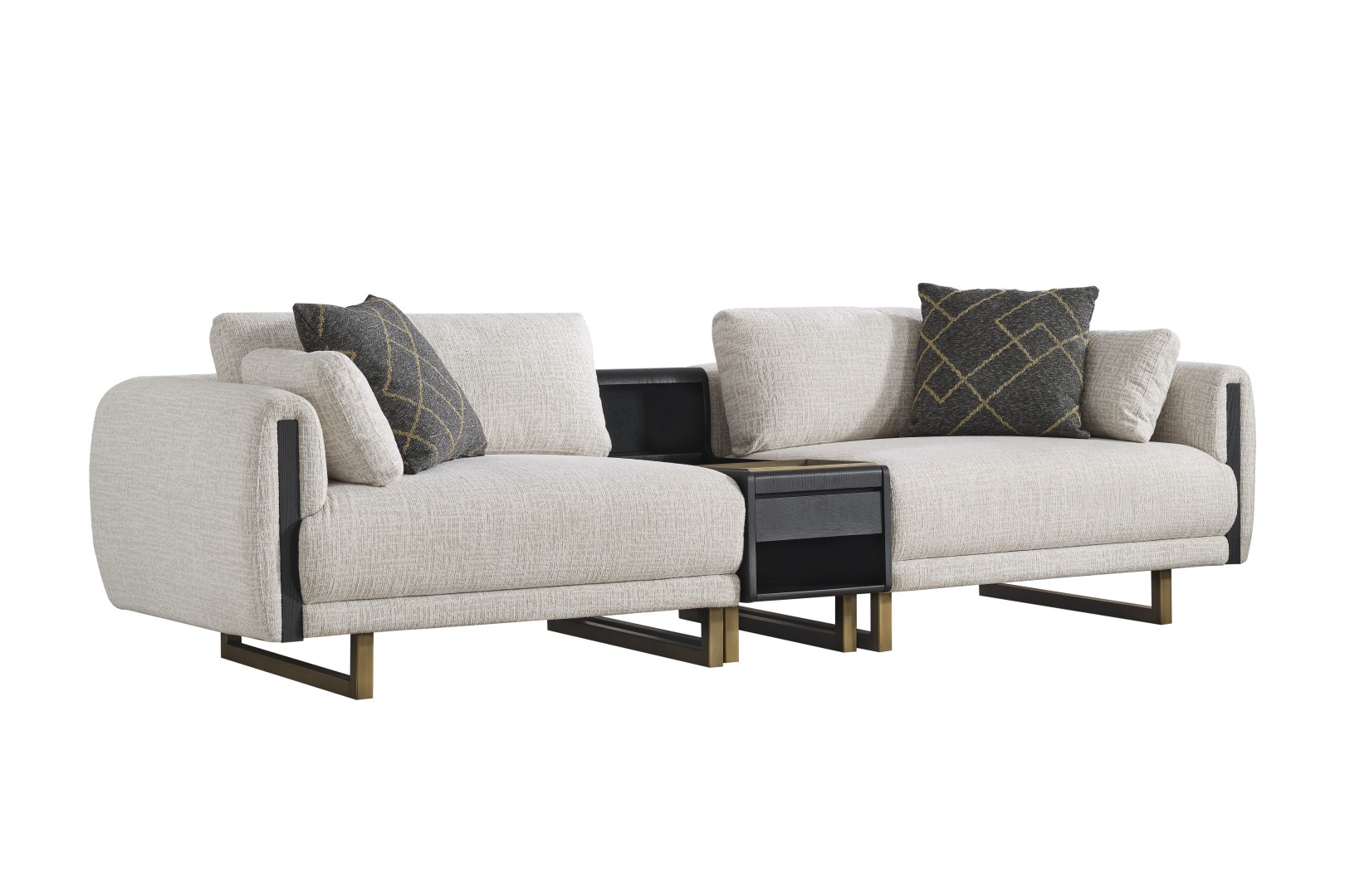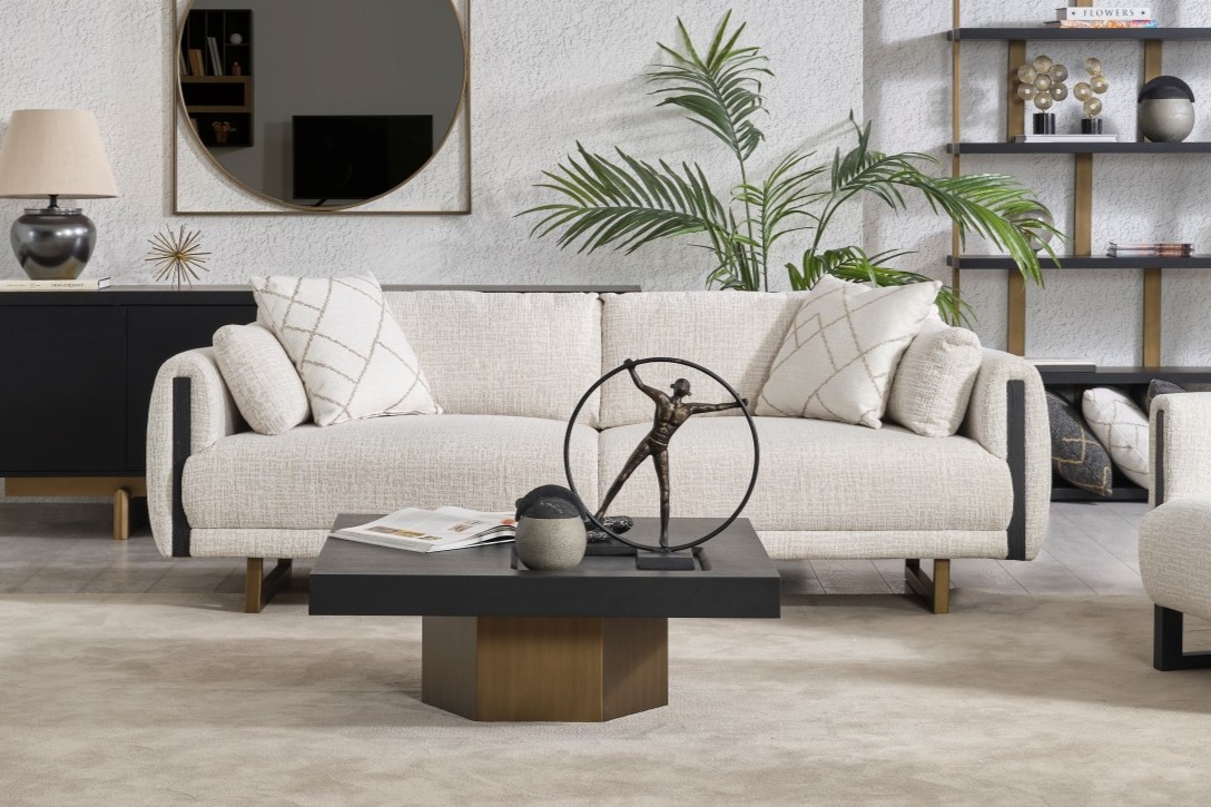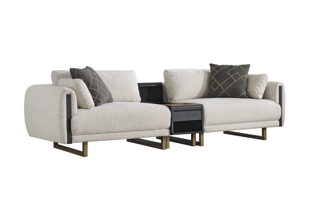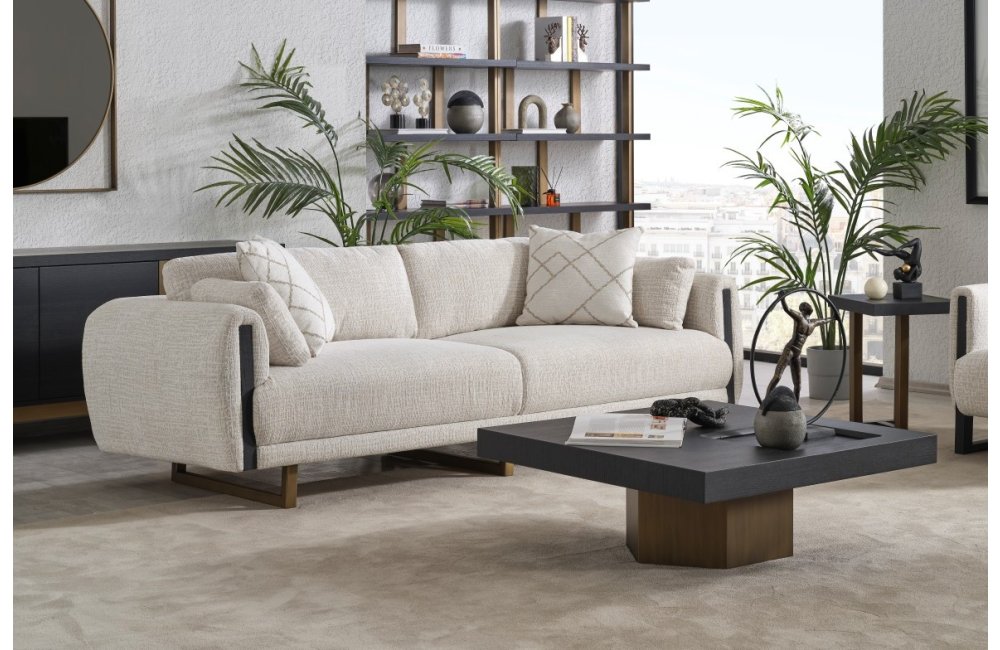 • Tasarım Detayları: Kol yanlarındaki dikey antrasit paneller ve yerden yüksek gold metal ayaklar, modern ve havadar bir görünüm sağlar.