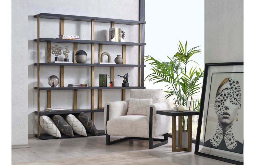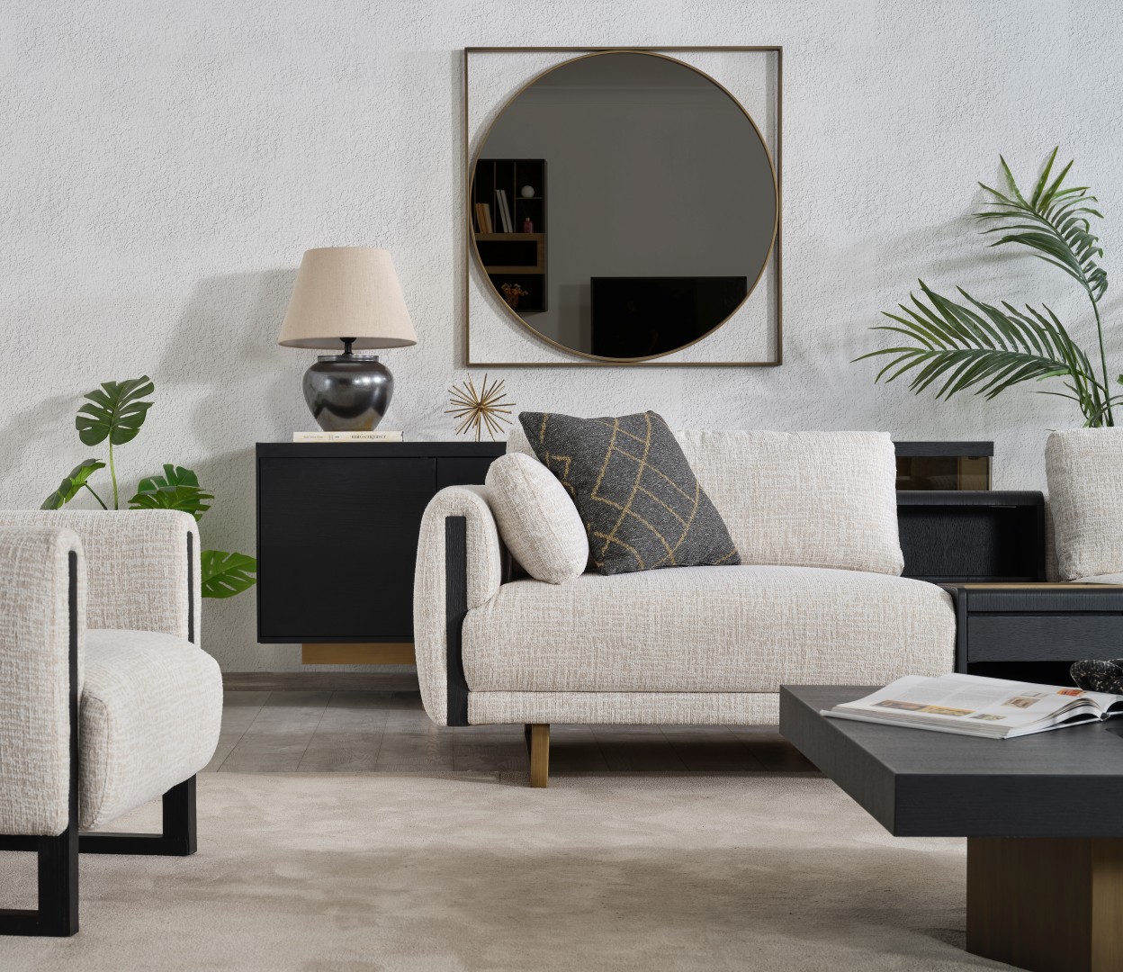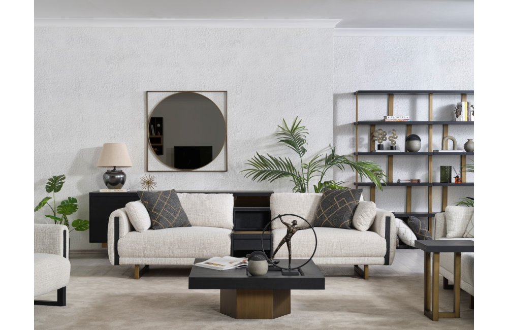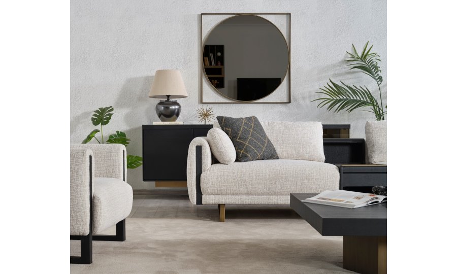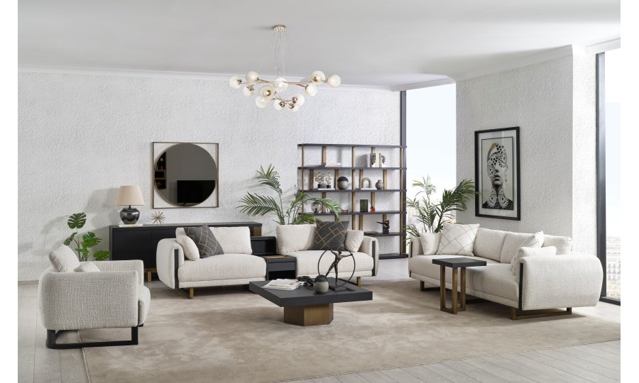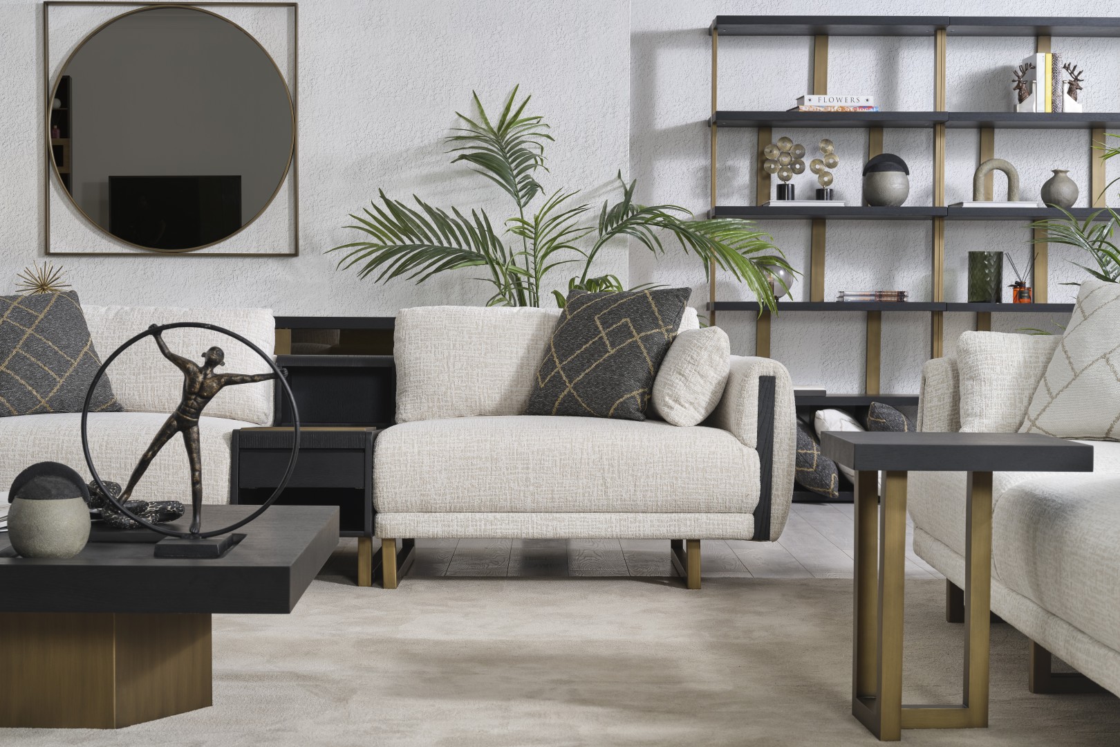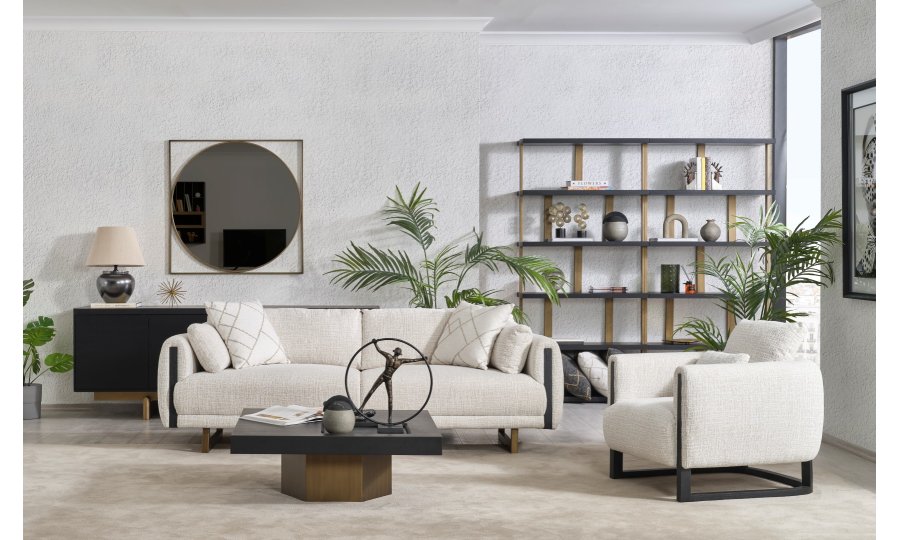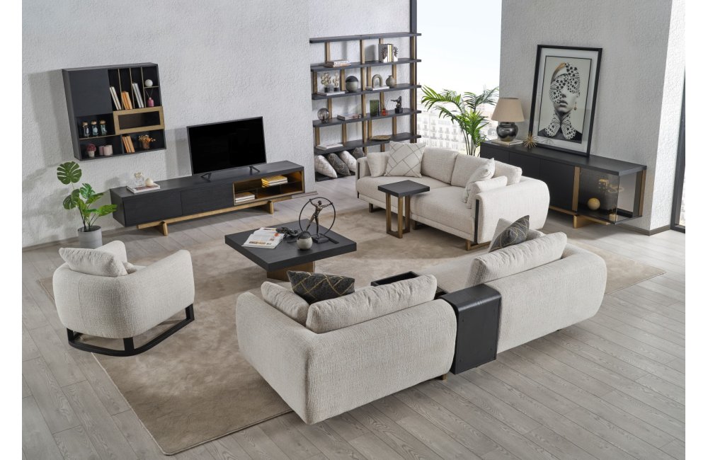 • Tasarım Detayları: Kol yanlarındaki dikey antrasit paneller ve yerden yüksek gold metal ayaklar, modern ve havadar bir görünüm sağlar.