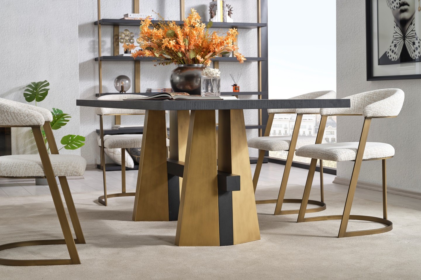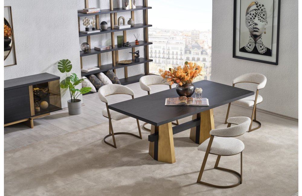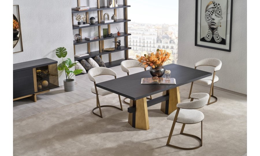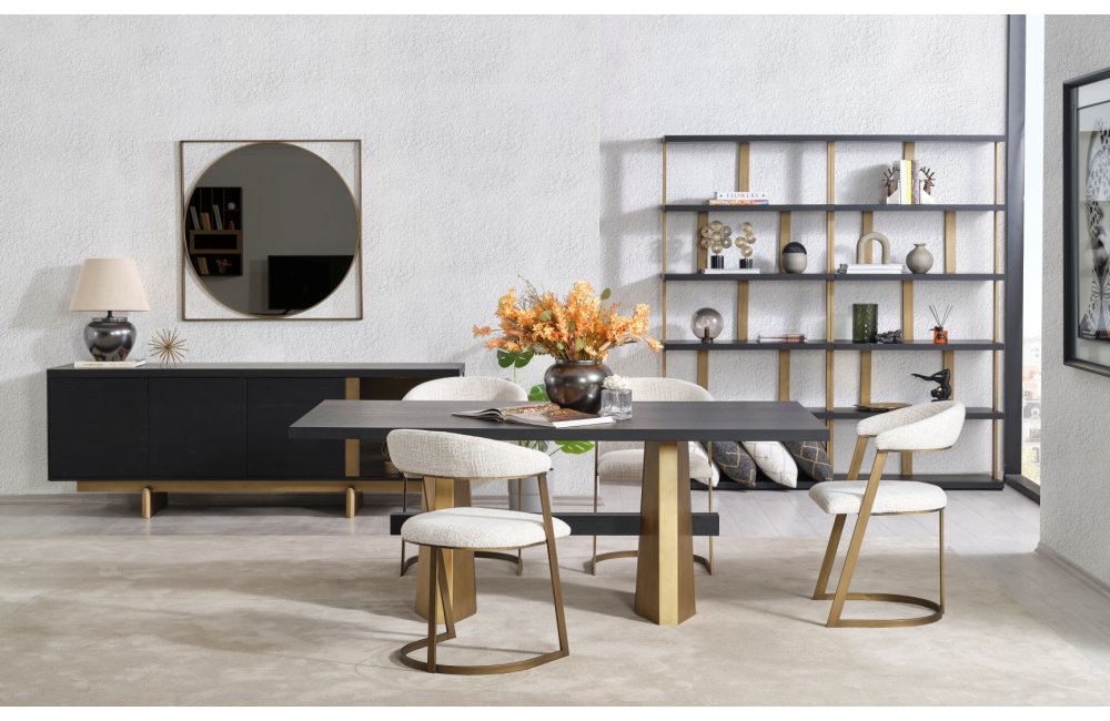 • Buklet kumaşın sıcaklığı, kavisli sırt yapısı ve ince gold metal ayaklar ile birleşerek uzun süreli oturumlarda ergonomik konfor sunuyor. Silinebilir ithal kumaş.