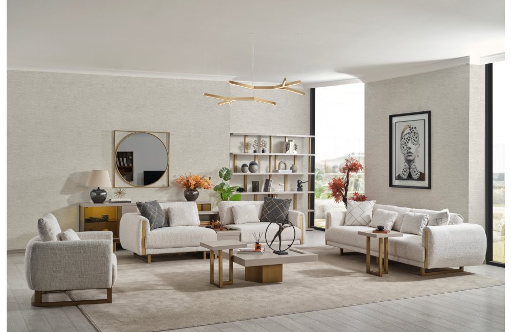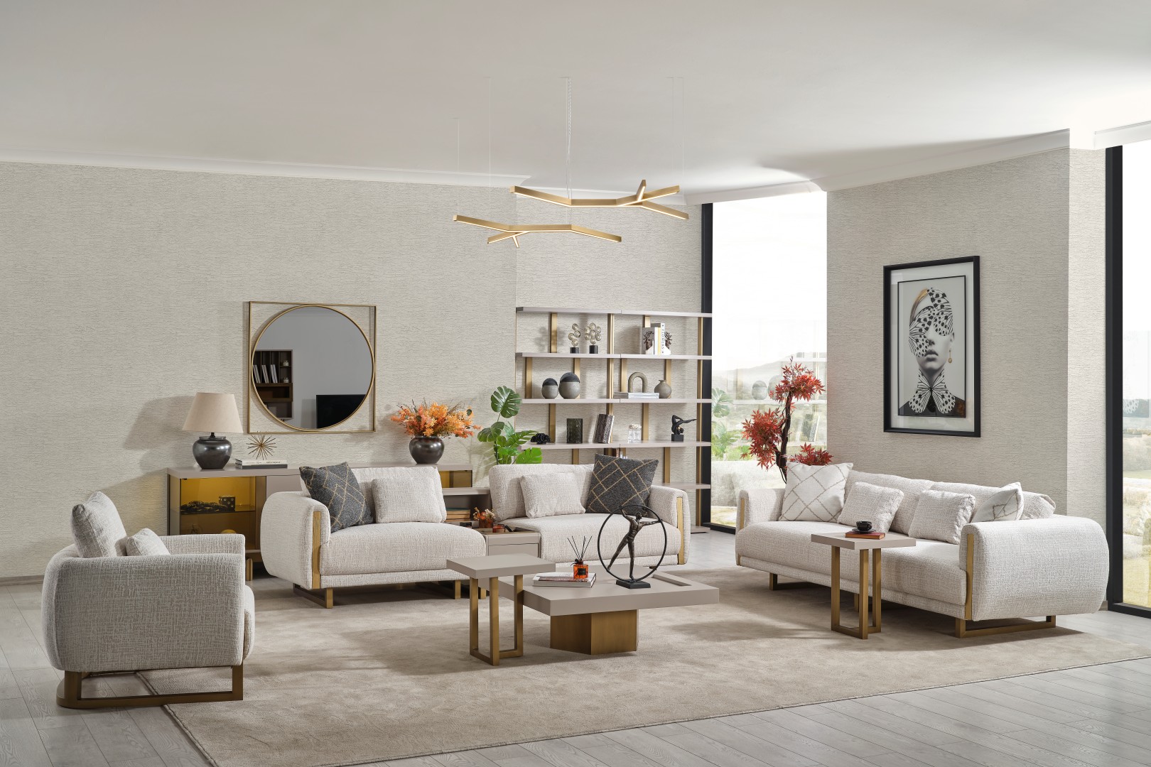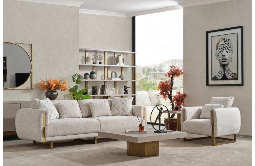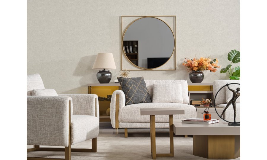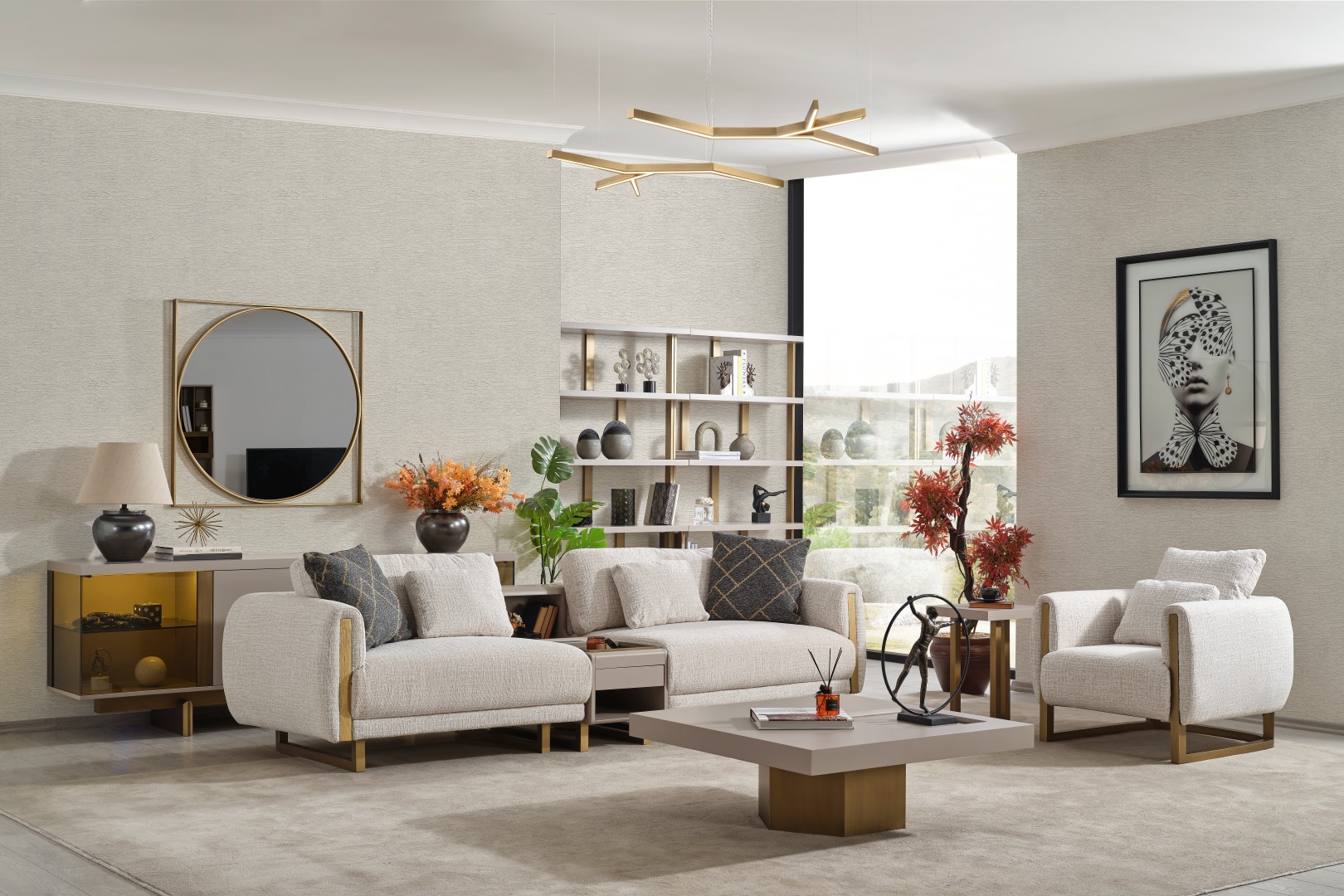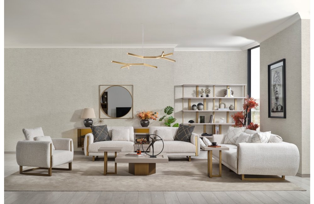 • Tasarım Detayları: Kol yanlarındaki dikey vizon paneller ve yerden yüksek gold metal ayaklar, modern ve havadar bir görünüm sağlar.
