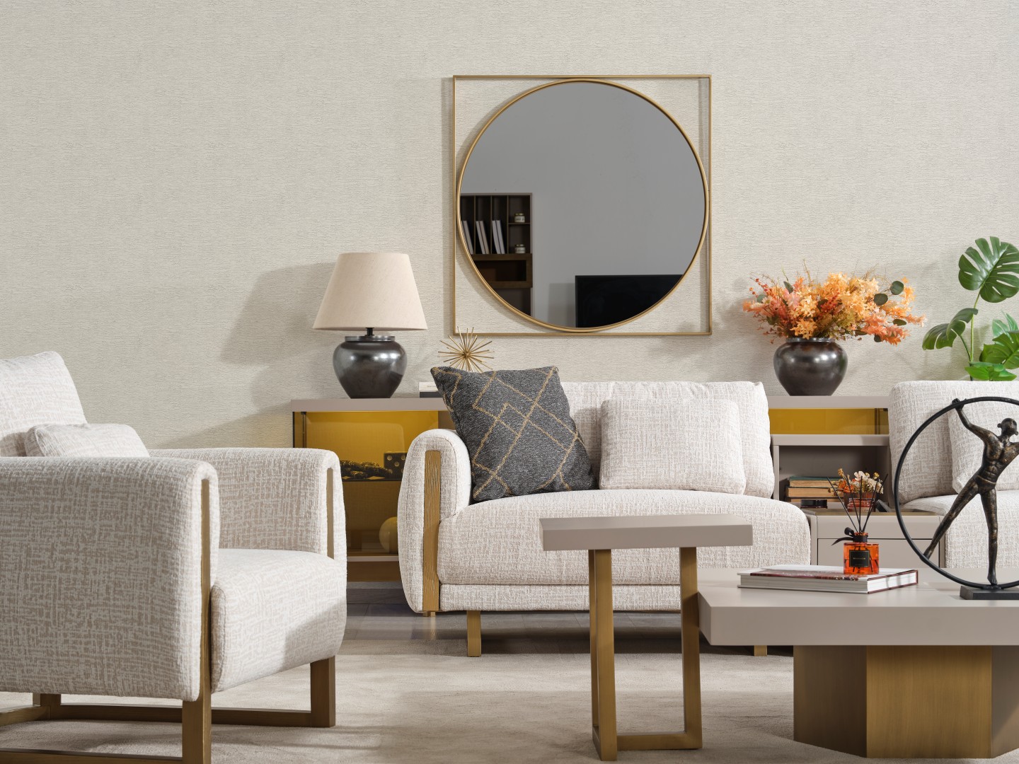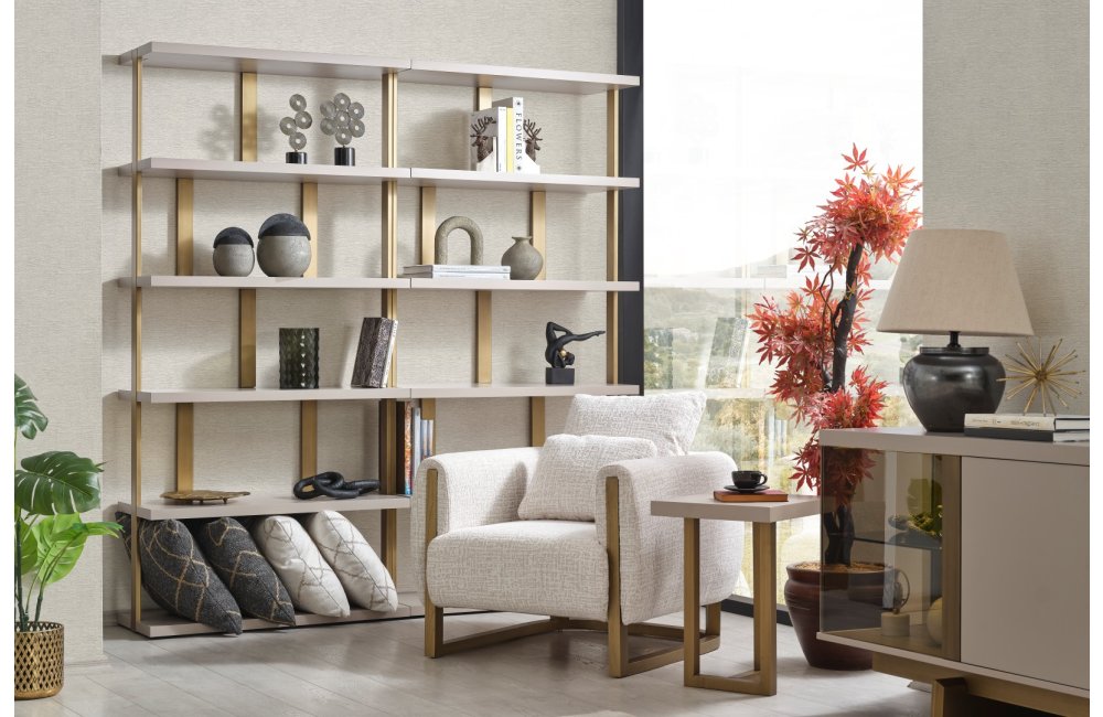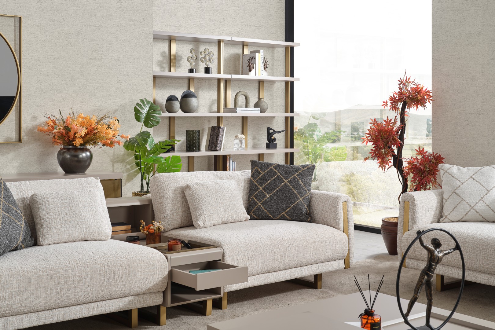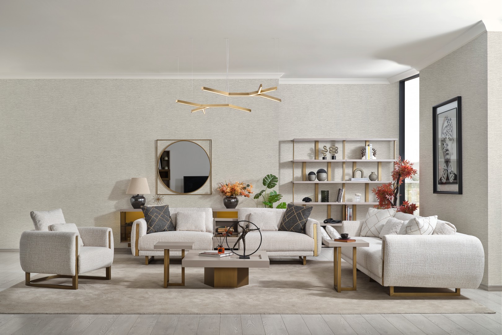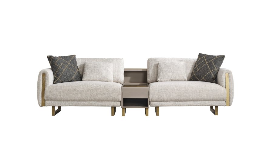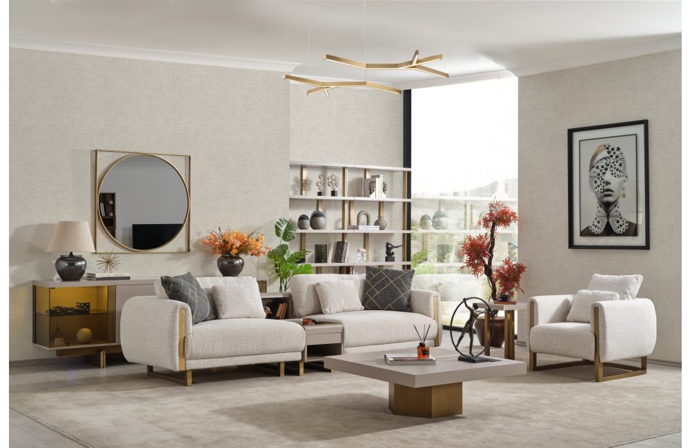 • Tasarım Detayları: Kol yanlarındaki dikey vizon paneller ve yerden yüksek gold metal ayaklar, modern ve havadar bir görünüm sağlar.