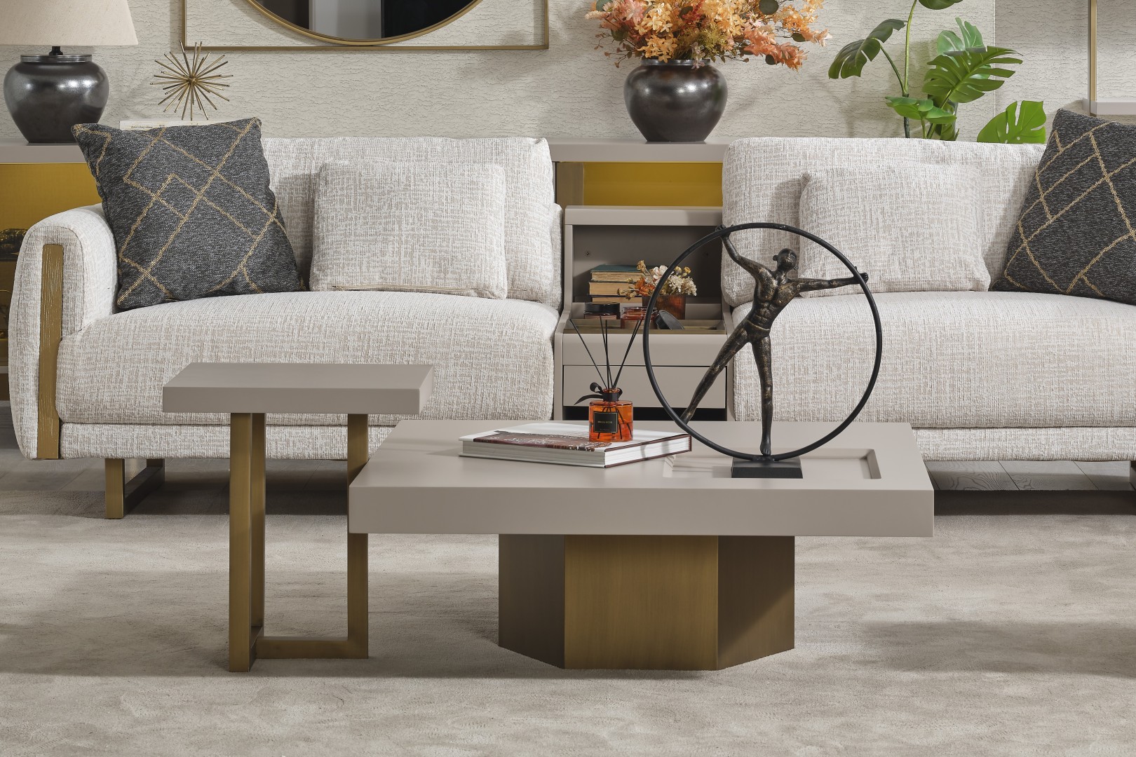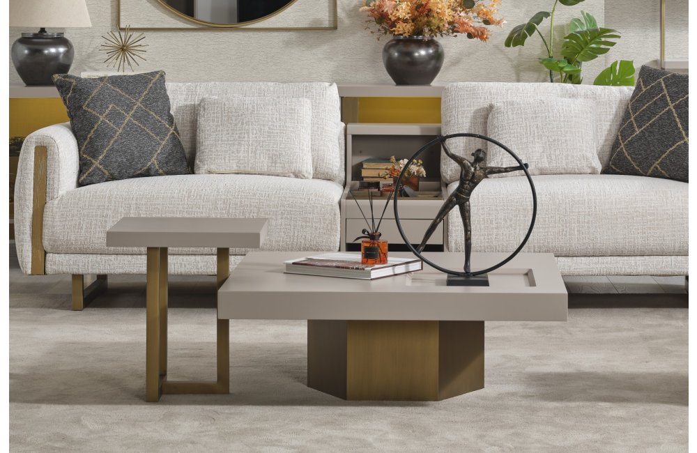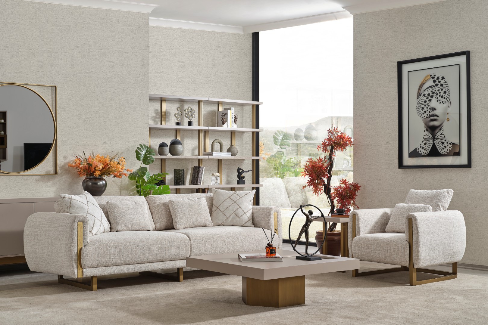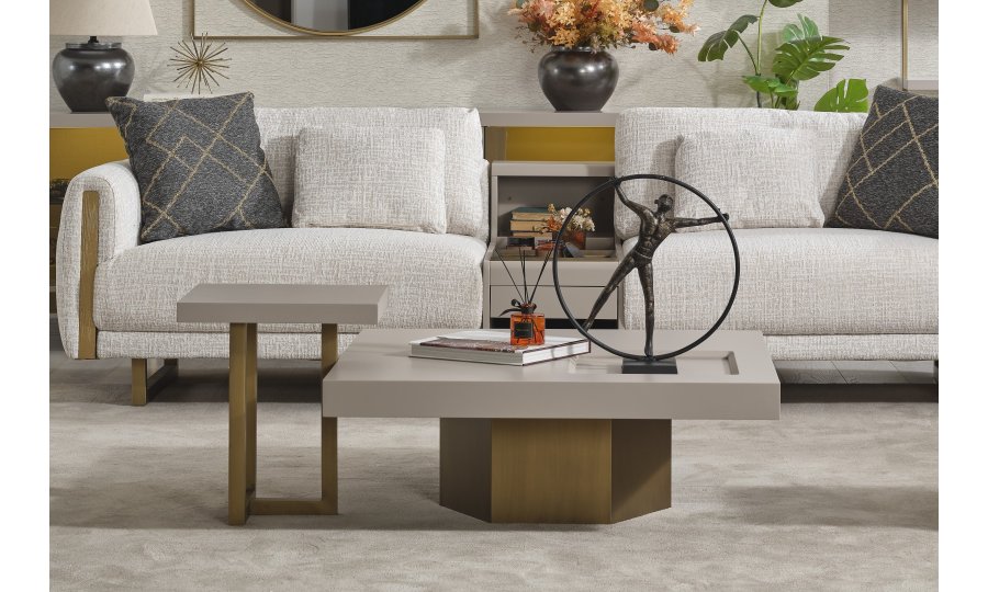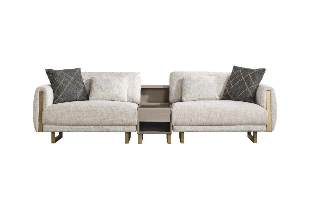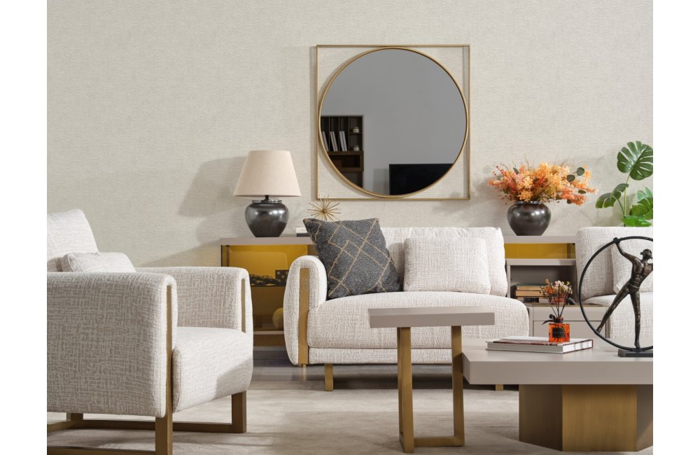 • Tasarım Detayları: Kol yanlarındaki dikey vizon paneller ve yerden yüksek gold metal ayaklar, modern ve havadar bir görünüm sağlar.