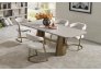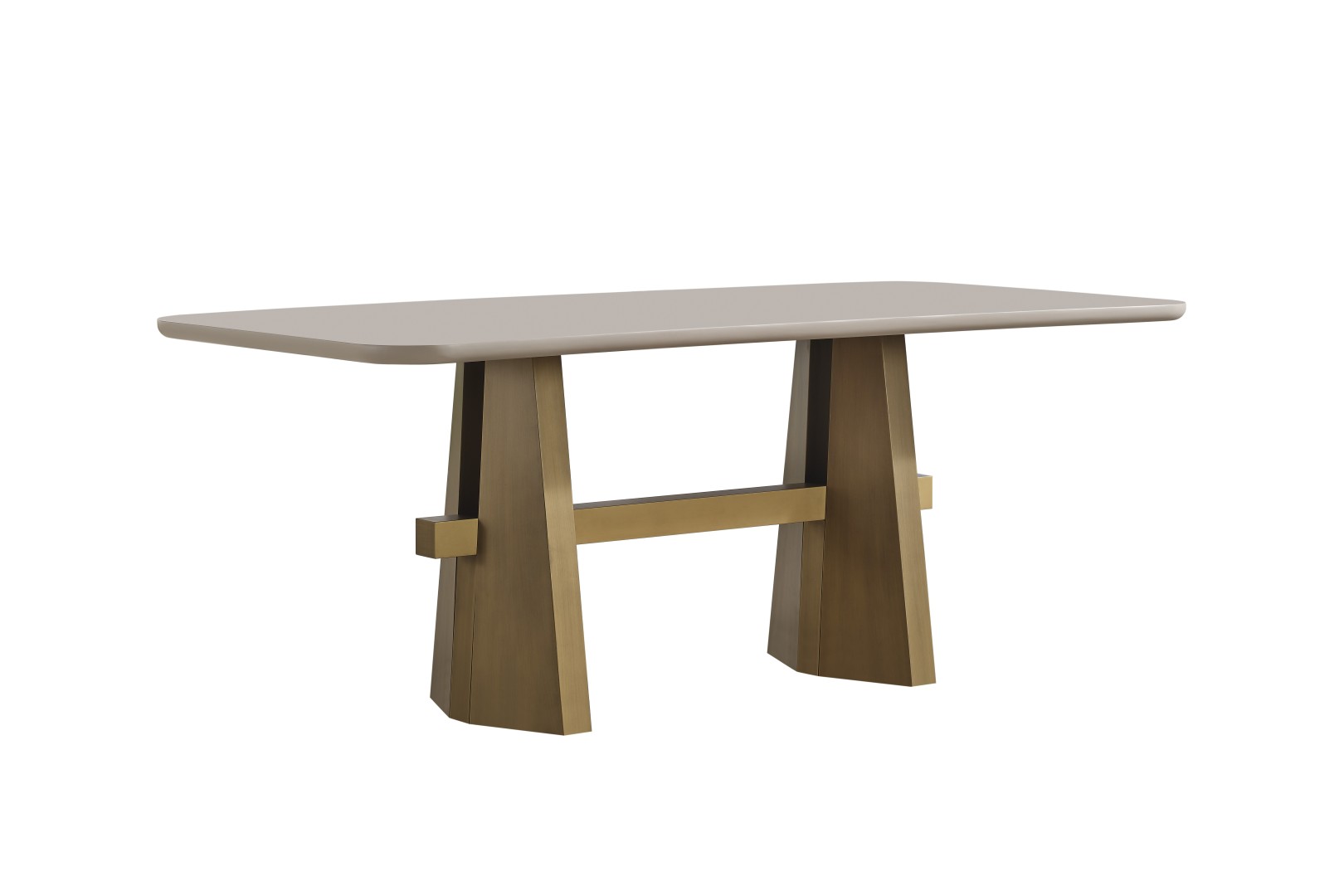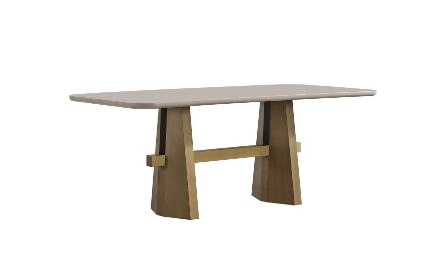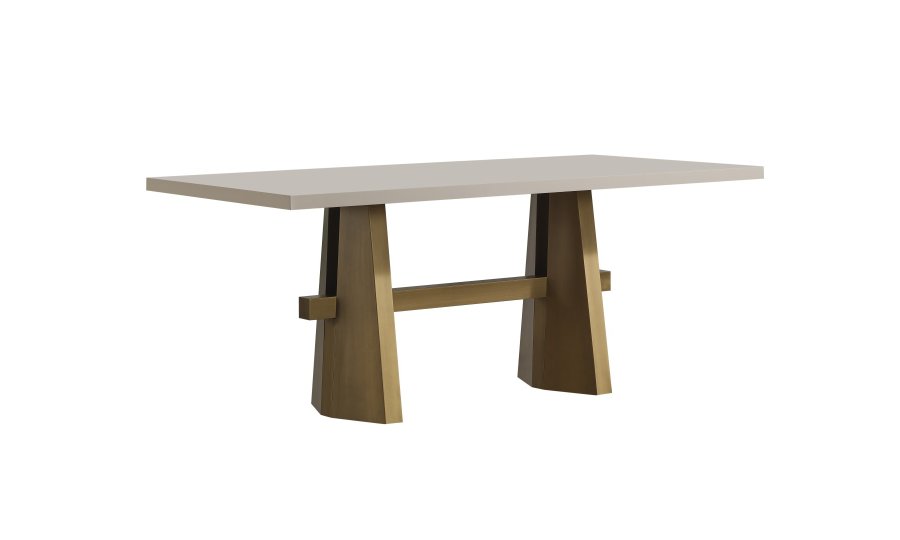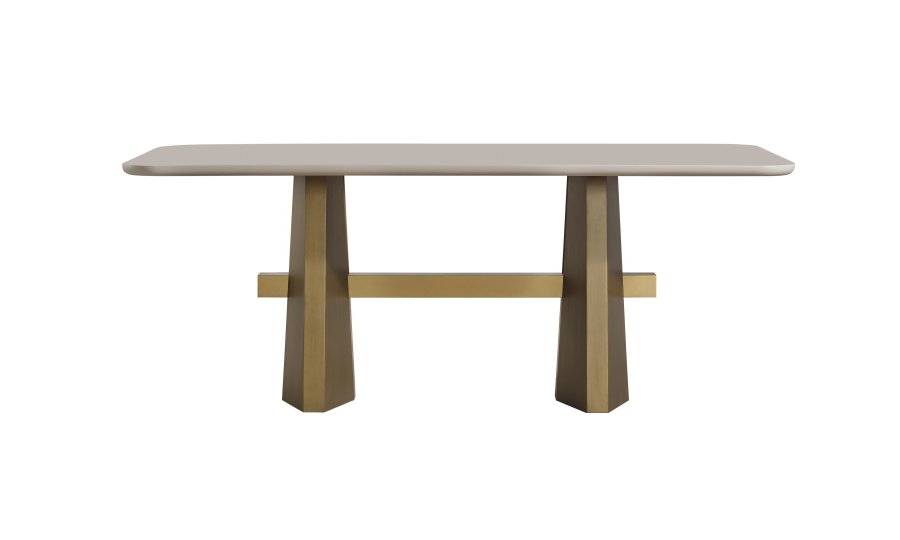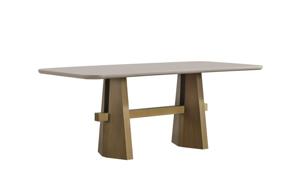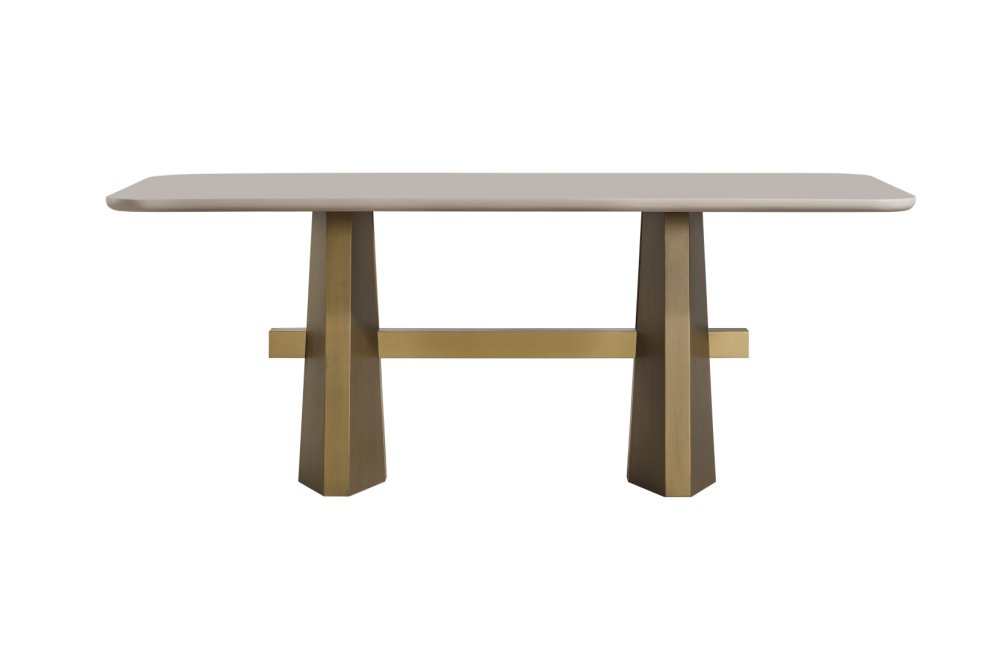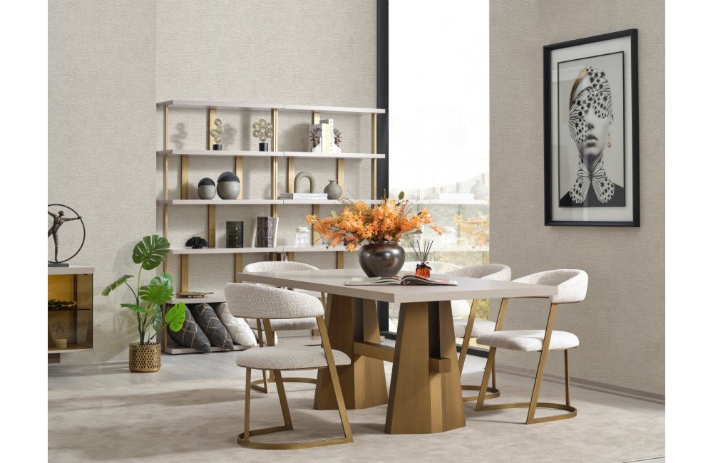 • Yemek Masası: Dikkat çekici vizon tabla, masif ve güçlü bir duruş sergileyen gold ayak yapısıyla birleşiyor.