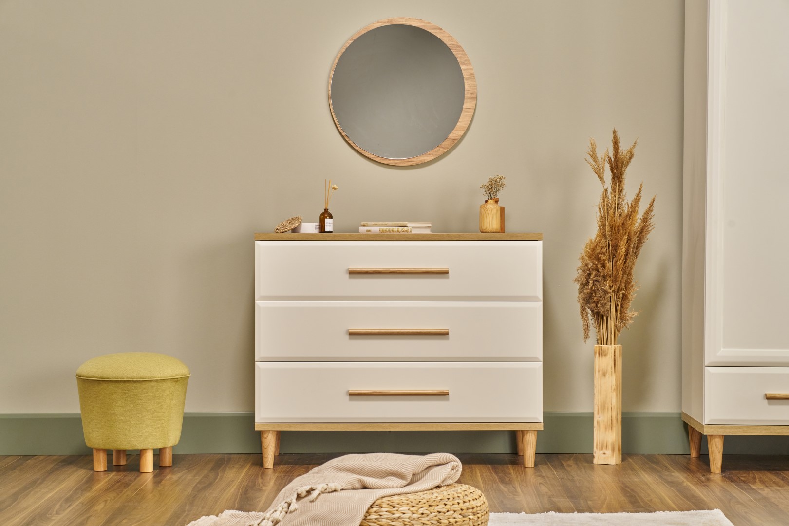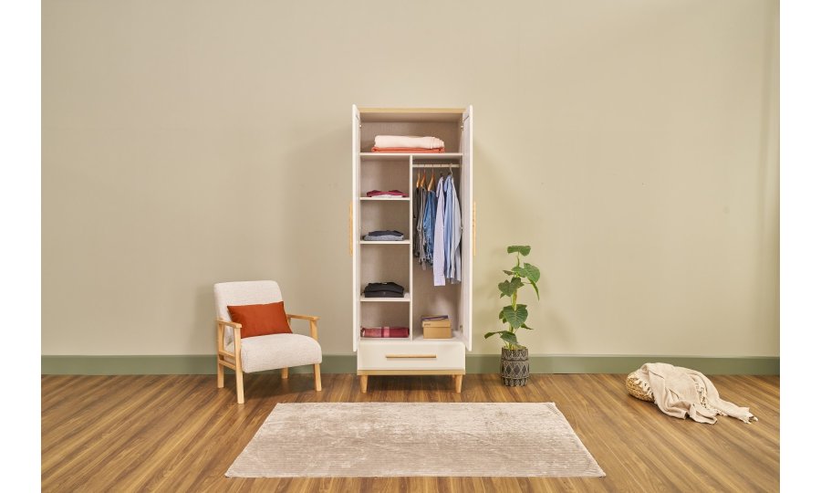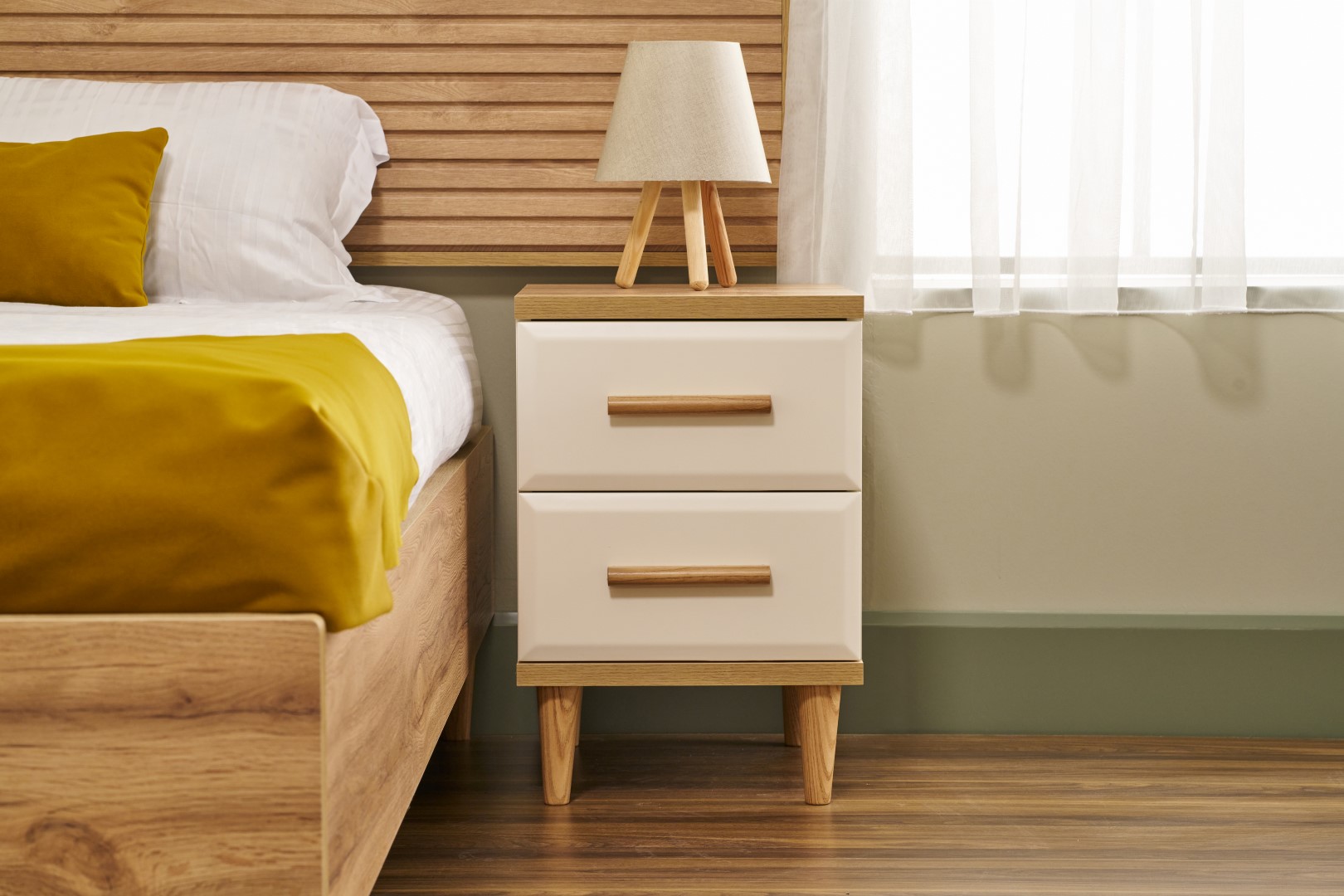 • Çift çekmeceli yer kaplamayan dar komodinler