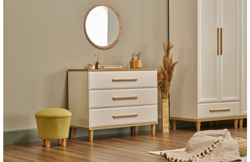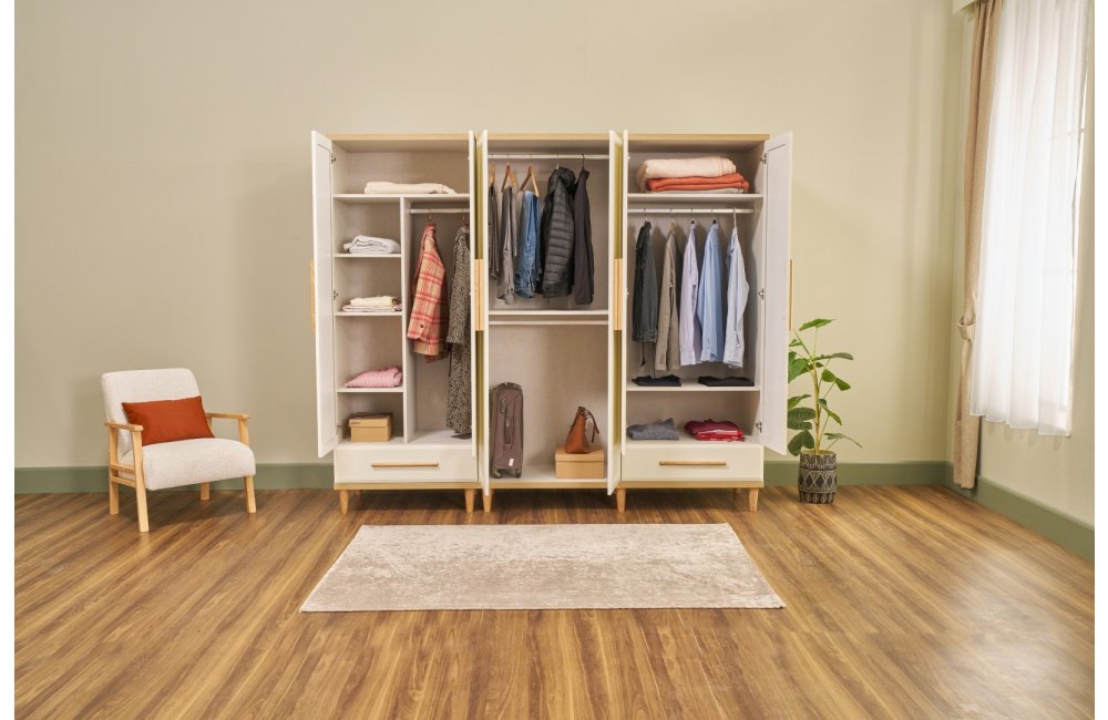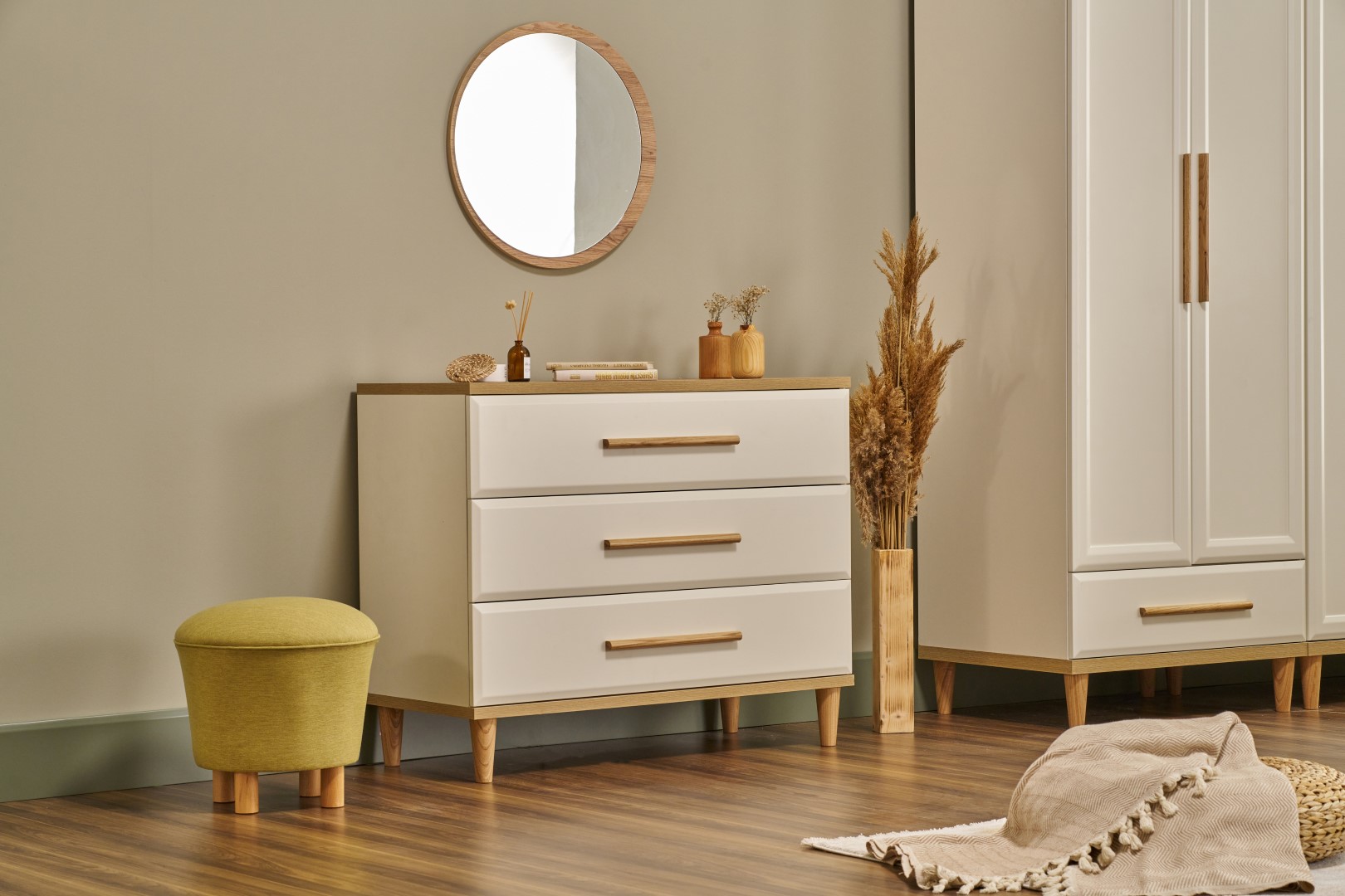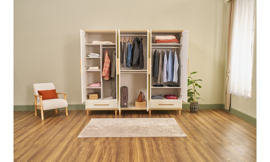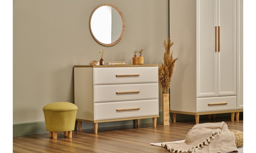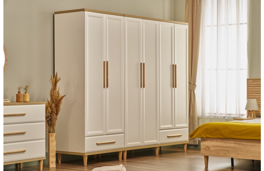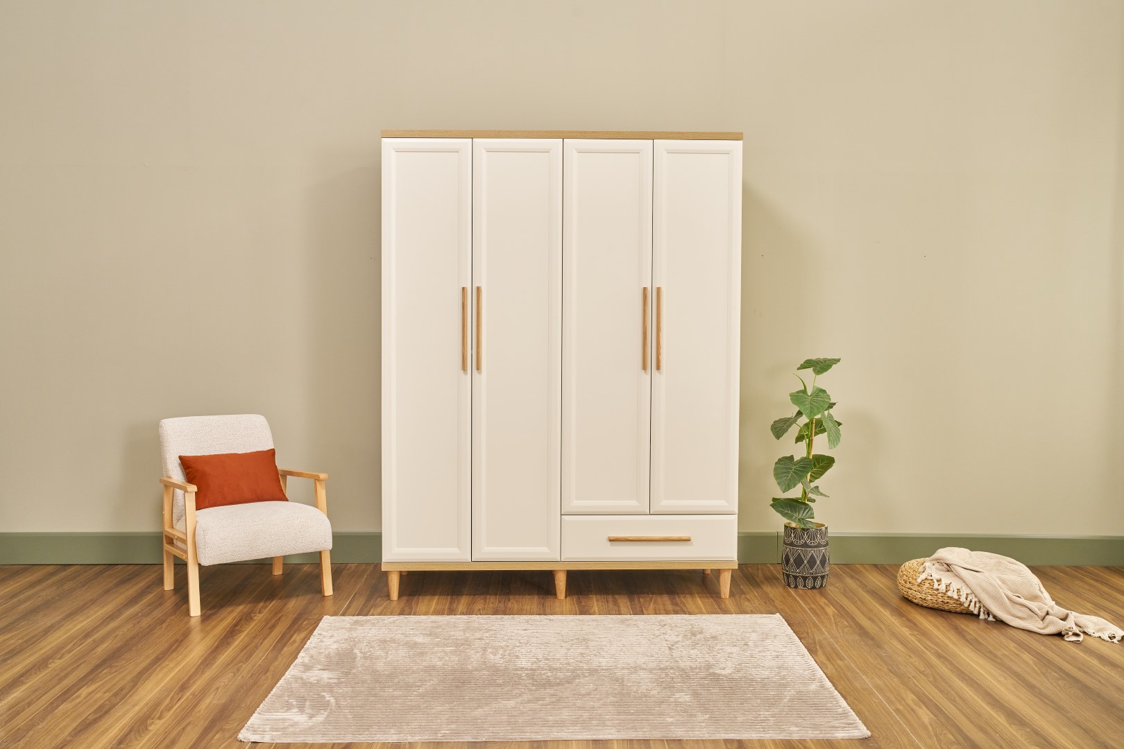 1 adet 160x200 bazalı karyola, 1 adet 4 kapaklı dolap, 1 adet 2 kapaklı dolap, 1 adet şifonyer, 1 adet ayna ve 2 adet komodinden oluşmaktadır.
