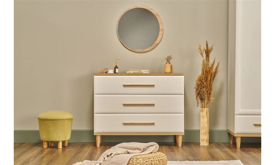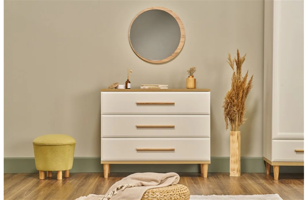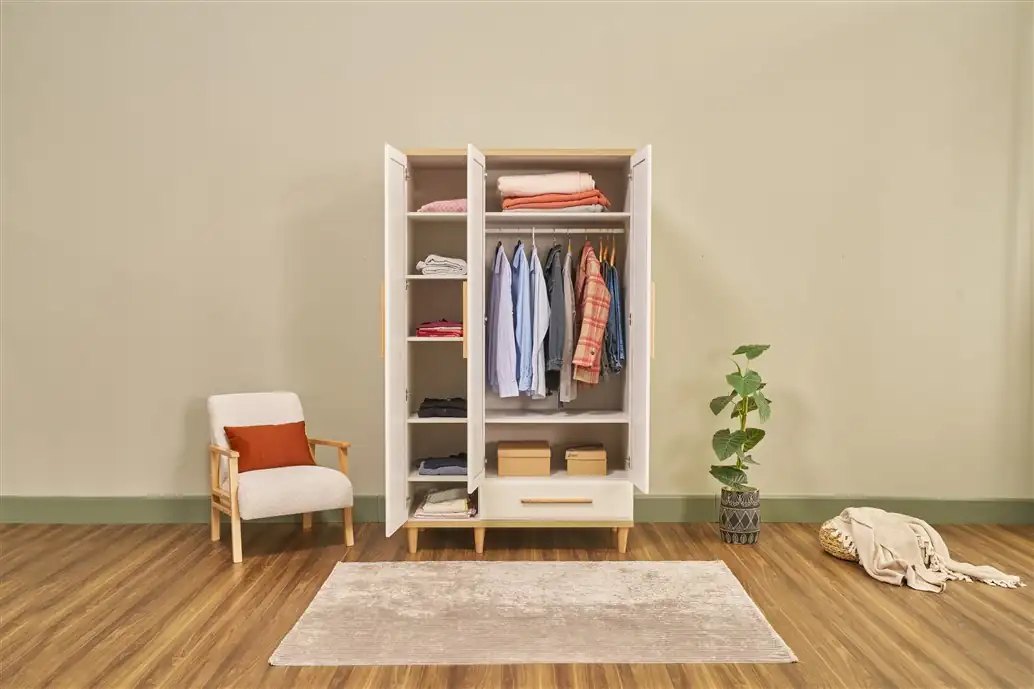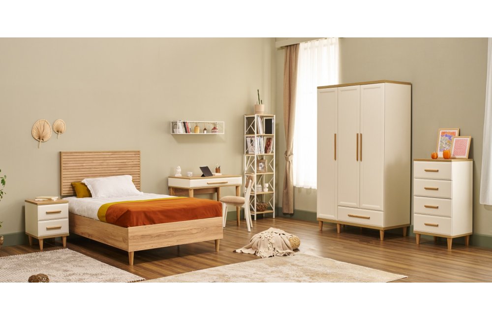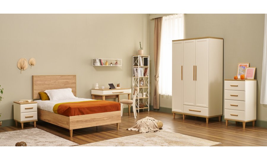 1ad. 3 kapaklı dolap, 1ad. 100x200 karyola, 1ad. çift çekmeceli komodinden oluşmaktadır. 2 kapaklı dolap, 4 kapaklı dolap, 120x200 karyola, 100lük, 120lik başlık, 100x200 ve 120x200 bazalı karyola, çamaşırlık, şifonyer, kitaplık, çalışma masası opsiyonel satılmaktadır.