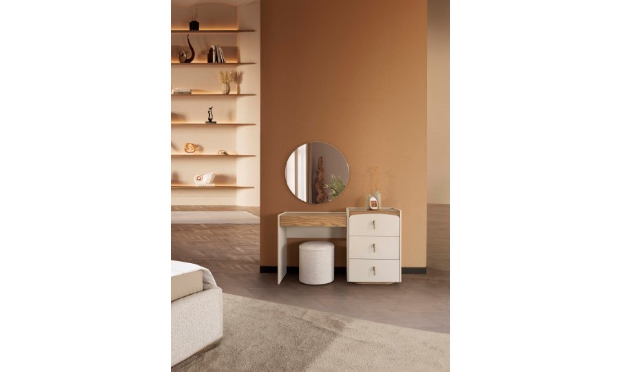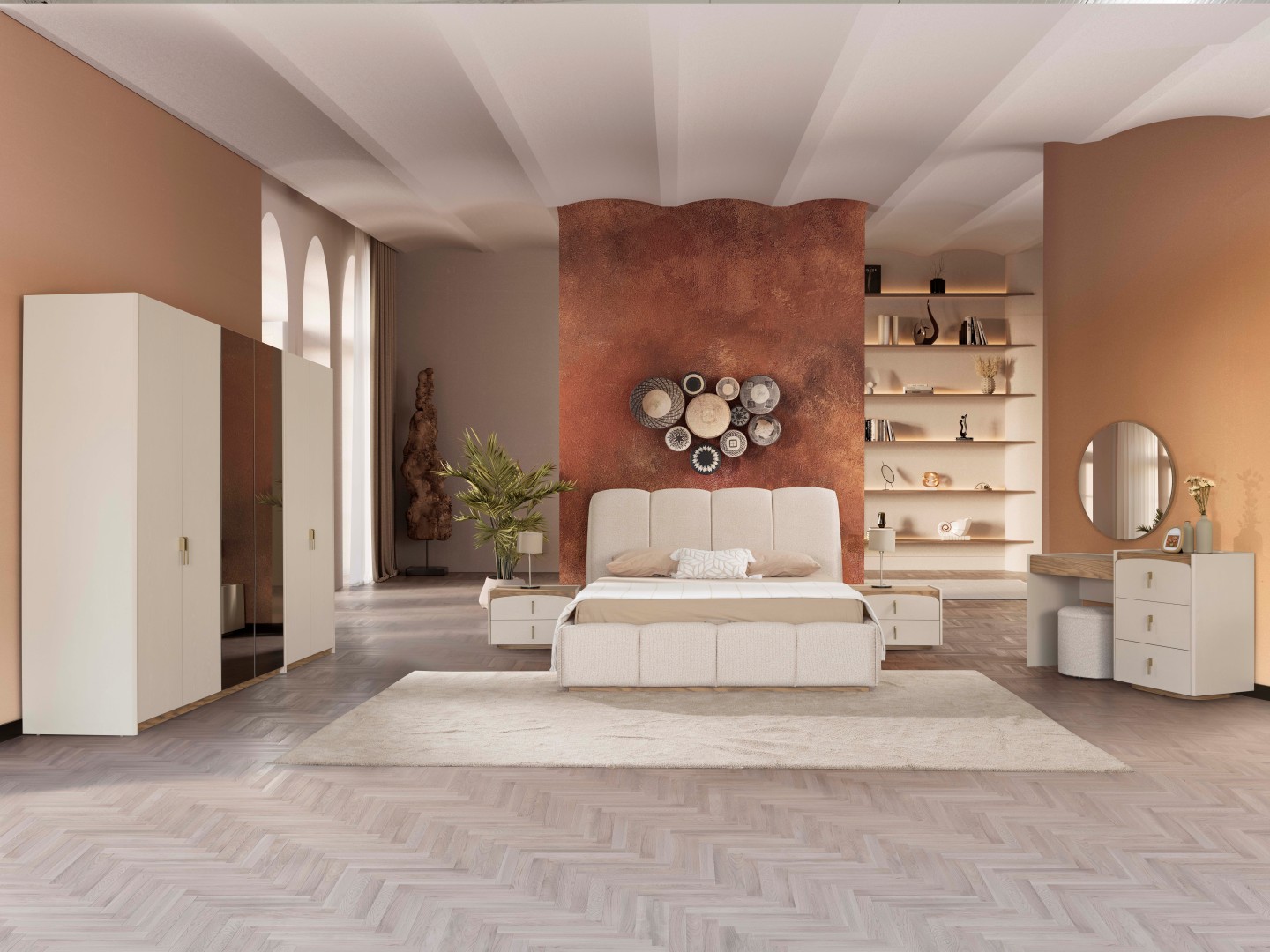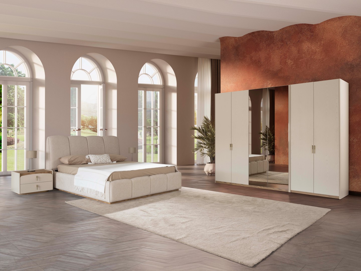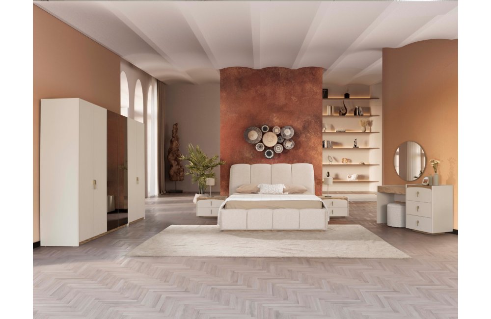 1 ad. 6 kapaklı dolap (4+2), 1 ad. karyola, 2 ad. komodin ve 1 ad. şifonyerden (aynalı) oluşmaktadır.