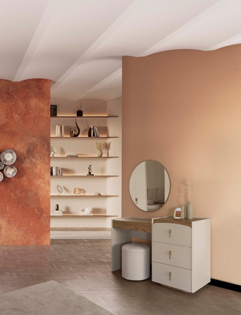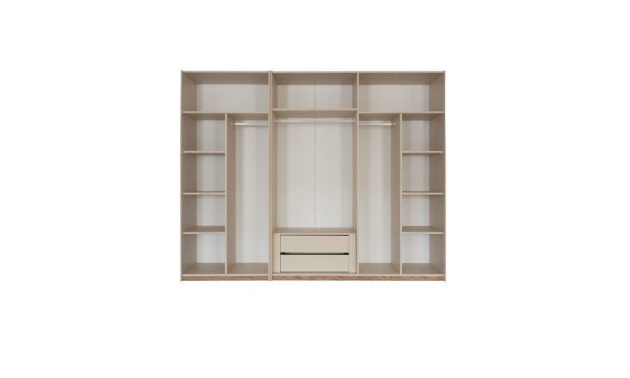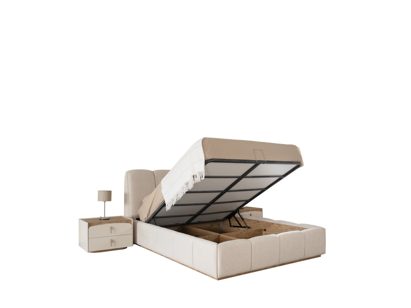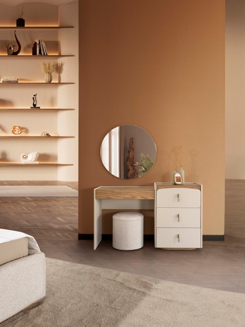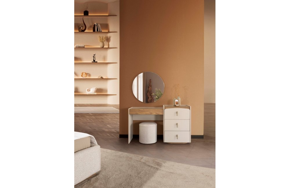 1 ad. 6 kapaklı dolap (4+2), 1 ad. karyola, 2 ad. komodin ve 1 ad. şifonyerden (aynalı) oluşmaktadır.
