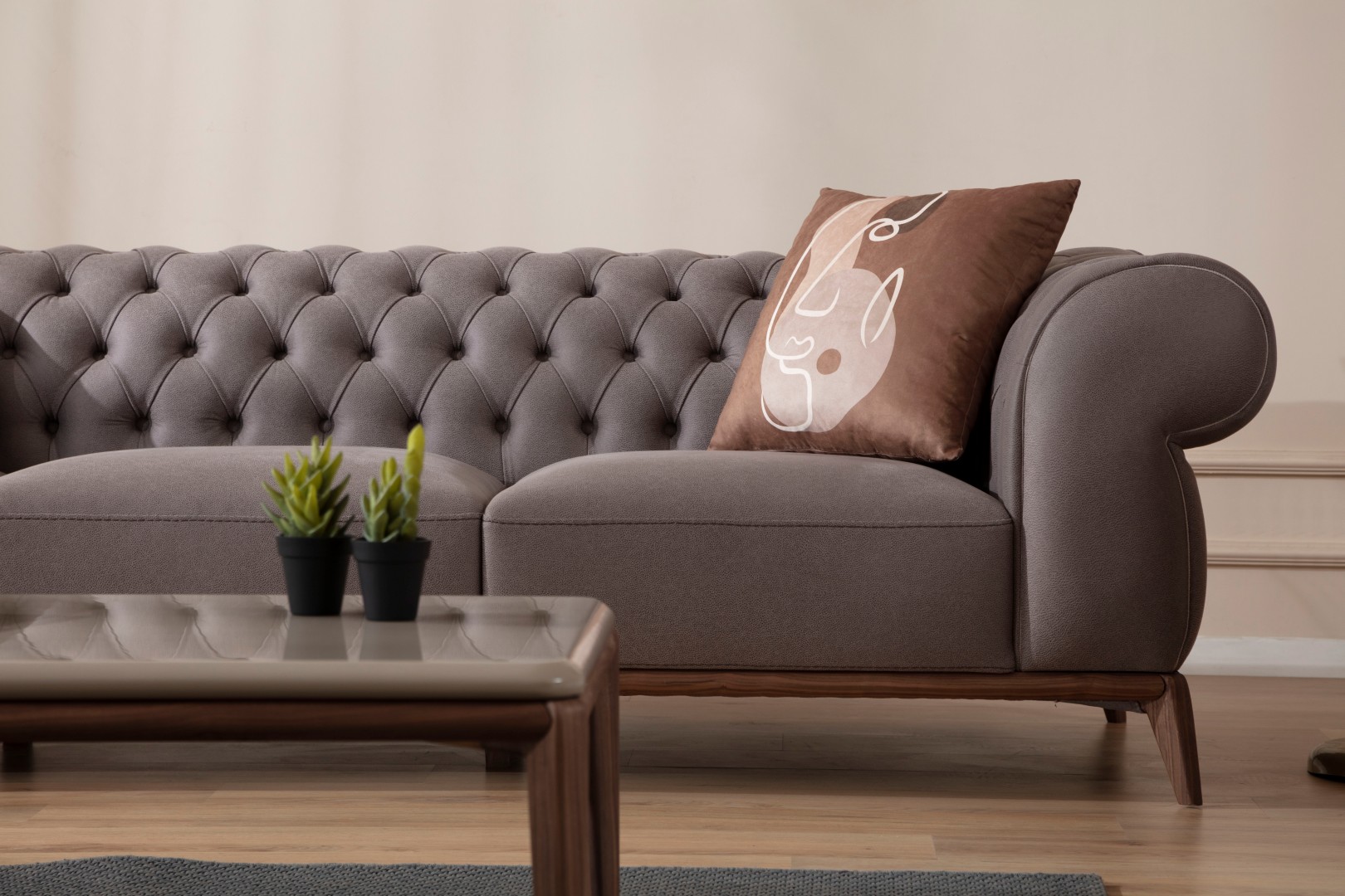 1ad. dörtlü kapitoneli kanepe, 1ad. üçlü kanepe, 1ad. berjerden oluşmaktadır. 3 lü kapitoneli koltuk opsiyonel olarak satışa sunulmuştur.