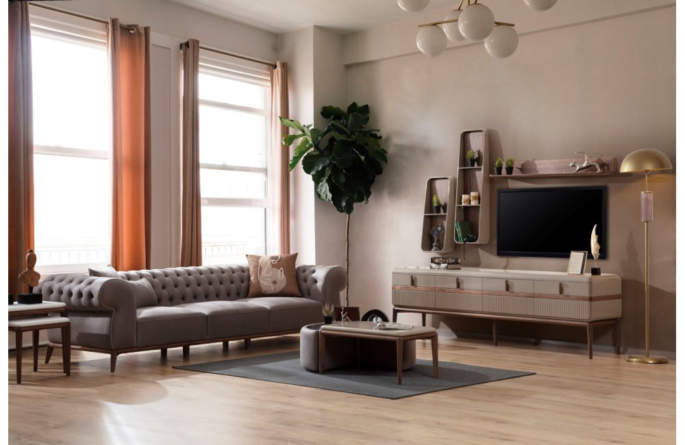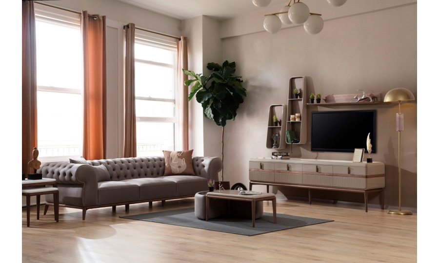 Tokyo Salon Paketi; Tokyo Koltuk Takımı (1ad. chester dörtlü koltuk, 1ad.üçlü koltuk,1ad. berjer), Tokyo Yemek Odası Takımı (Konsol, ayna ,açılır masa , 6 ad.sandalye)ve Tokyo Tv ünitesinden oluşmaktadır. Dikdörtgen sehpa, Yuvarlak sehpa, küçük dikdörtgen ve zigon set opsiyonel olarak satılmaktadır.