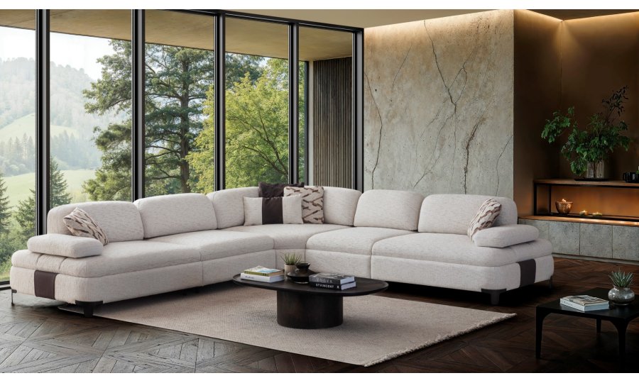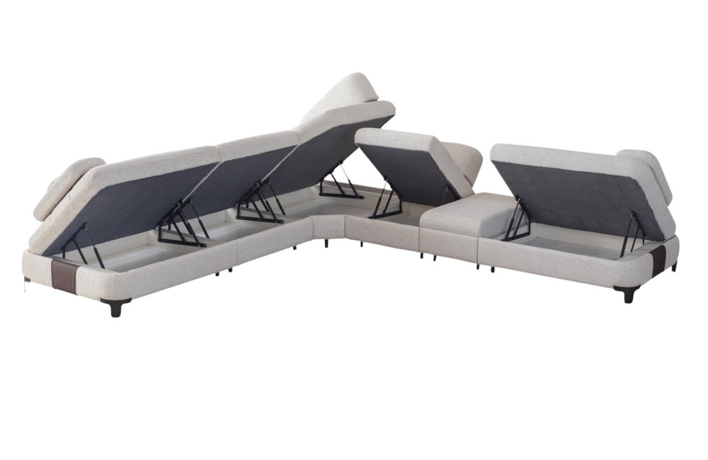1ad. Sağ kollu modül, 1ad. 90cm ara modül, 1ad. köşe modül, 70cm ara modül, 1ad. sol kollu modülden oluşmaktadır. 50cm sehpa puf ve berjer opsiyonel satılmaktadır.