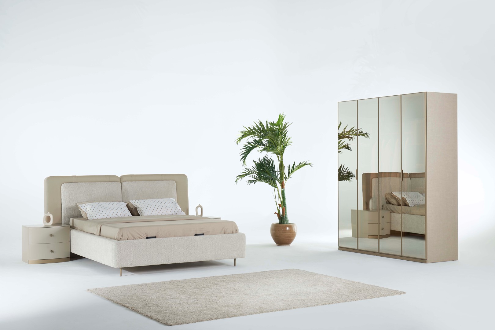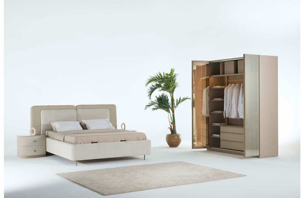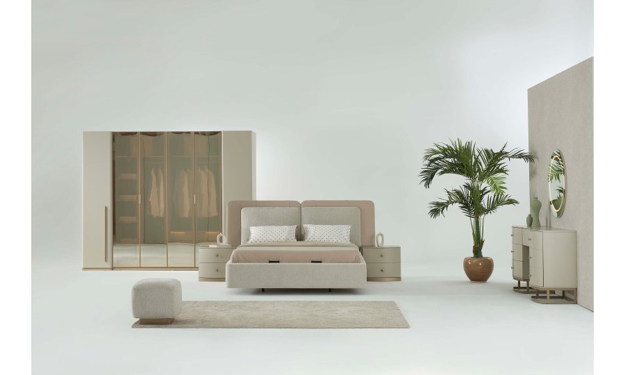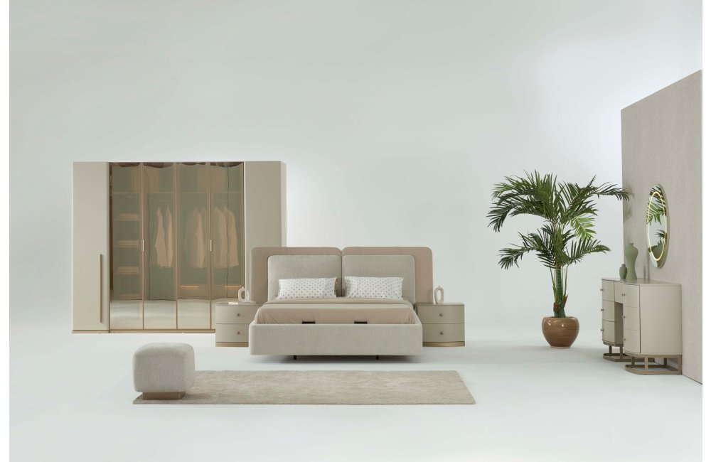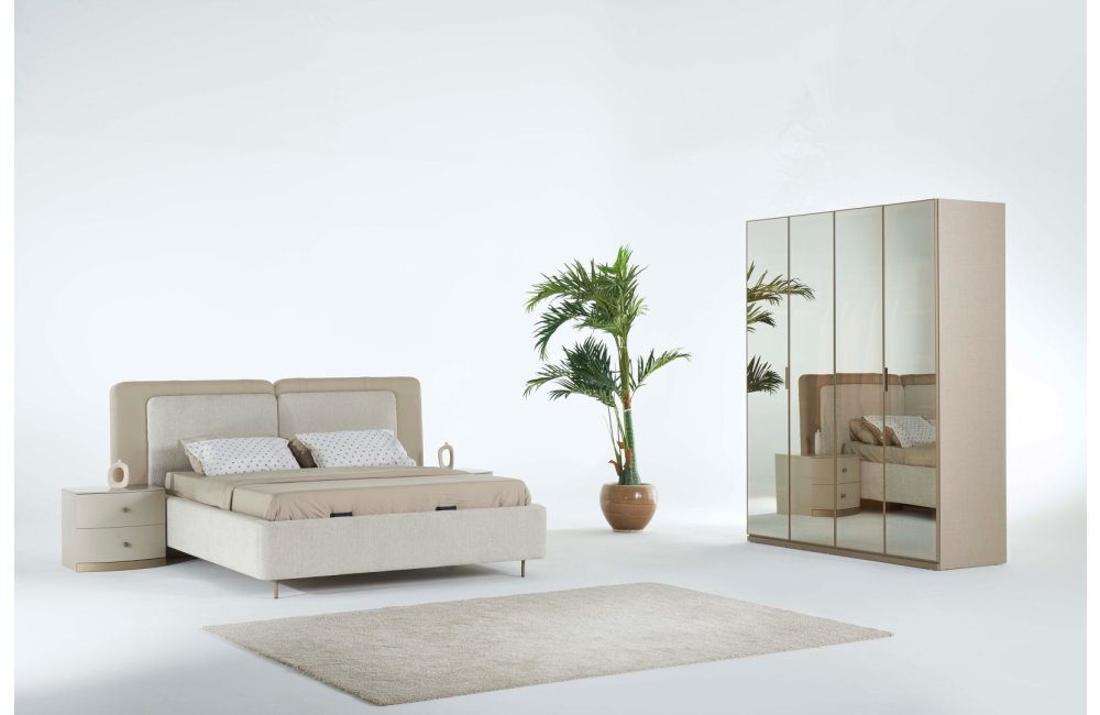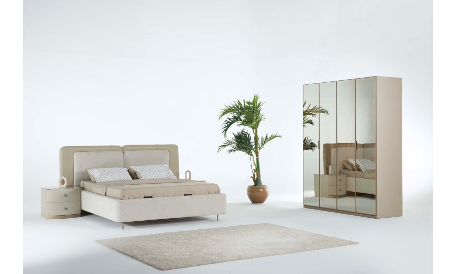 1 ad. dolap (4 Eks kapak +1+1 ahşap kapak), 1 ad. bazalı karyola, 1 ad. şifonyer (aynalı) ve 2 ad. komodinden oluşmaktadır.