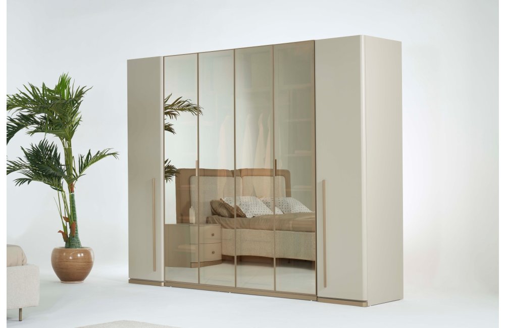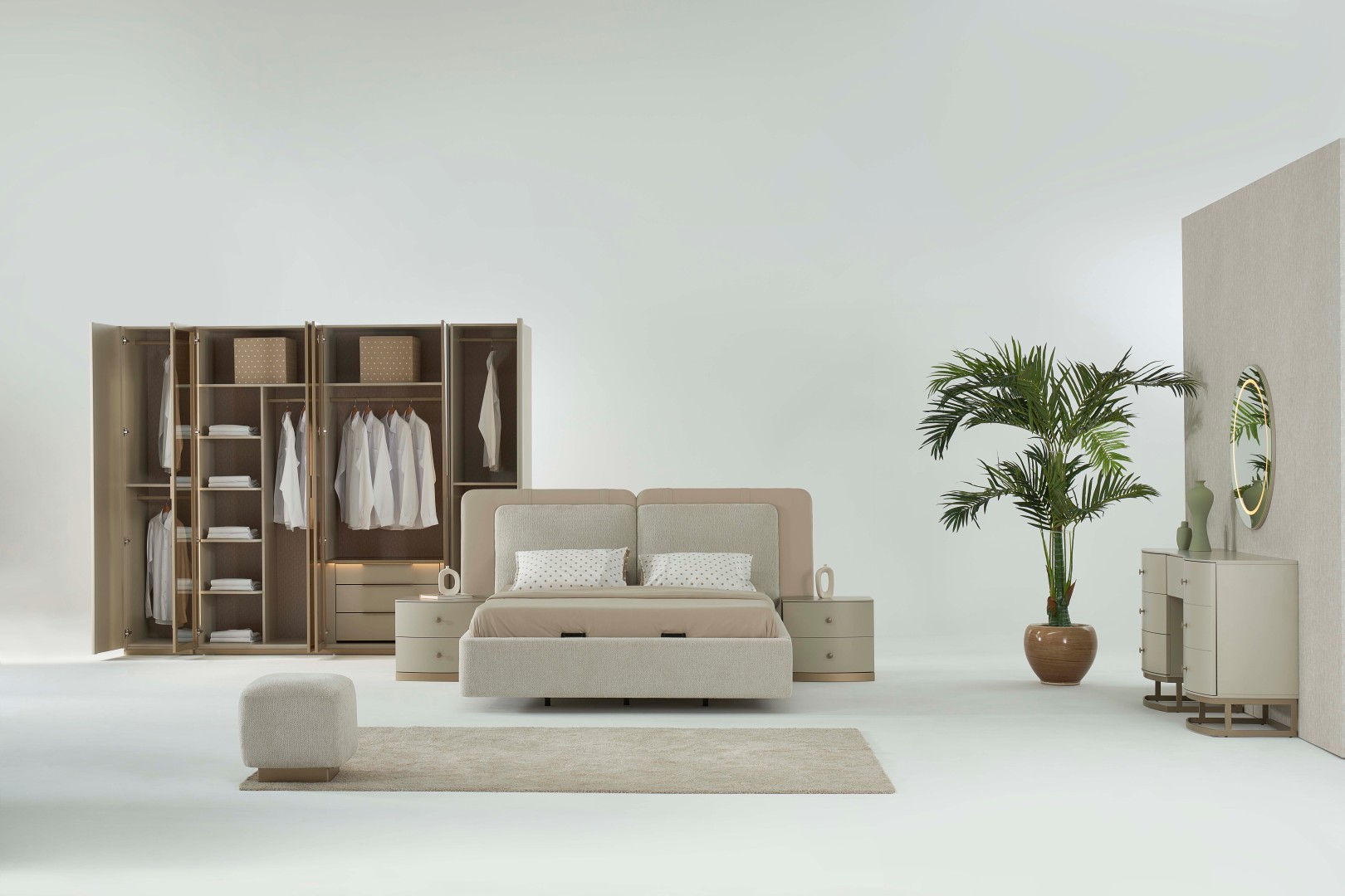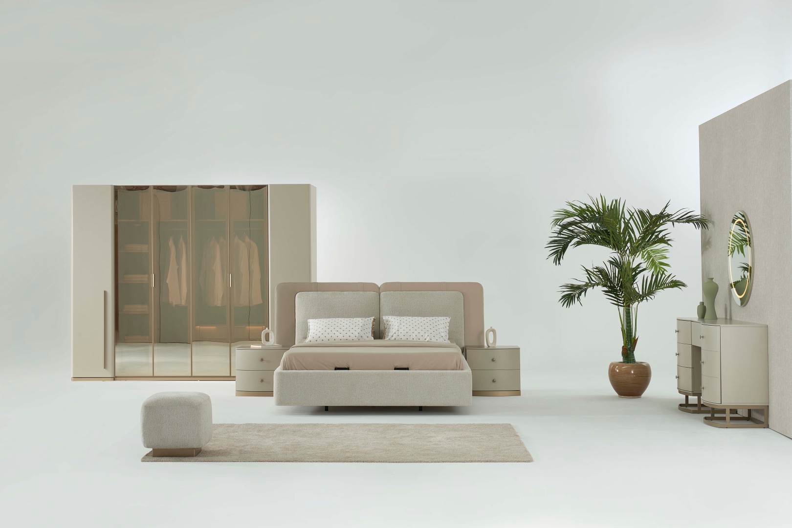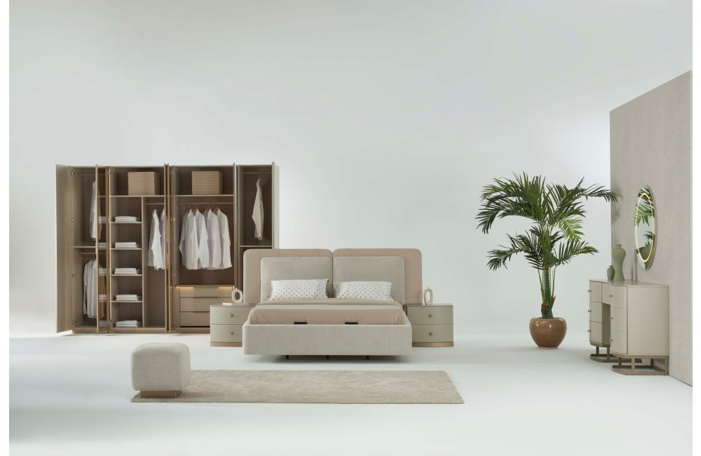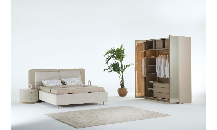 1 ad. dolap (4 Eks kapak +1+1 ahşap kapak), 1 ad. bazalı karyola, 1 ad. şifonyer (aynalı) ve 2 ad. komodinden oluşmaktadır.