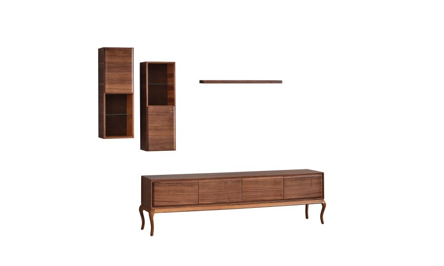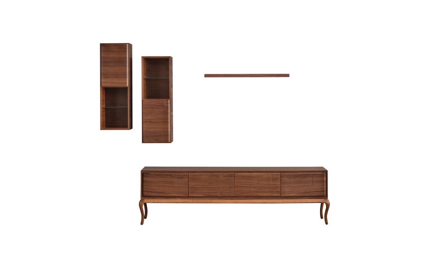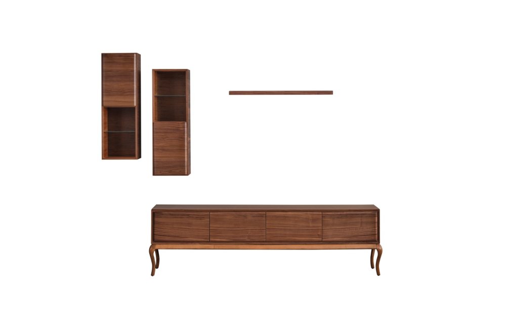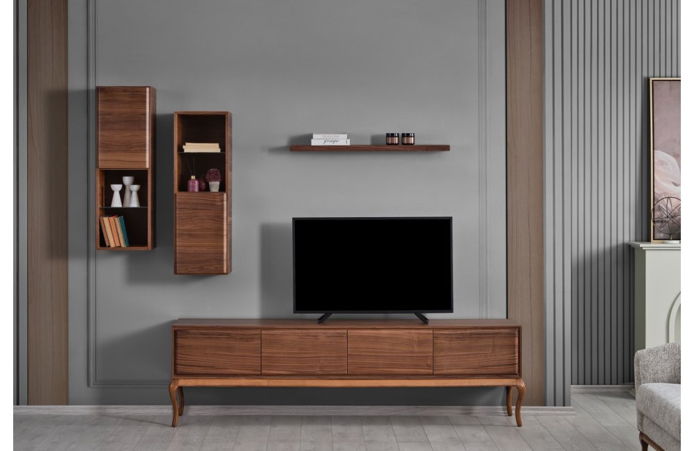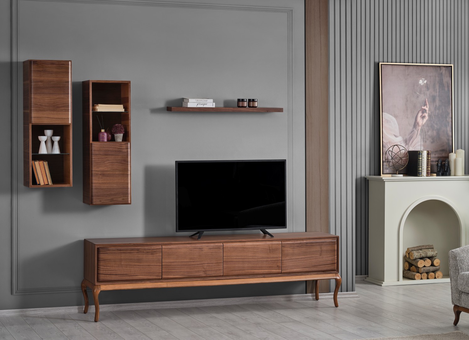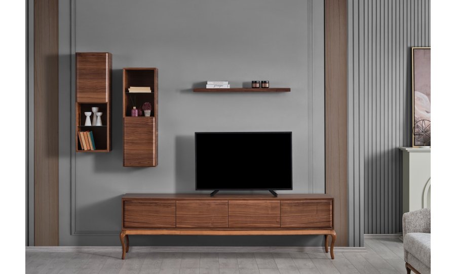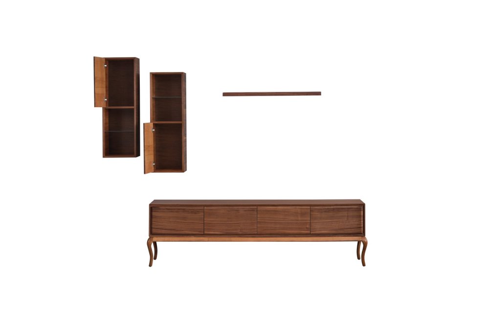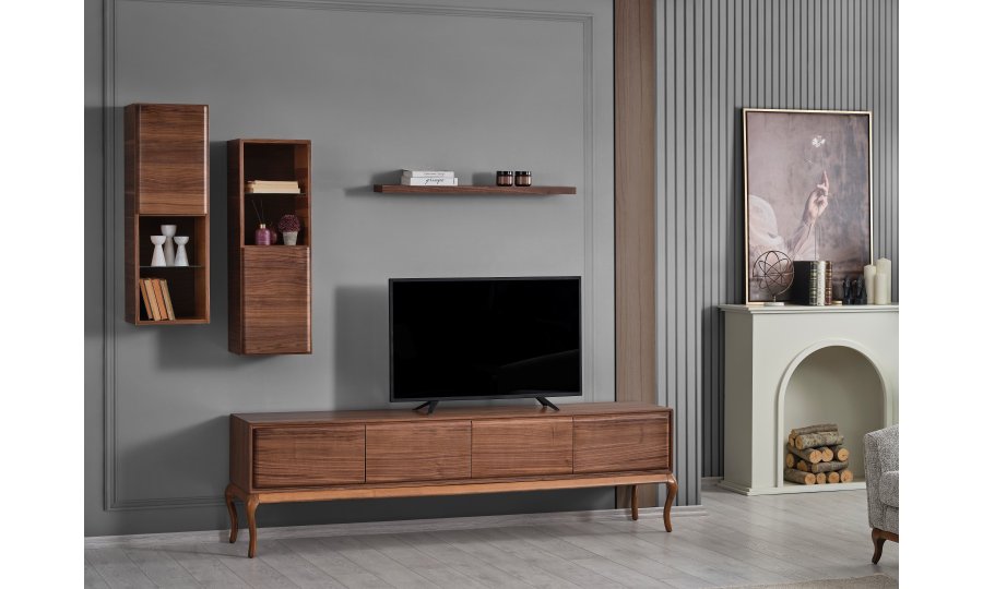 1 ad. TV ünitesinden (ünite alt blok, ünite üst blok ve raf) oluşmaktadır.