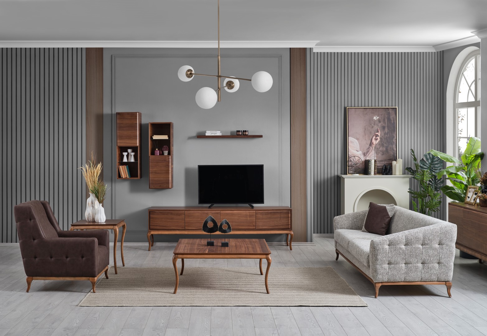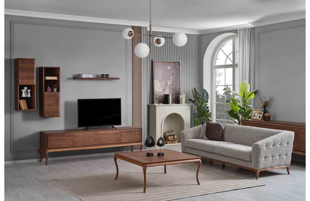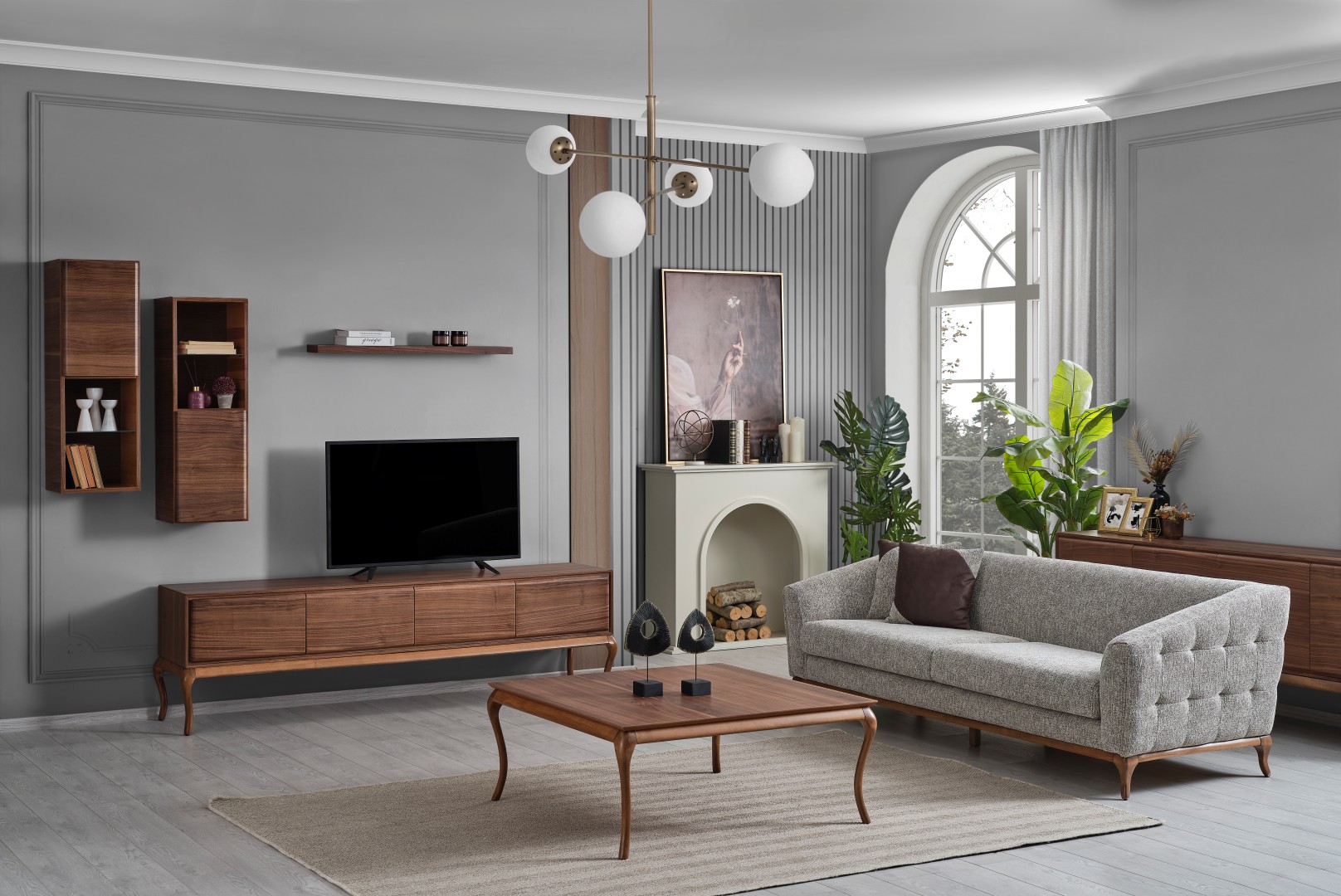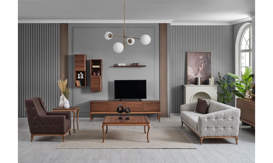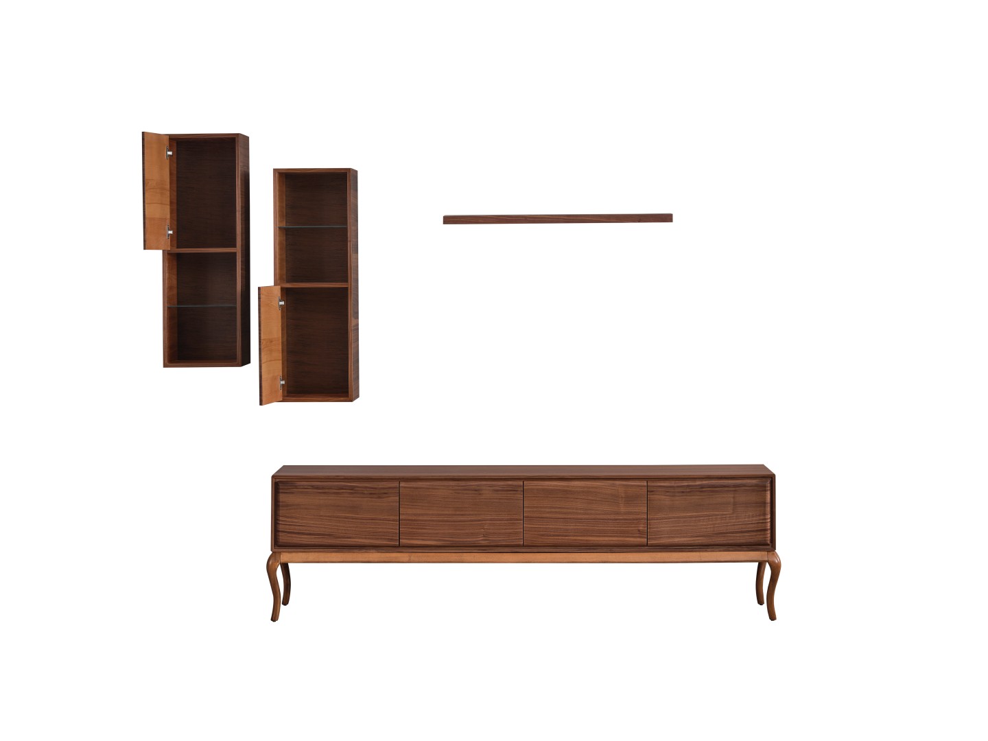 1 ad. TV ünitesinden (ünite alt blok, ünite üst blok ve raf) oluşmaktadır.