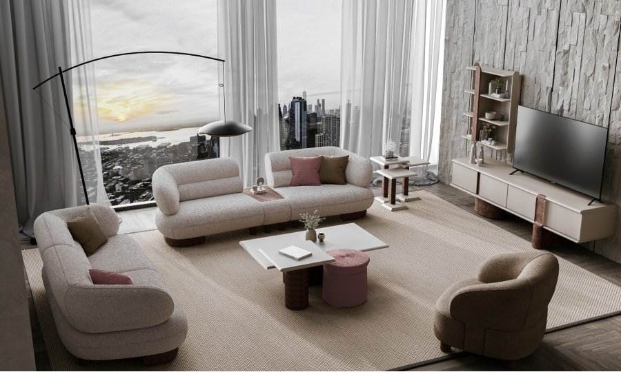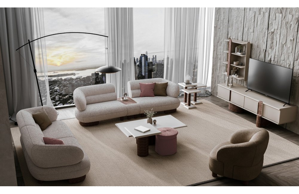 2 ad. üçlü koltuk, 1 ad. mobilyalı ara modül ve 1 ad. berjerden oluşmaktadır.